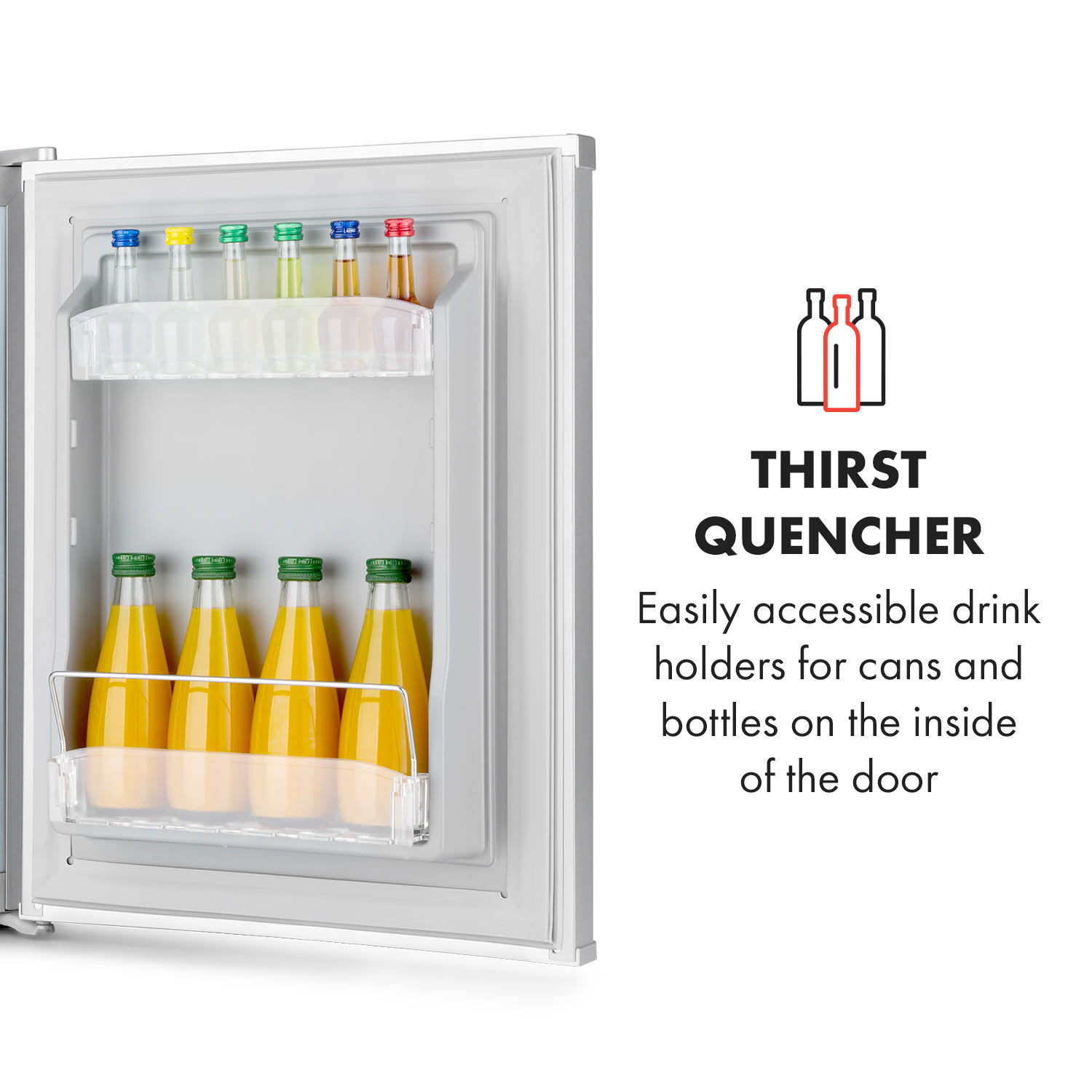 Klarstein Happy Hour 40, mini chladnička, 40 l, 5-15°C, tichá, 23dB, LED-svetlo, strieborný – Kúpiť