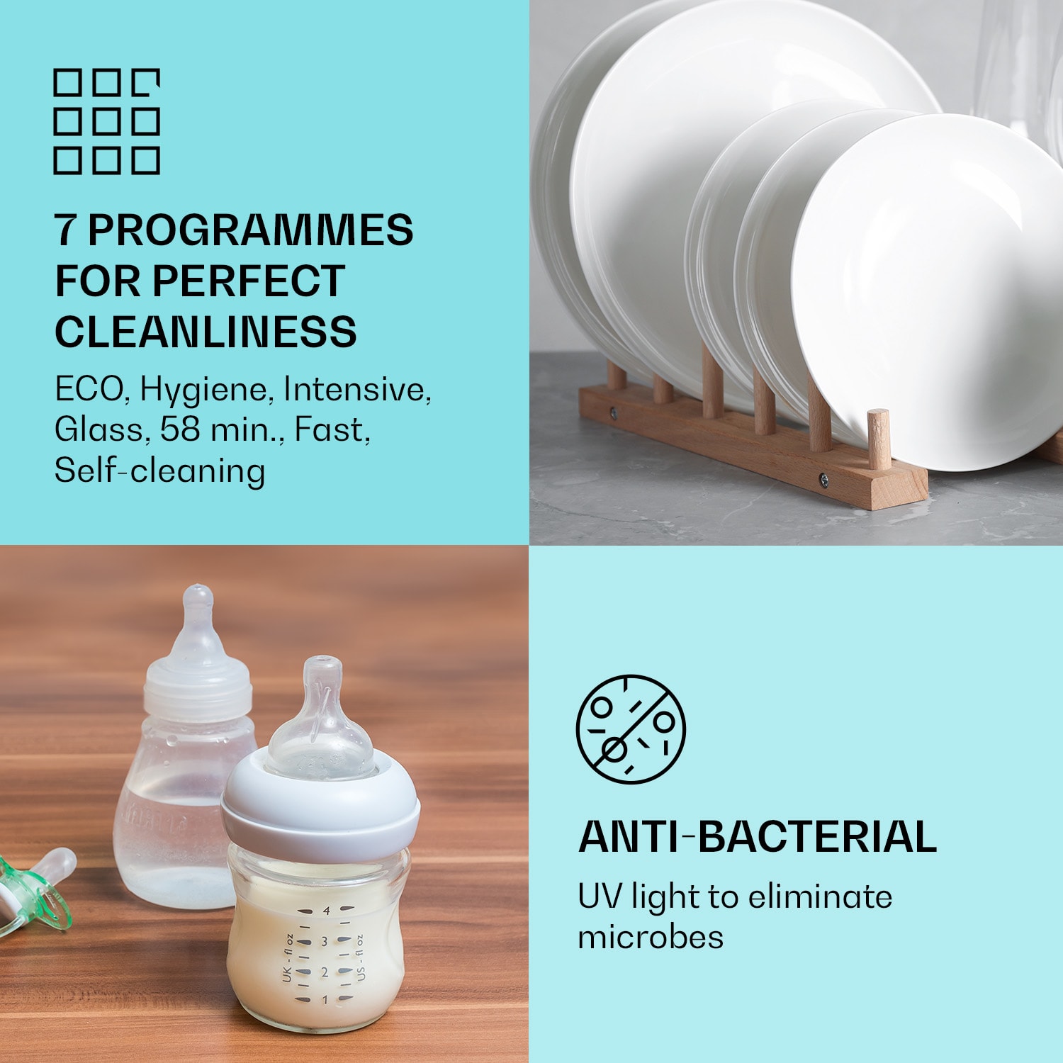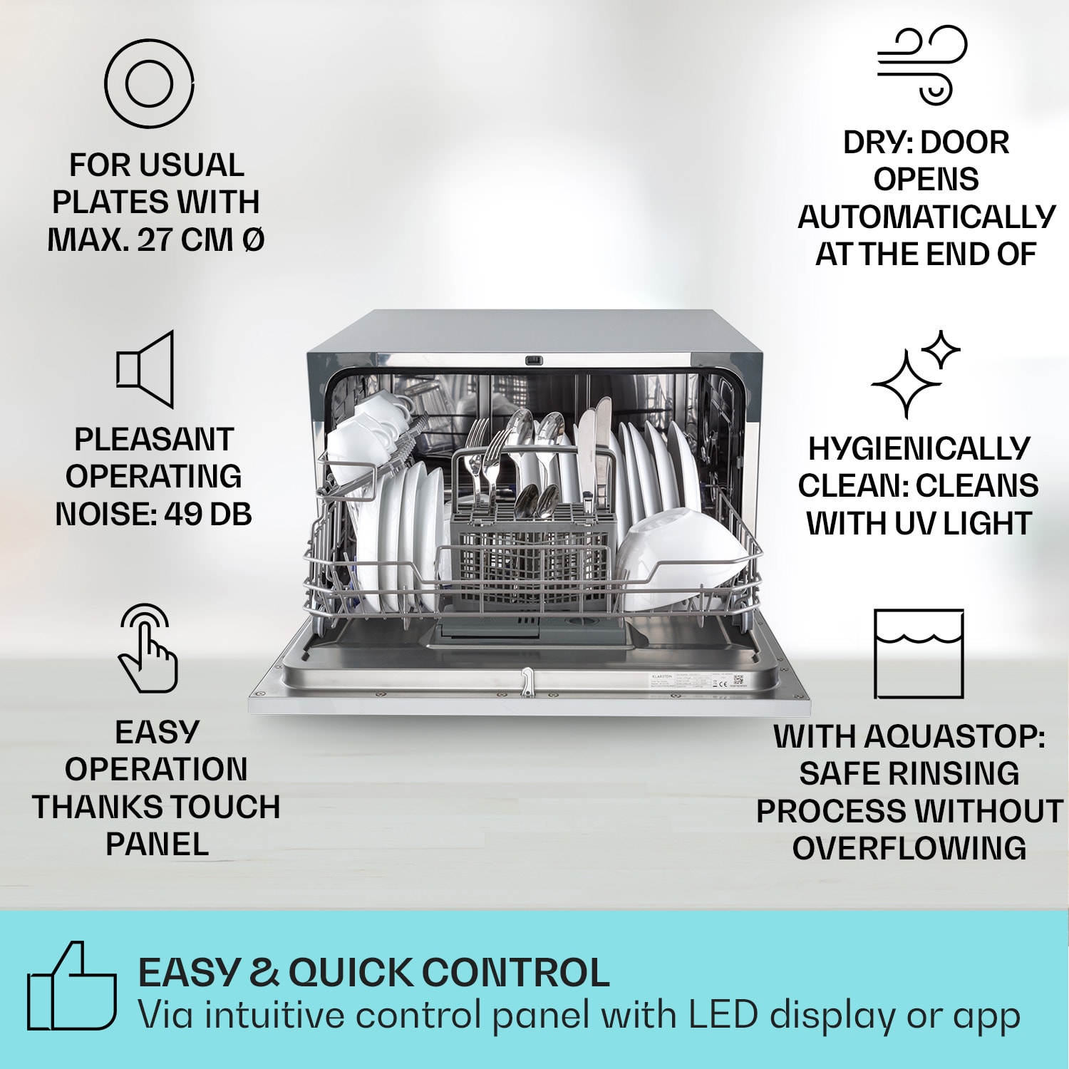 Umývačka riadu Havasia UV 6 Luminance od Klarstein je presvedčivý pomocník pri umývaní s mnohými užitočnými funkciami! Vo vnútri je miesto až na 6 súprav riadu. S výkonom 1380 W a siedmimi rôznymi programami sa umývačka Havasia UV 6 Luminance postará o to, aby špinavý riad opäť žiaril. Všetky programy sa dajú rýchlo a jednoducho nastaviť pomocou prehľadného dotykového ovládacieho panela.Umývačku riadu Havasia UV 6 Luminance možno používať ako vstavaný spotrebič alebo ako stolnú umývačku. Jej elegantný dizajn vnesie do každej kuchyne nádych luxusu.