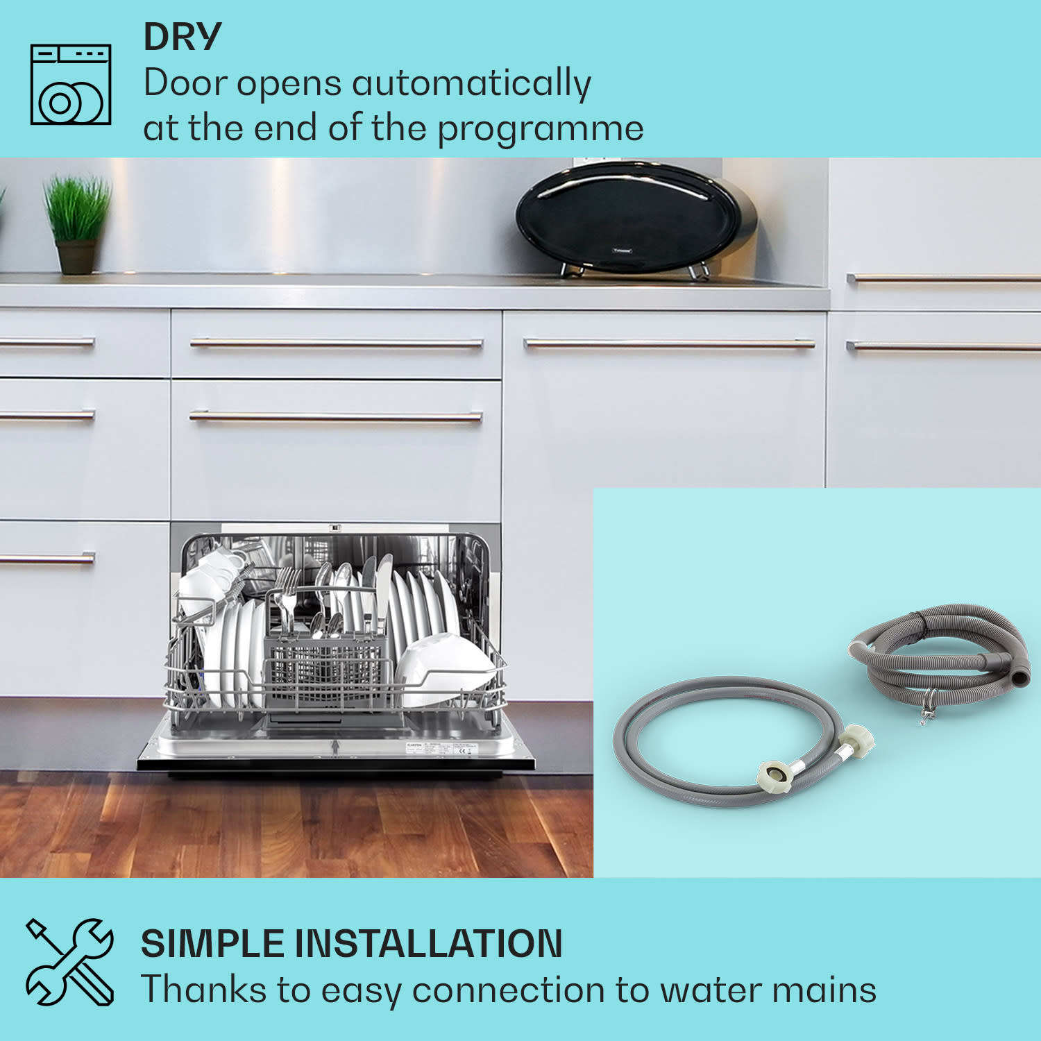 Umývačka riadu Havasia UV 8 od Klarstein je presvedčivý pomocník pri umývaní s mnohými užitočnými funkciami! Zmestí sa do nej až 8 súprav riadu. S výkonom 1620 W a šiestimi rôznymi programami sa umývačka Havasia UV 8 postará o to, aby špinavý riad opäť žiaril. Všetky programy sa dajú rýchlo a jednoducho nastaviť pomocou prehľadného tlačidlového ovládacieho panela. S automatickým otváraním dverí a integrovaným UV svetlom pre mimoriadne účinné čistenie a úsporné sušenie vám zaručene uľahčí každodenný život. Zabudovaný držiak uľahčuje aj umývanie pohárov na víno alebo šampanské. Umývačku riadu Havasia UV 8 môžete použiť ako voľne stojacu na stole alebo pracovnej doske alebo aj ako zabudovaný spotrebič.