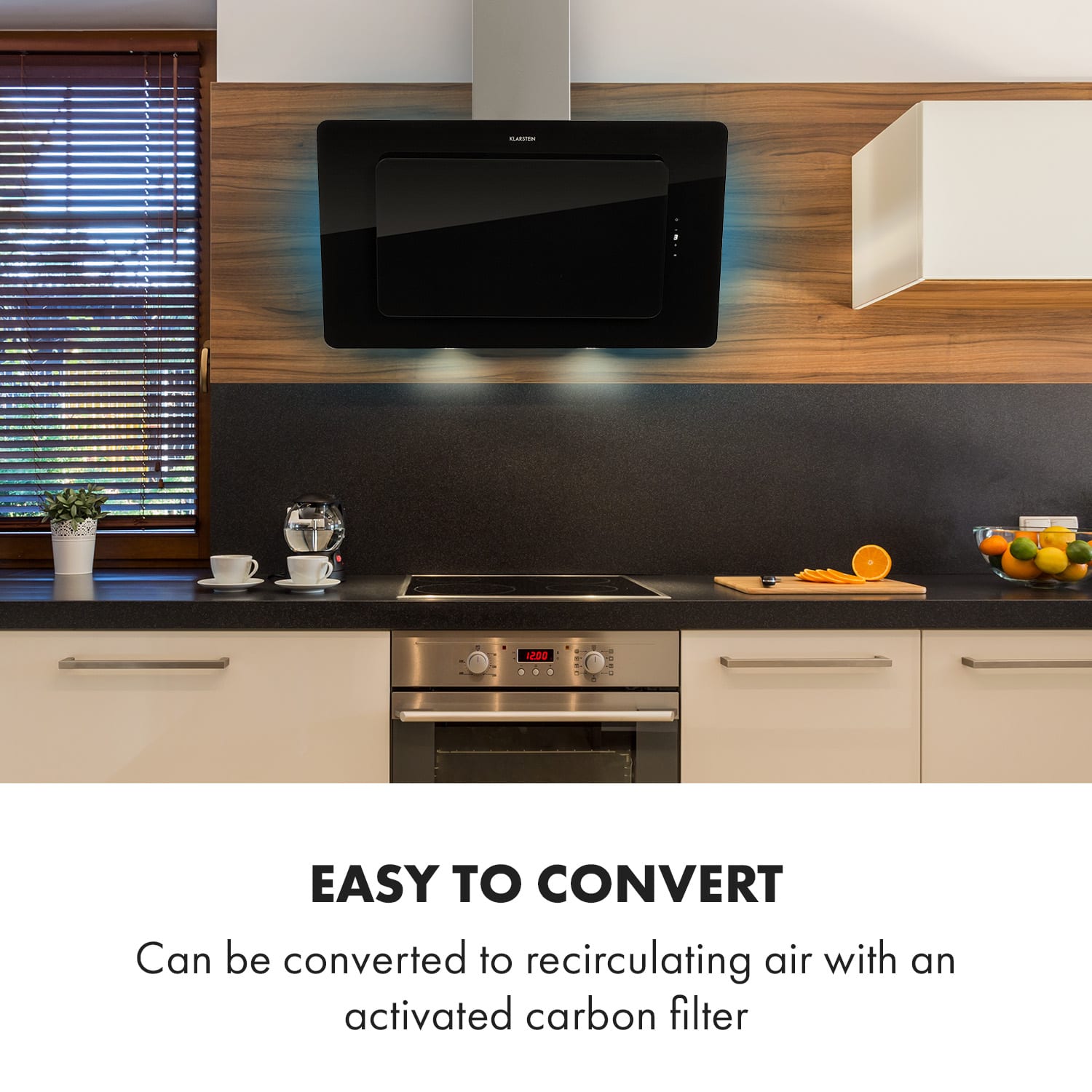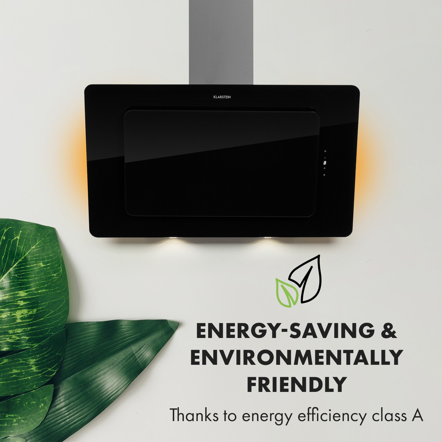 Digestor Klarstein Helena 90 presviedča triedou energetickej účinnosti A, zaručuje vysoké hodnoty prietoku vzduchu a vďaka farebnému ambientnému osvetleniu ozvláštni atmosféru v kuchyni. Vďaka trom stupňom výkonu možno výkon digestora Helena 90 ľahko prispôsobiť procesu varenia. Na najvyššej úrovni odsáva z kuchyne až 595 m³/h vzduchu a zvládne aj prípravu niekoľkých chodov. Vďaka najmodernejšej technológii zostáva hladina hluku a spotreba energie príjemne nízka, len 63 dB a trieda energetickej účinnosti A. Digestor Klarstein Helena 90 je mimoriadne atraktívny nielen vďaka svojmu elegantnému vzhľadu, ale aj vďaka voliteľnému ambientnému osvetleniu s deviatimi rôznymi farbami. Tento digestor s voľným priestorom na hlavu dodá každej kuchyni vlastnú špeciálnu atmosféru. Dve prepínateľné LED lampy nad varnou plochou umožňujú mať panvice a hrnce v dokonalom prehľade. Všetky ovládacie prvky sú integrované priamo do povrchu ako dotykový panel a displej. Všetok potrebný materiál pre montáž na stenu, výfuková hadica a vhodný kryt komína sú súčasťou dodávky. Pomocou dvoch filtrov s aktívnym uhlím možno digestor jednoducho prestavať na recirkulačný režim.Energeticky úsporný, ekologický, výkonný s jasným svetlom: Najdôležitejšie vlastnosti digestora Klarstein Helena 90 už na prvý pohľad.
