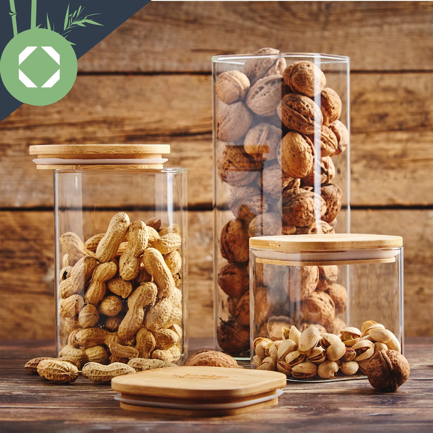 S kvalitnou hranatou nádobou s bambusovým vrchnákom od Klarstein bambuswaldu môžeš optimálne skladovať potraviny, pretože zostanú dlho čerstvé. Krásny vrchnák vyrobený zo 100 % bambusu je vzduchotesný, takže uskladnené potraviny si dlho zachovajú svoju arómu. Vďaka silikónovému krúžku je všetko uzavreté extra vzduchotesne. Okrem toho je veko odolné proti vlhkosti a má mimoriadne dlhú životnosť. Sklenená nádoba na skladovanie potravín od Klarstein bambuswaldu neovplyvňuje chuť, je odolná proti teplu aj chladu. Sklenenú nádobu môžeš dať bez vrchnáka pre jednoduché čistenie dokonca do umývačky riadu.Kvalitné sklo so zaoblenými hranami: hranatá dóza od Klarstein bambuswaldu bude v tvojej kuchyni štýlovým akcentom a tvoje zásoby udrží čerstvé po dlhú dobu!