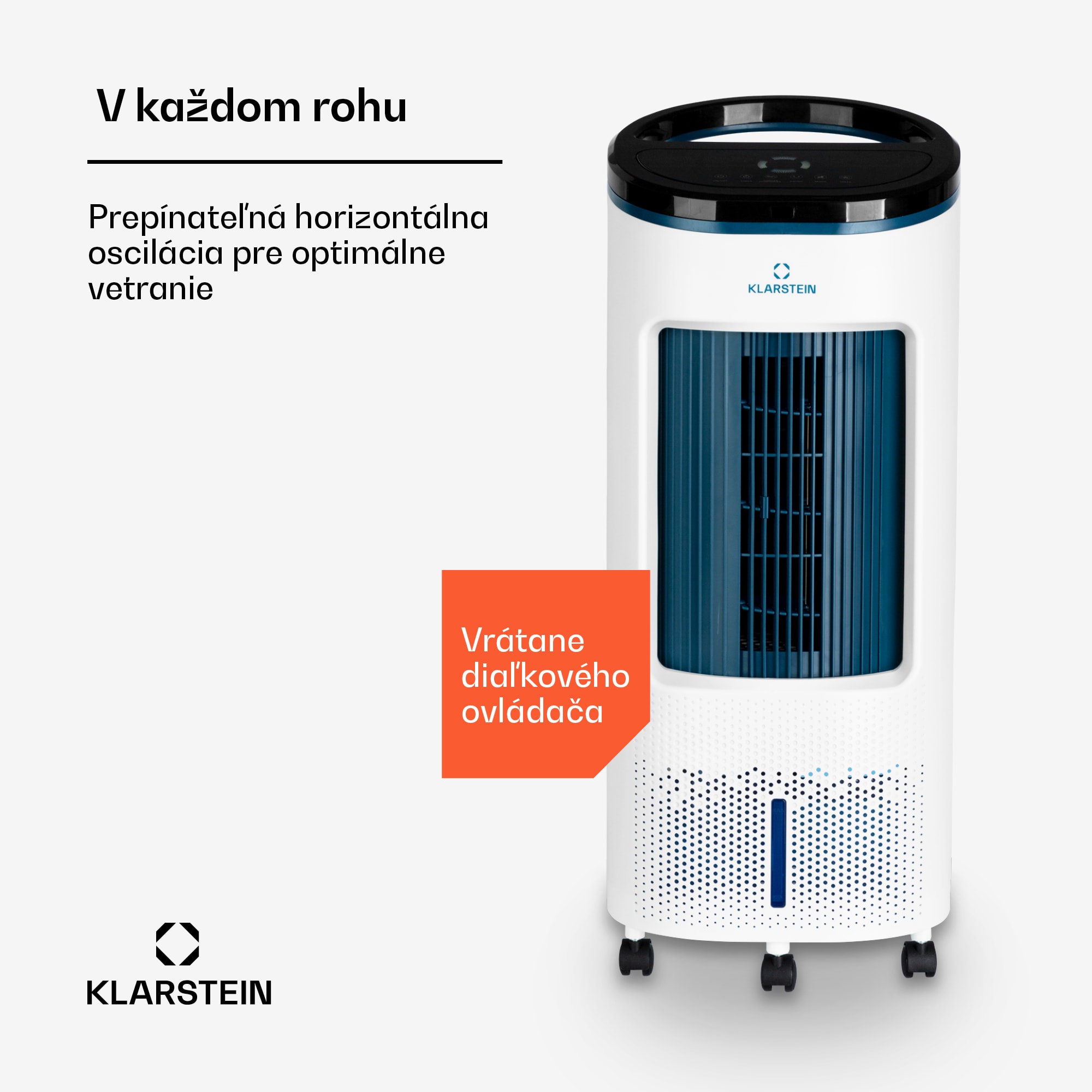 Chladivé osvieženie v horúcich dňoch:Ochladzovač vzduchu Klarstein IceWind Plus Smart 4 v 1 vám spoľahlivo poskytne chladivý prúd vzduchu a naopak v chladných dňoch zaujme aj praktickými funkciami zvlhčovača a čističky vzduchu.Obzvlášť inteligentné: zariadenie Ice Wind Plus Smart môžete ovládať odkiaľkoľvek cez domáce WiFi pomocou aplikácie Klarstein na smartfóne alebo tablete. Štyri rôzne úrovne vetra a tri prevádzkové režimy poskytujú cielené osvieženie pri použití funkcie ventilátora . Prepínateľná oscilácia ventilátora dodáva čerstvý vzduch viacerým osobám prostredníctvom ľavo-pravého kmitania lamiel. Ak sa používa aj ochladzovač vzduchu , chladenie je dostupné po celý deň pri každej činnosti. Dva vymeniteľné chladiace balíčky pre nádrž na vodu môžu tento efekt ešte znásobiť. Integrovaný ionizátor čistí vzduch od pachov a nečistôt. Jednotku možno obsluhovať aj prostredníctvom dotykového ovládacieho panela alebo pohodlne diaľkovým ovládaním.Výkonný a všestranný: Ochladzovač vzduchuKlarstein IceWind Plus Smart 4 v 1 je osviežujúcou odpoveďou na všetky horúce dni v roku.