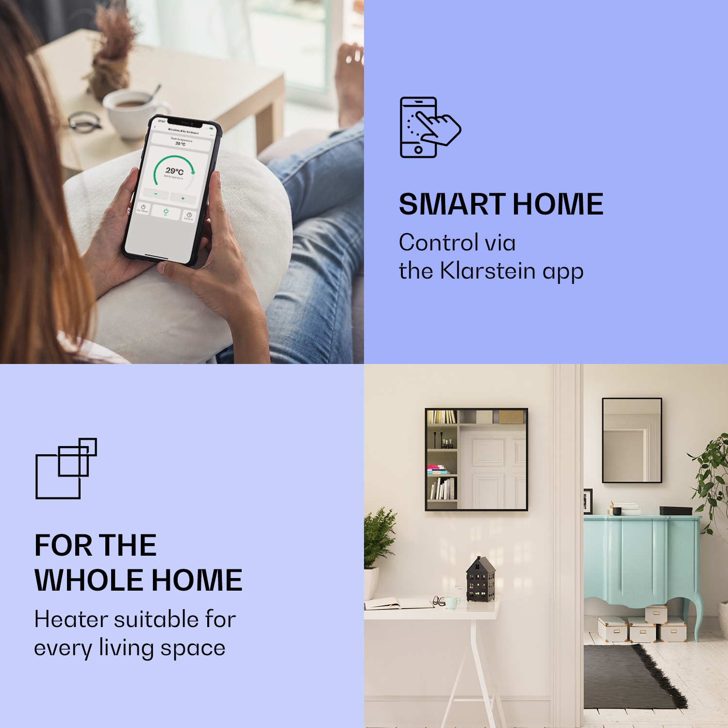 Klarstein La Palma 500 smart, infračervený ohrievač 2 v 1, 60 x 60 cm, 500 W, zrkadlová predná časť – Kúpiť