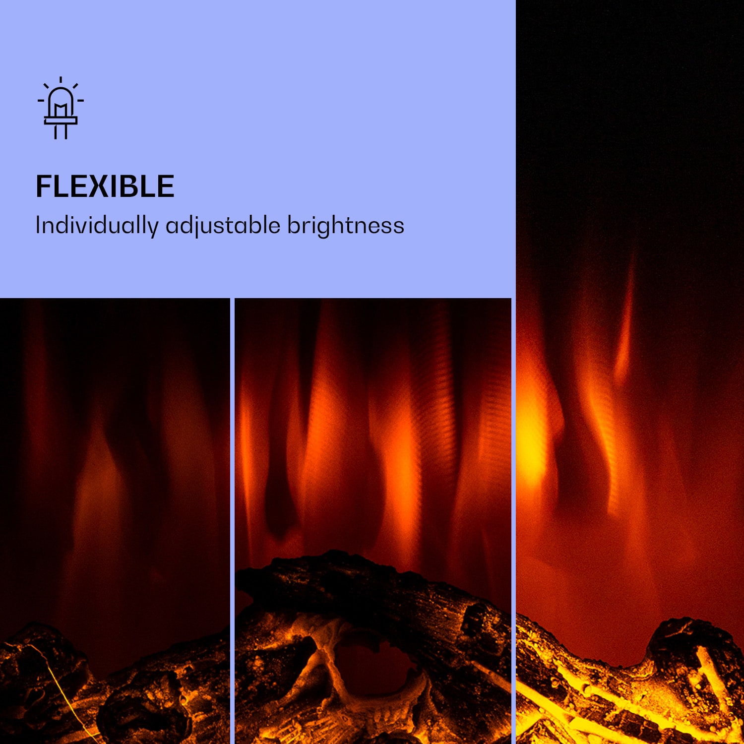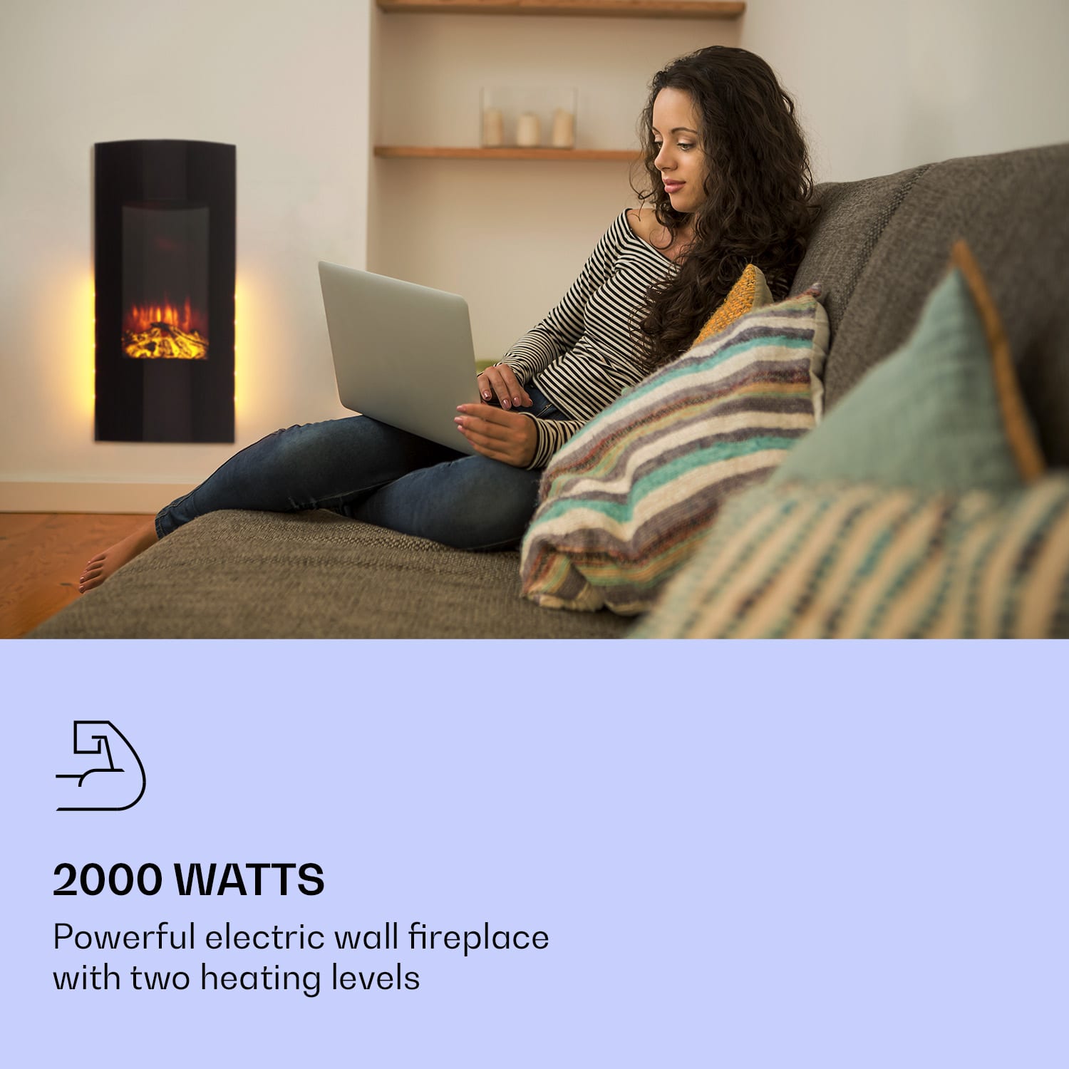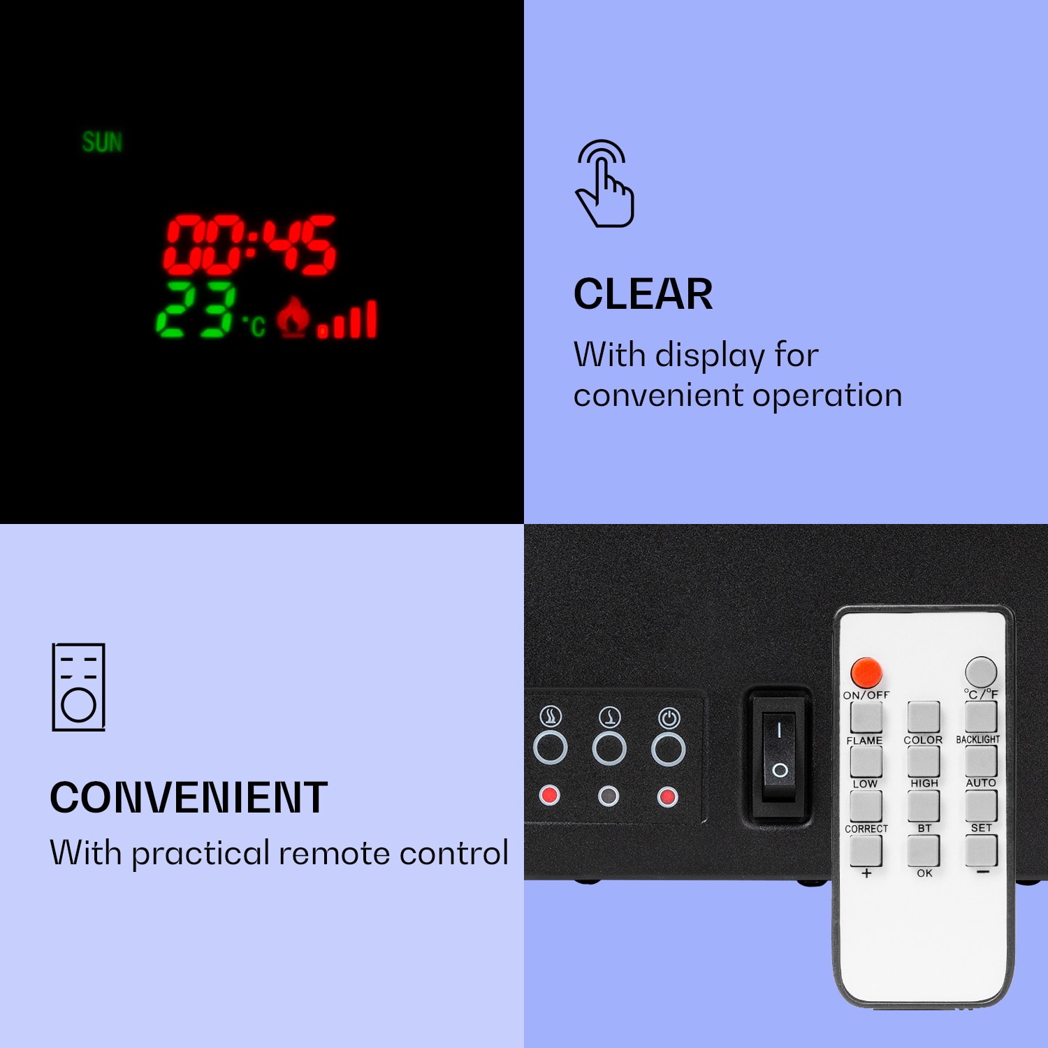 Realistické LED plamene a príjemné teplo: s elektrickým krbom Lamington od spoločnosti Klarstein vytvoríte vo svojom domove nádherne útulnú atmosféru. Jeho dva stupne ohrevu sa postarajú o príjemné teploty a praskajúci LED oheň bude živo blčať nad drevenými polenami. Zvláštnosťou nástenného krbu Lamington je jeho farebné ambientné svetlo na zadnej strane. Jas plameňa môžete individuálne prispôsobiť. Vďaka integrovanému časovaču a praktickému diaľkovému ovládaču splní zariadenie Lamington všetky vaše predstavy. Zaoblená sklenená predná časť šikovne dotvára jeho moderný dizajn.
