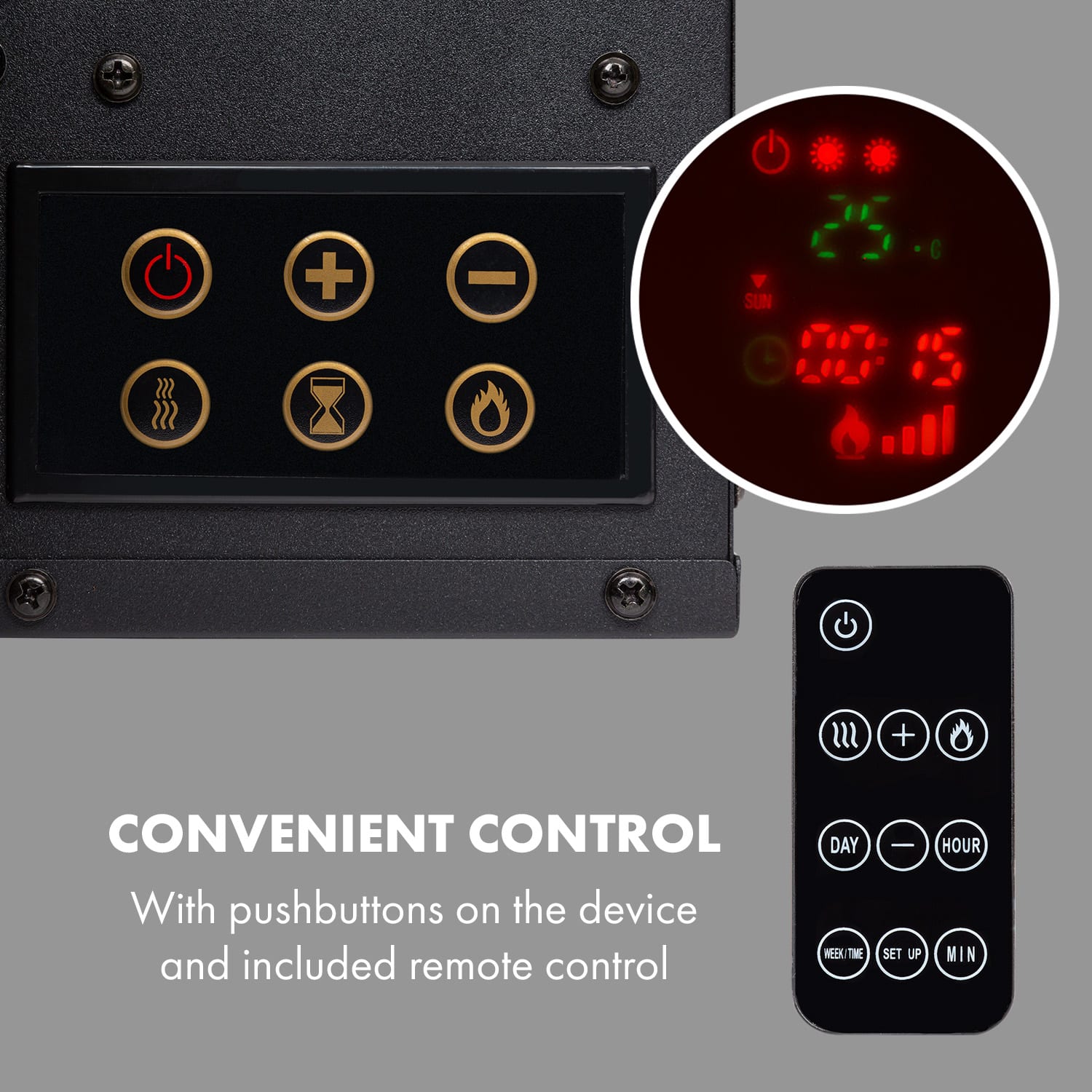 Elektrický krb Lausanne Long od spoločnosti Klarstein vyčaruje romantickú atmosféru vďaka zaujímavej ilúzii ohňa. Zažite atmosféru skutočného, praskajúceho krbového ohňa – bez dymu, skutočného ohňa, popola a sadzí. Prídavná funkcia ohrevu vám poskytne príjemné teplo a možno ho regulovať v dvoch stupňoch. Môžete nastaviť aj jas nástenného krbu . A to všetko pohodlne pomocou diaľkového ovládaniaVyrobený výlučne zo skla, Klarstein Lausanne Long vyzerá mimoriadne elegantne na každej stene, aj keď je vypnutý – keď je zapnutý, vyžaruje teplo s útulným šarmom skutočného ohňa. Poznámka: Tento výrobok je vhodný len do dobre izolovaných miestností alebo na príležitostné použitie.