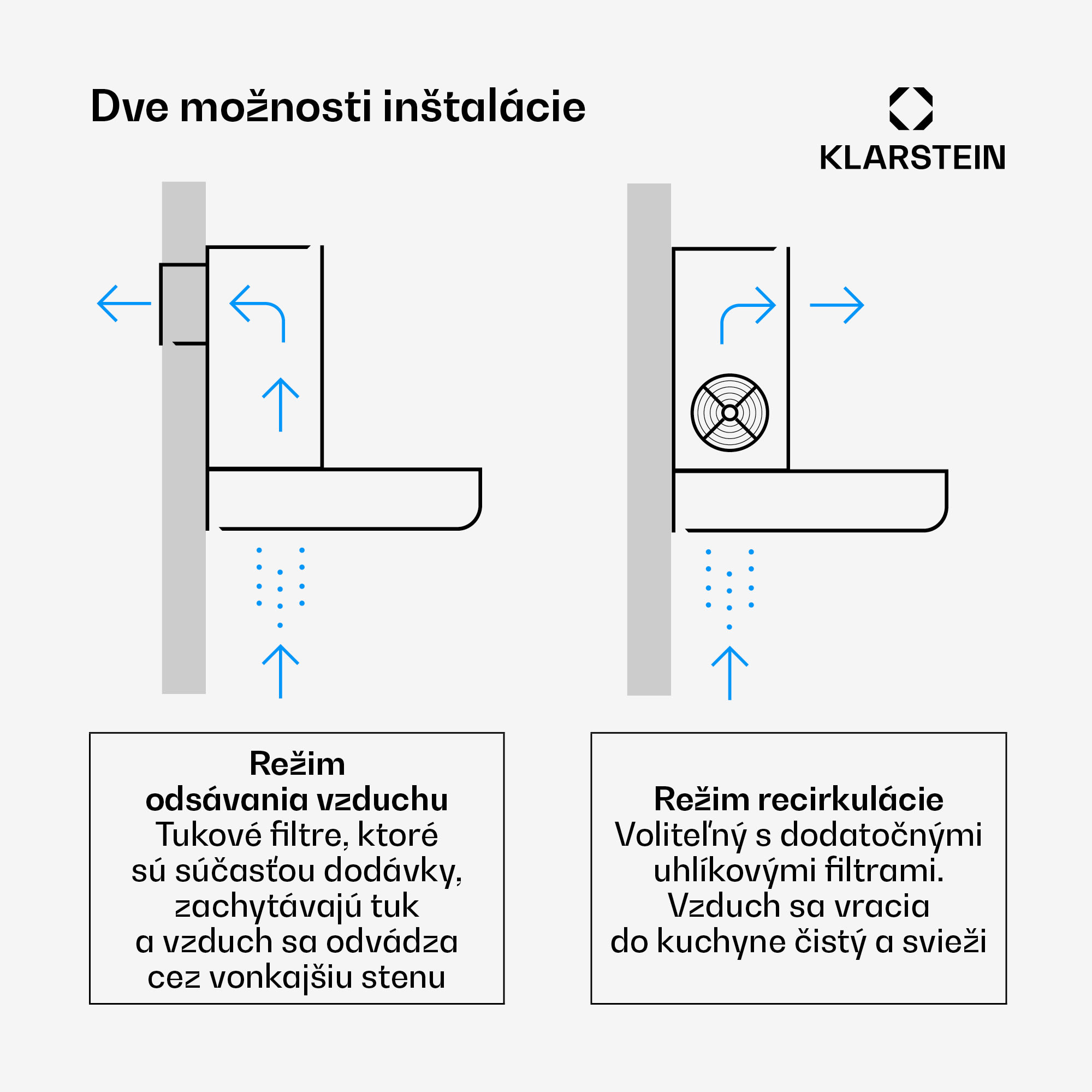 Elegantný a praktický zároveň, taký je digestor Limelight od Klarstein. Obohatí každú kuchyňu o ochotného pomocníka pri odstraňovaní pary, dymu a pachov z jedla.So šírkou 60 cm sadigestor Limelight od Klarstein ideálne hodí na malé až stredne veľké varné plochy a kuchynské linky. Najvyšší stupeň výkonu odvedie z kuchyne až 600 metrov kubických vzduchu za hodinu, a tak zvládne prípravu niekoľkých chodov. Vďaka modernej technológii je šetrný k peňaženke a životnému prostrediu vďaka nízkej spotrebe energie. Jednoduchá ovládacia plocha na prednej strane umožňuje výber troch úrovní vetrania. Časovač vypnutia umožňuje, aby sa digestor po varení vyvetral a potom sa automaticky vypol. Dve integrované svetlá poskytujú dostatok svetla na varnej ploche, aby vášniví kuchári presne videli, čo robia.Digestor Limelight je určený na nástennú montáž; potrebný montážny materiál a lišty pre hadicu odsávaného vzduchu sú súčasťou balenia. Digestor môžete jednoducho prestavať na prevádzku s recirkuláciou vzduchu.Jasný výhľad v kuchyni: S nástenným digestorom Limelight od Klarstein rýchlo zmiznú pachy jedla, pary a zvyšky mastnoty.