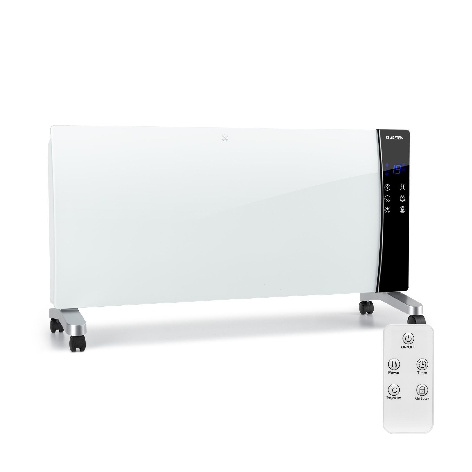 Príjemné teplo a decentná elegancia: ohrievač Klarstein Lindholm sa postará o rovnomerné zvýšenie teploty a rozdelenie vykurovaného vzduchu v miestnostiach do veľkosti 40 m2.S dvomi úrovňami vykurovania – 1000 alebo 2000 W – konvekčný ohrievač Lindholm vyhreje tvoje miestnosti až do teploty 40 °C. Pomocou termostatu môžeš nastaviť príjemnú teplotu na stupeň presne. Praktický časovač sa dá nastaviť po hodinách a podľa vykonaných nastavení sa ohrievanie vypne na minútu presne. Sklenený panel zariadenia Klarstein Lindholm je odolný voči striekajúcej vode a môže sa preto postarať o optimálnu teplotu aj v tvojej kúpeľni. Zakrivený tvar vyrobený zo zaobleného bezpečnostného skla dodáva zariadeniu Lindholm mimoriadne elegantný vzhľad a súčasne zabezpečuje zlepšenie distribúcie tepla v miestnosti.Zariadenie Lindholm sa ovláda pomocou dotykového displeja na pravej strane sklenenej prednej strany alebo veľmi pohodlne pomocou diaľkového ovládača. Detská poistka a integrovaná ochrana proti prehriatiu sa postarajú o potrebnú bezpečnosť. Zabezpečené je aj flexibilné používanie zariadenia: konvekčný ohrievač Klarstein Lindholm môžeš upevniť pomocou priloženého montážneho materiálu priestorovo úsporne na steny alebo ho nekomplikovane môžeš použiť ako stojace zariadenie s dodávanými kolieskami. Tento konvektor je ideálny pre každú domácnosť.Ohrievač Klarstein Lindholm zhodnotí každú miestnosť a postará sa o príjemné vnútorné teploty – bez ohľadu na to, ako je vonku chladno.