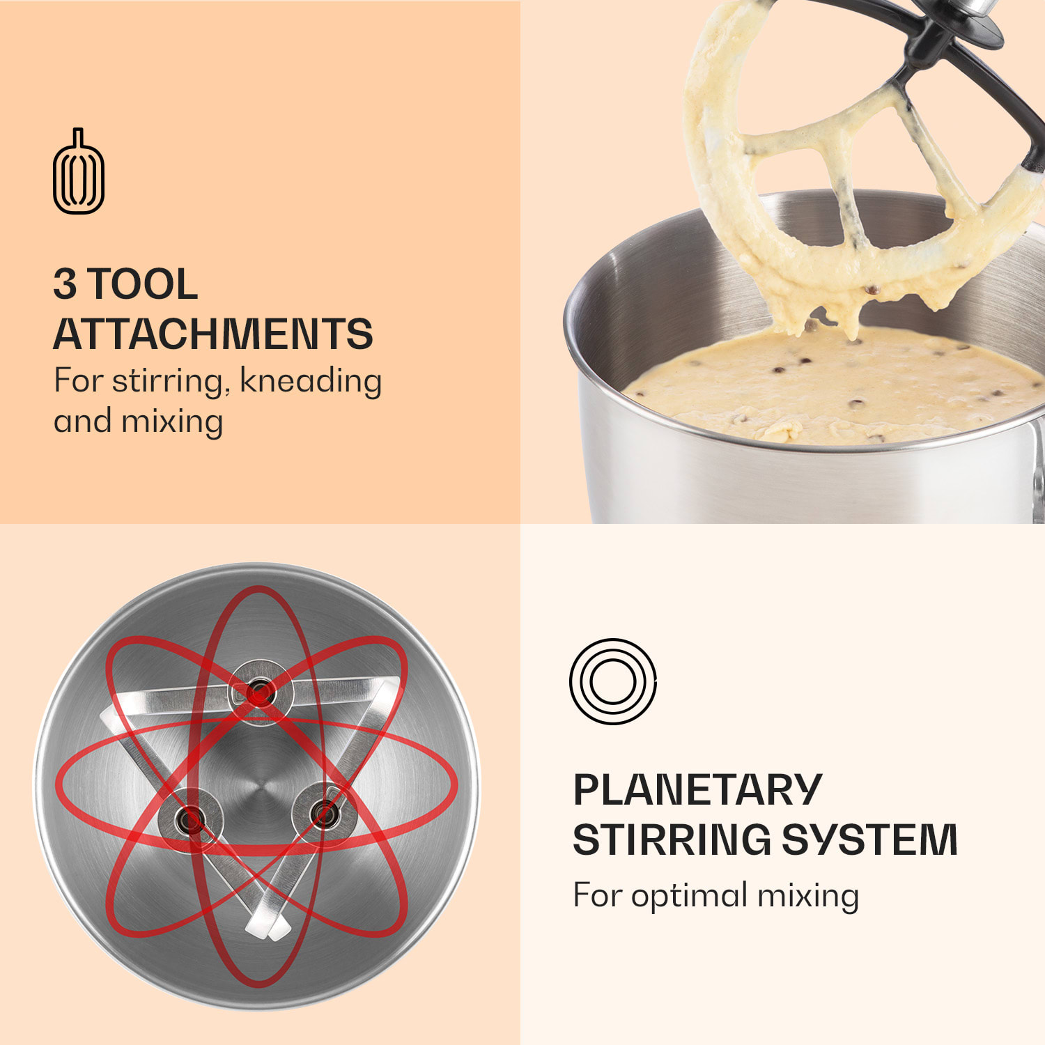 Osvedčená sila v kuchyni v novom šate! Kuchynský robot Klarstein Lucia Elegance dodáva všestranným výkonom nový rozmer.Kuchynský robot Klarstein Lucia Elegance 3 v 1 je multitalent do kuchyne: s mixérom na miesenie, miešanie alebo šľahanie, a sekanie i mlynčekom na mäso na čerstvé mleté mäso, domáce klobásy alebo lahodné cestoviny. S výkonom 1800 W, 6 rýchlosťami a osvedčeným planetárnym systémom miešania od spoločnosti Klarstein, ľahko splní všetky výzvy modernej kuchyne. Ani veľké množstvá nie sú problém: vďaka 5-litrovej mixovacej nádobe z nehrdzavejúcej ocele menšej a 1.5-litrovej nádobe na mixovanie. Kuchynský robot aj dobre vyzerá : Vďaka svojmu kompaktnému dizajnovému krytu sa mixér Klarstein Lucia Elegance v kuchyni veľmi dobre vyníma.Viac rozmanitosti a elegancie: Lucia Elegance stanovuje nové štandardy v každom ohľade.