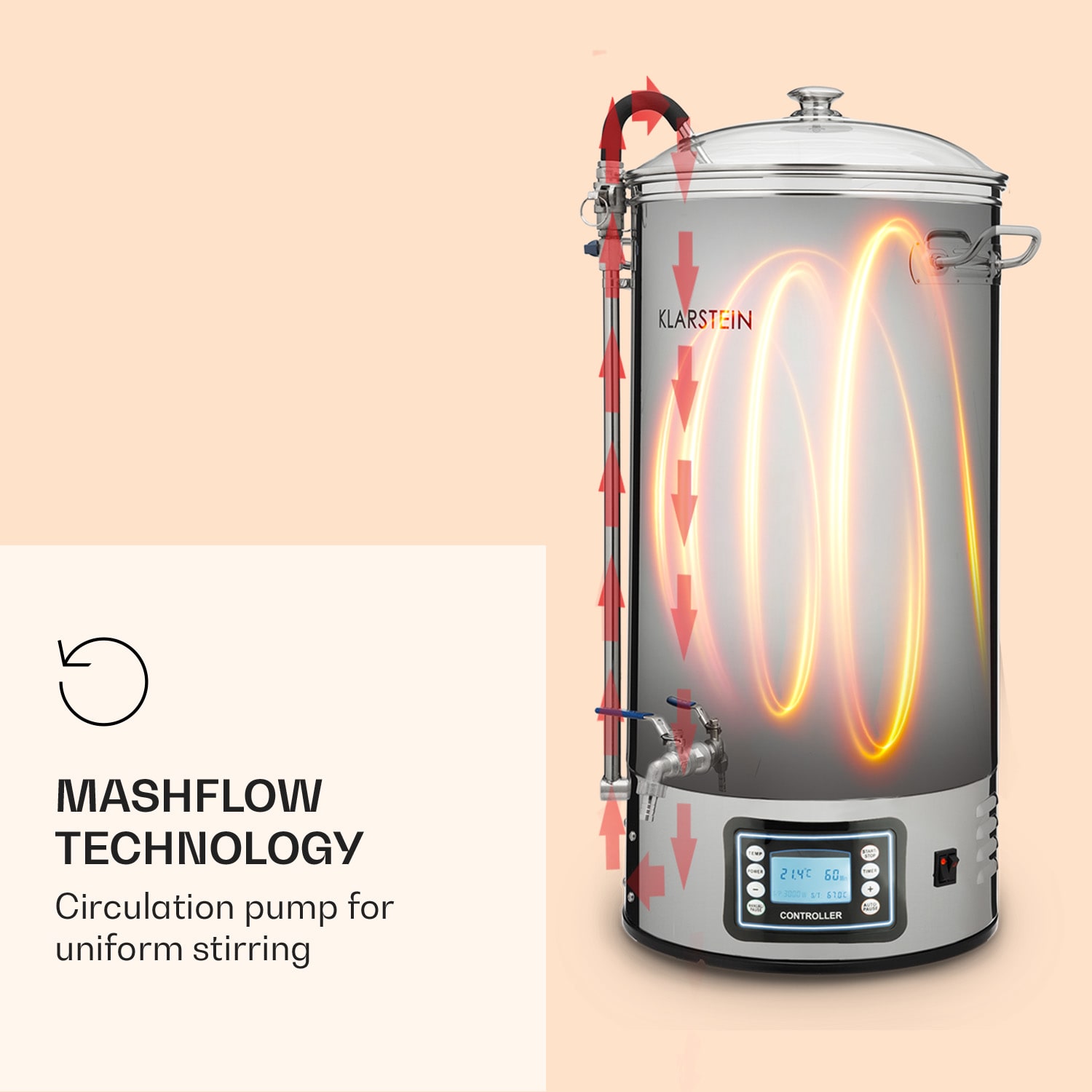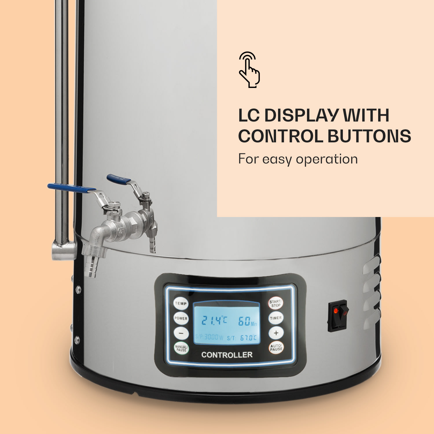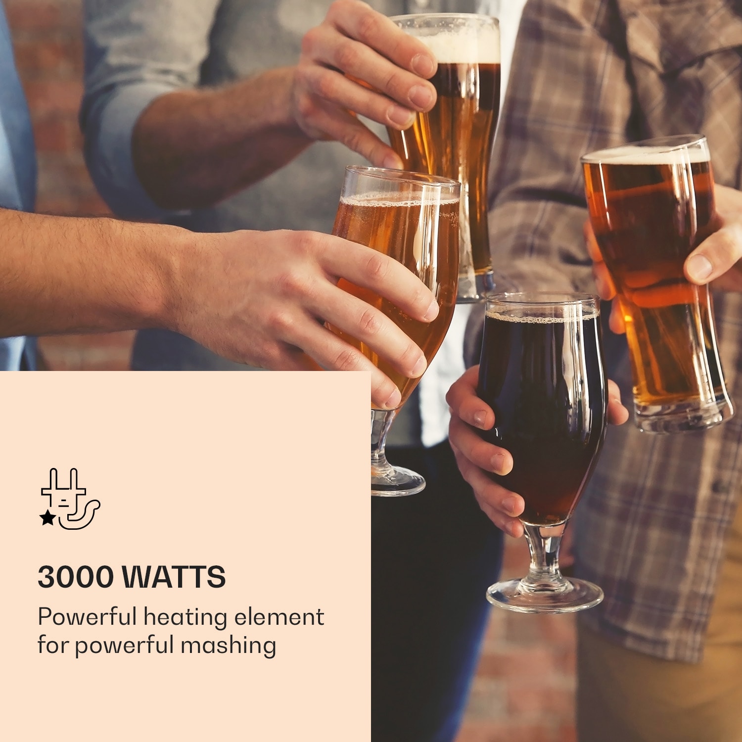 Či už ide o svetlé alebo tmavé, vrchne alebo spodne kvasené, pšeničné alebo plzenské pivo, Klarstein Mundschenk XXL rmutovací kotol je kompletný balík na varenie piva – poskytuje domácemu pivovaru tú správnu originálnu mladinu. Na prehľadnom LCD displeji s ovládacími tlačidlami môžete presne nastaviť teplotu, čas varenia a výkon, alebo môžete celý proces prenechať na automatické ovládanie MemoryBrew-. Čerstvé pivo z vlastného domáceho pivovaru? Nič nemôže byť jednoduchšie: s kotlom na varenie Klarstein Mundschenk XXL Upozornenie: V Nemecku sa varenie piva musí nahlásiť príslušnému hlavnému colnému úradu.