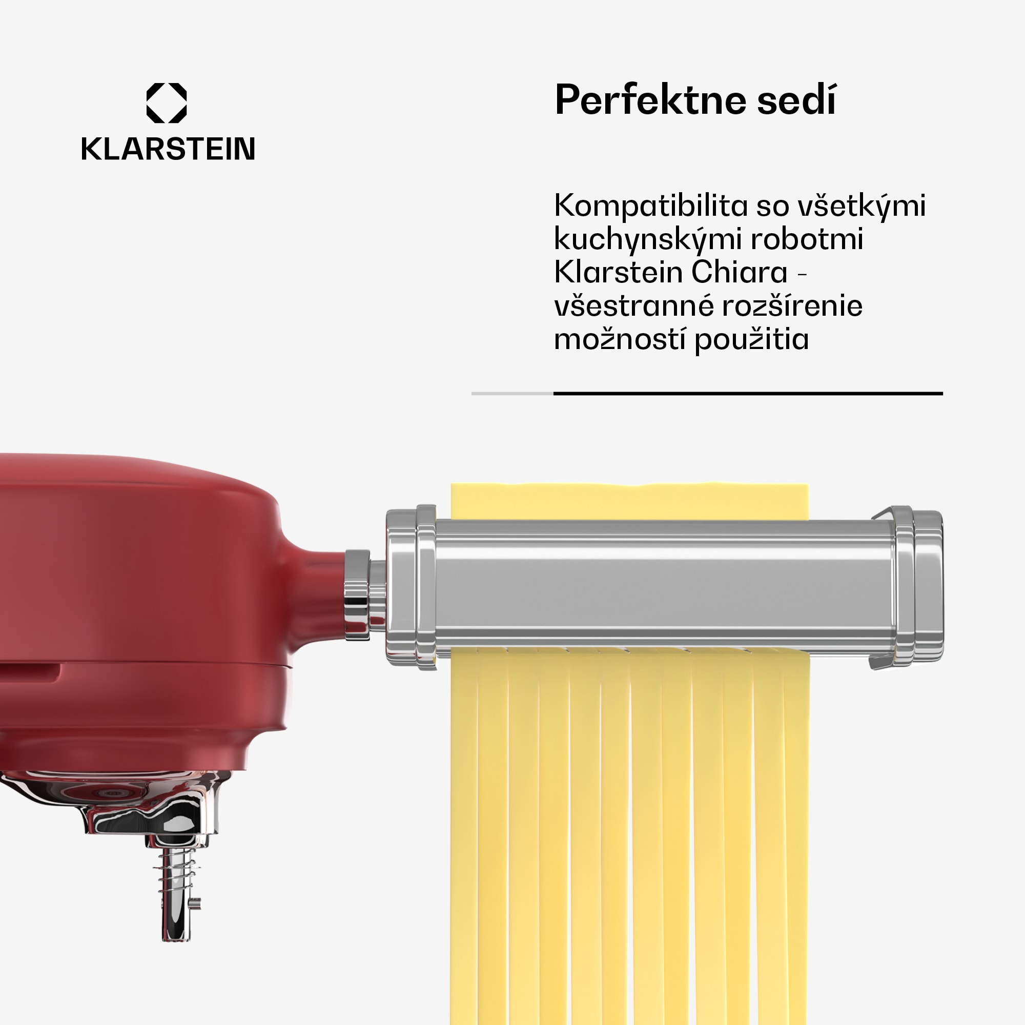 Nástavec na cestoviny Klarstein premení váš kuchynský robot Klarstein Chiara na všestranný výrobník cestovín a prinesie do vašej kuchyne radosť.Nástavec na cestoviny Klarstein Chiara je skutočne všestranný. Vďaka svojim trom funkciám – valček na cestoviny, krájač na fettuccine a krájač na špagety – otvára svet chutných variácií cestovín. Osem nastaviteľných hrúbok umožňuje prispôsobiť plátky cesta presne podľa vašich preferencií a vytvoriť tradičné cestoviny, špagety, fettuccine, lasagne a ďalšie. Ak máte radi cestoviny a vlastníte kuchynský robot Klarstein Chiara , tento nadstavec je presne to, čo potrebujete na rozšírenie svojich kuchárskych zručností.Rozšírte svoj kuchynský robot Klarstein Chiara o nadstavec na cestoviny a vychutnajte si domáce cestoviny pripravené do dokonalosti!