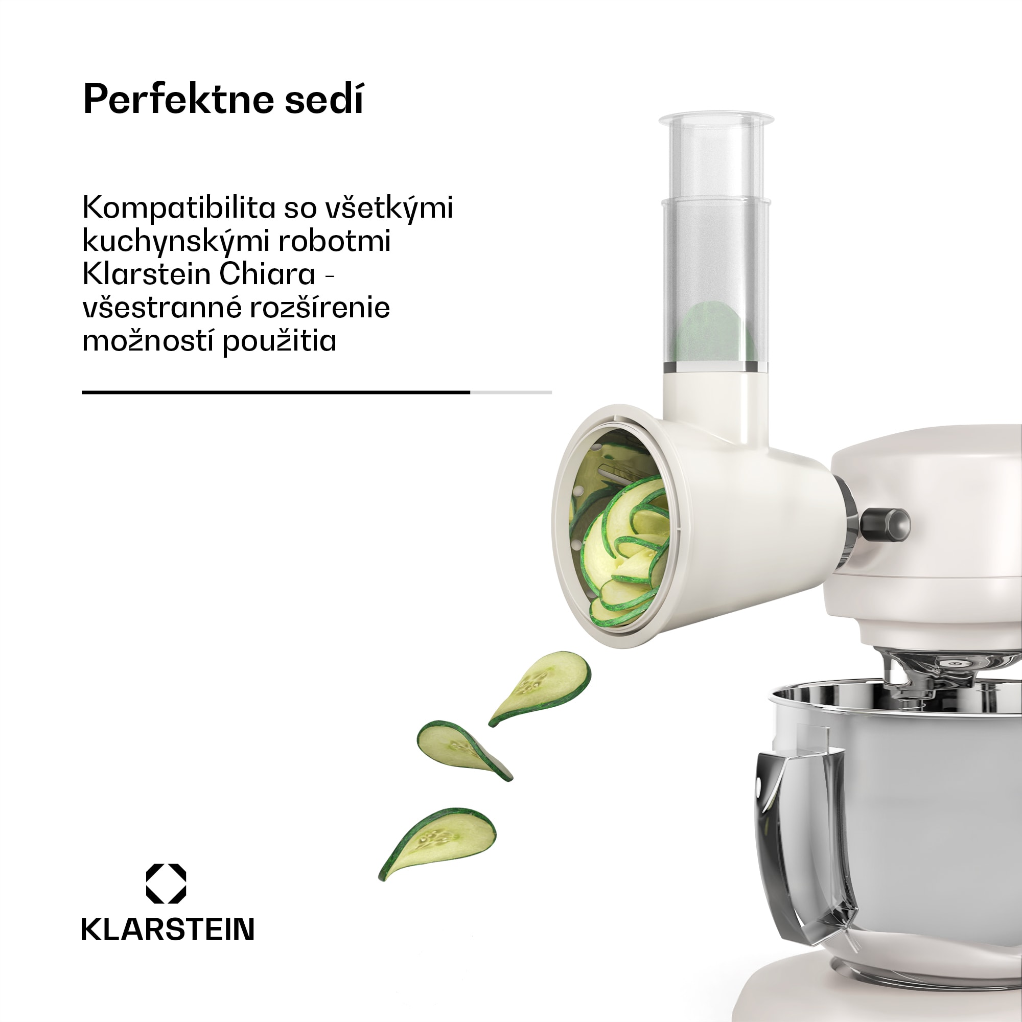 Objavte nástavec na šalát Klarstein Chiara – ideálne príslušenstvo pre váš kuchynský robot Klarstein Chiara . Tento vysokokvalitný nástavec vám ušetrí čas a prinesie radosťNástavec na šalát Klarstein Chiara zaujme svojimi všestrannými funkciami a jednoduchým používaním. Vďaka trom rôznym čepeliam – 5 mm reznej čepeli, 6 mm hrubej strúhacej čepeli a 3 mm jemnej strúhacej čepeli – môžete rýchlo a efektívne spracovať rôzne prísady. Robustné čepele z nehrdzavejúcej ocele zaručujú odolnosť a stabilitu, zatiaľ čo kompaktný dizajn šetrí miesto v kuchyni. Tento nadstavec je ideálny na prípravu šalátov, príloh na pizzu a mnohých ďalších pokrmov, vďaka čomu je varenie ešte príjemnejšie.Nástavec na šalát Klarstein Chiara sa ľahko zostavuje a čistí. Bez námahy prepínajte medzi rôznymi čepeľami a pripravte si ideálne ingrediencie.Objednajte si teraz šalátový nadstavec Klarstein Chiara a zažite radosť z varenia novým spôsobom!