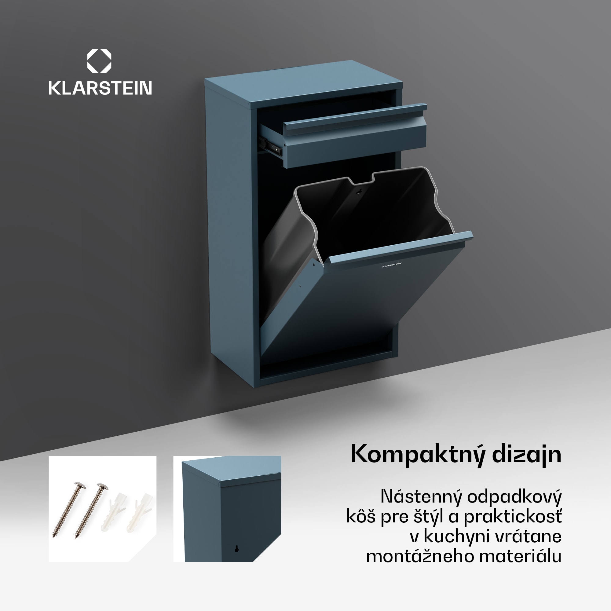 Kuchynský odpadkový kôš so zásuvkou Klarstein Ordnungshüter 50 L – jednoduchá likvidácia odpadu a pohodlné skladovanie.S veľkým 50-litrovým objemom je to dokonalý systém nakladania s odpadom pre vašu kuchyňu. Priehradka má spredu otvárateľné dvierka, ktoré zachytávajú nepríjemné pachy a umožňujú ľahší a rýchlejší prístup na vyprázdňovanie a čistenie.Moderný dizajn, navrhnutý pre jednoduchú montáž na stenu, dodáva vášmu domovu funkčnosť a štýl – a súčasťou balenia je aj montážny materiál na stenu.Odpadkový kôš je vybavený zásuvkou na uloženie vložiek do koša a ďalšieho príslušenstva.Jednoduchý, praktický, moderný: kuchynský odpadkový kôš Klarstein s jednou nádobou prináša štýl a pohodlie do vašej kuchyne.