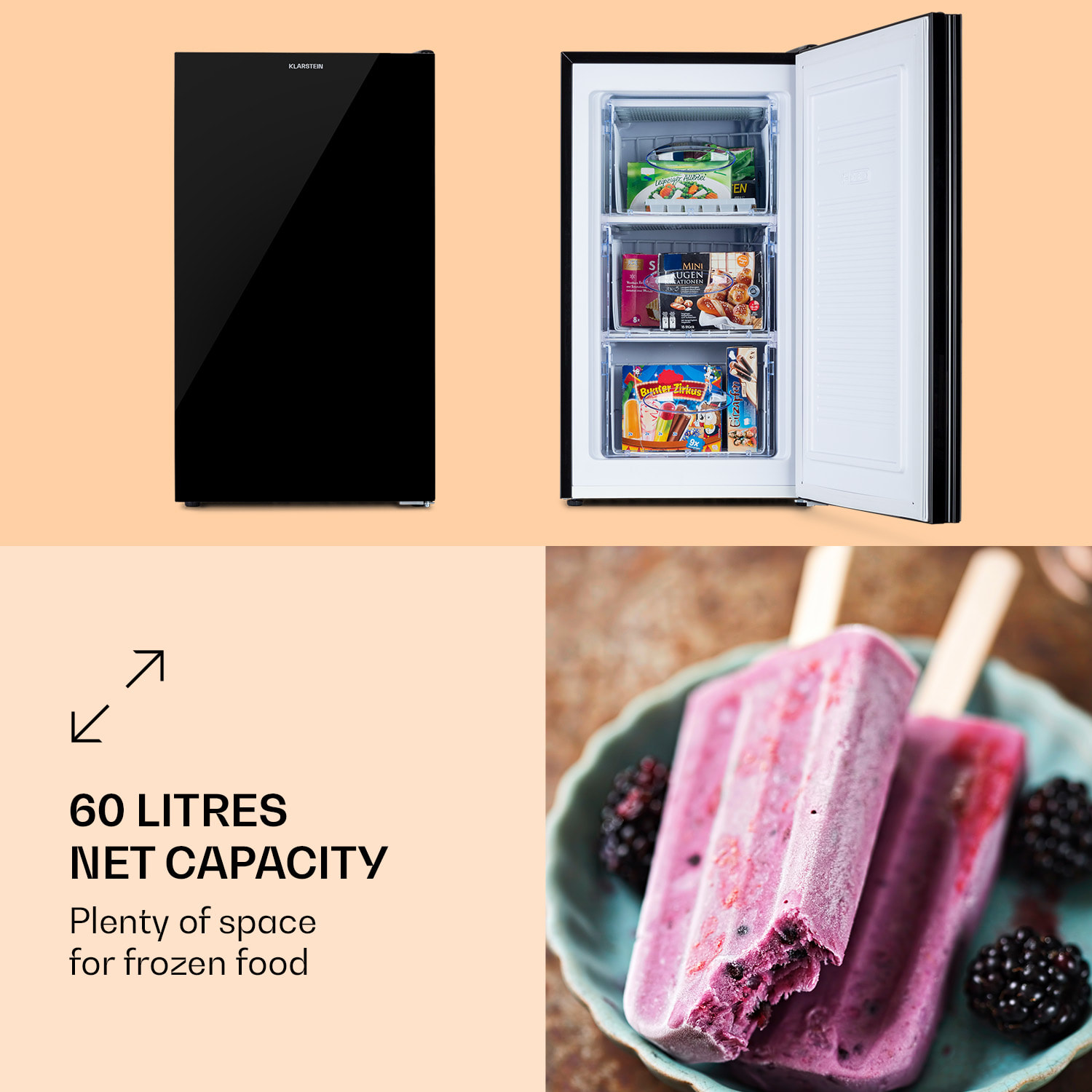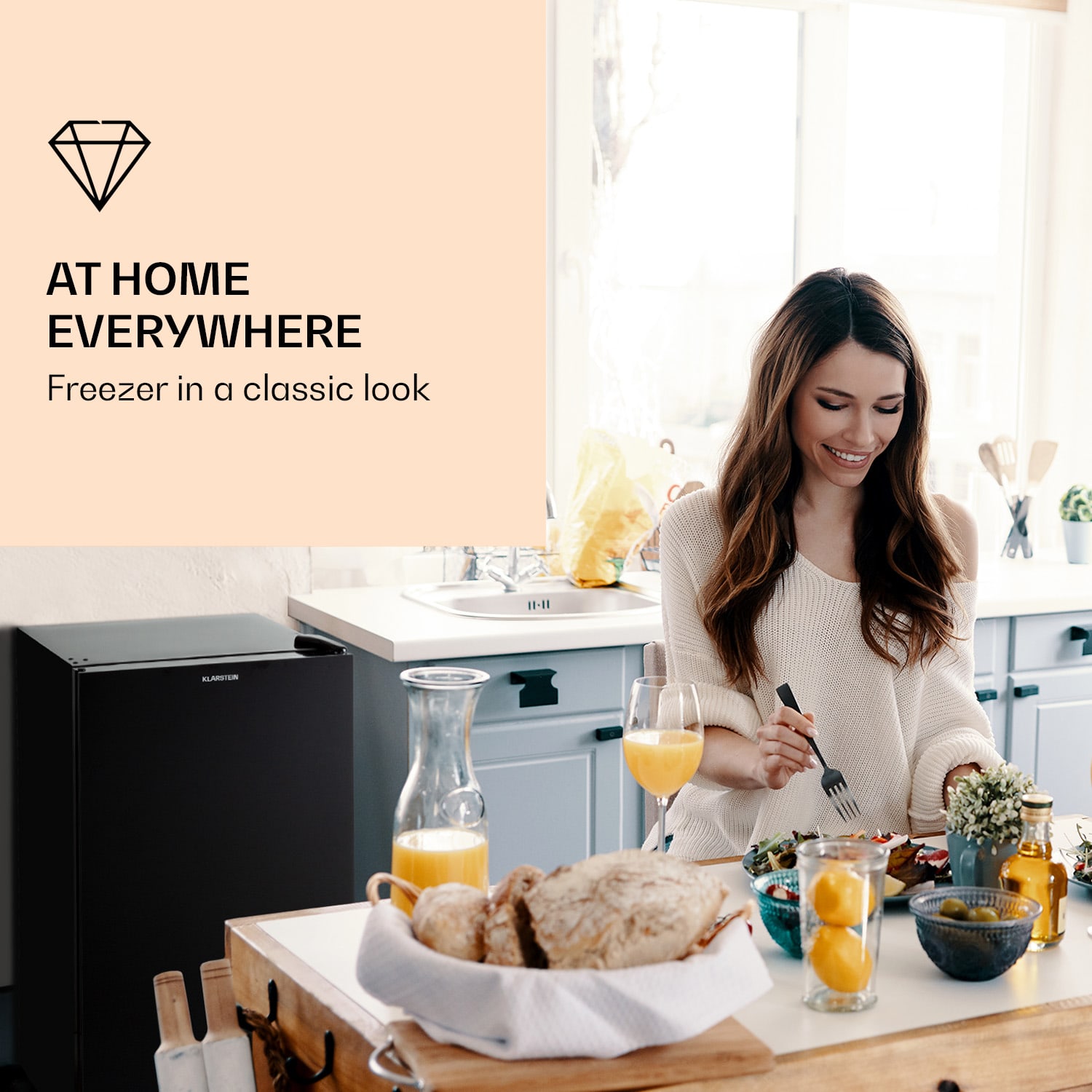 Klarstein Pluto 60L je kompaktná a ekonomická mraznička, ktorá spoľahlivo zmrazí vaše potraviny na 3 úrovniach a objemom 60 litrov. Teplotu mrazenia možno znížiť na -18 °C pomocou 5-stupňového termostatu.Štýlová, spoľahlivá a kompaktná: praktická mraznička Pluto 60L od Klarstein.