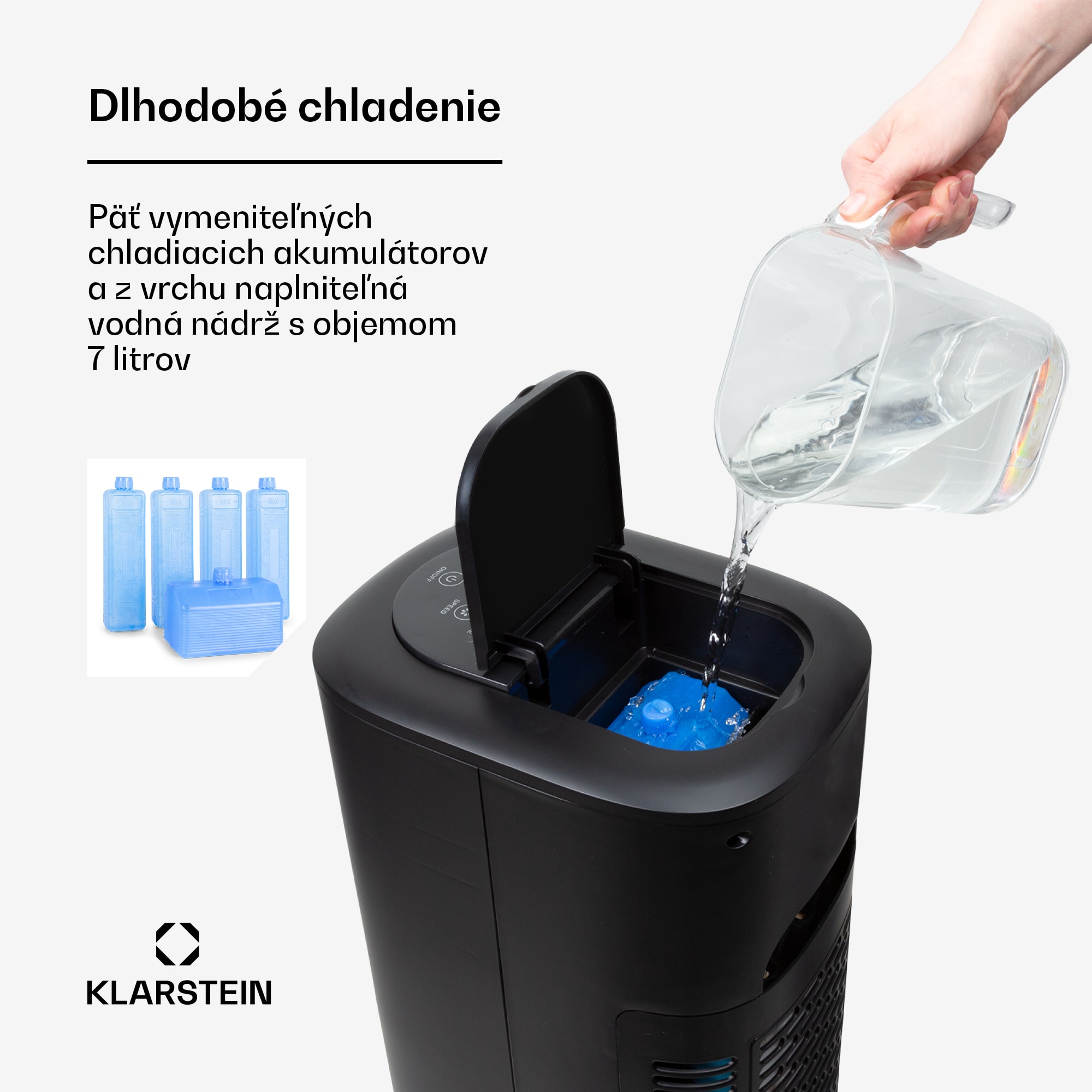 Klarstein Polar Tower Smart, ochladzovač vzduchu, ventilátor, 85 W, 7 l, diaľkový ovládač, 5 x chladiaci box – Kúpiť
