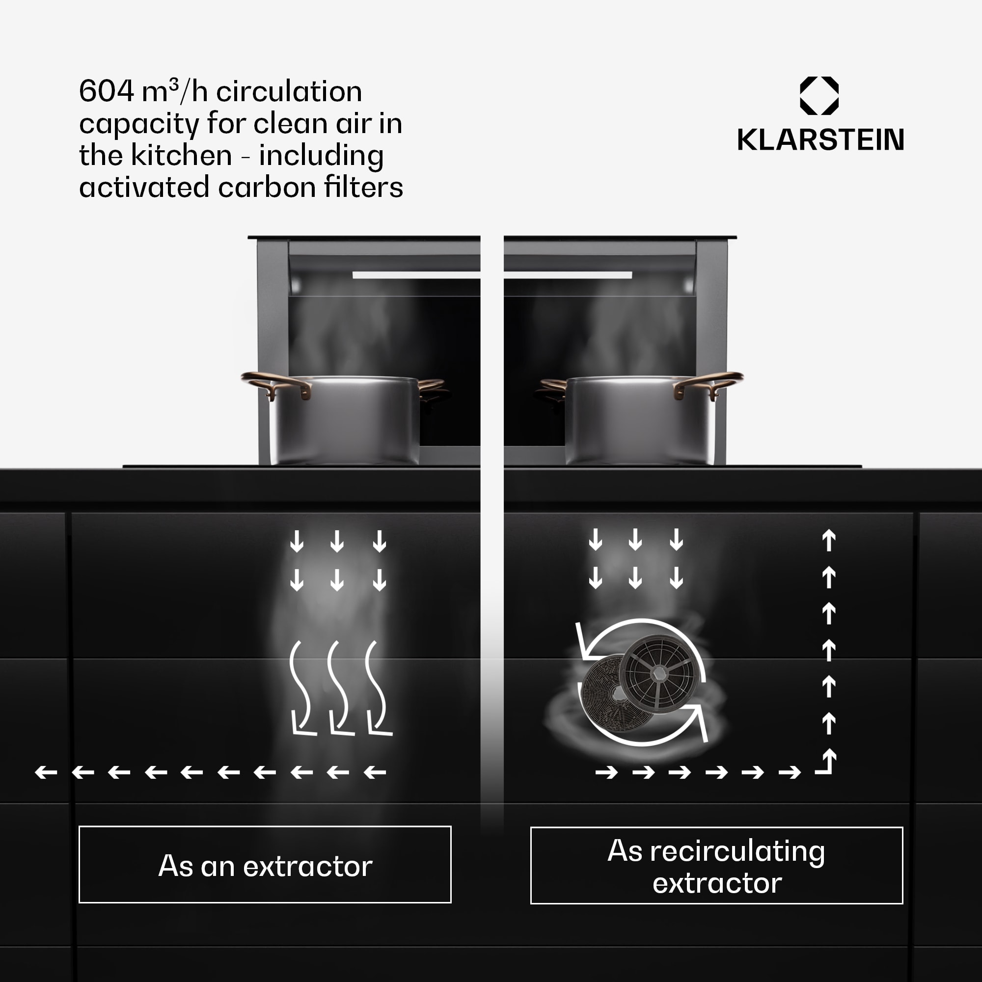Spádový Downdraft digestor Klarstein Royal Flush Eco Slim 60 je inovatívne riešenie pre vašu kuchyňu. Odsáva paru a pachy priamo pri zdroji s pôsobivým cirkulačným prietokom až 650 m³/h. Po skončení prevádzky sa elegantne schová do pracovnej dosky a šetrí tak cenný priestor. Tento digestor ponúka vysoký výkon pri nízkom prevádzkovom hluku. Vďaka mimoriadne štíhlemu dizajnu sa hodí do takmer každej kuchyne a na takmer každú varnú dosku. Ponúka intuitívne ovládanie a štýlový dizajn z nehrdzavejúcej ocele. Objavte moderné pohodlie vo svojej kuchyni s downdraft digestorom od Klarstein.