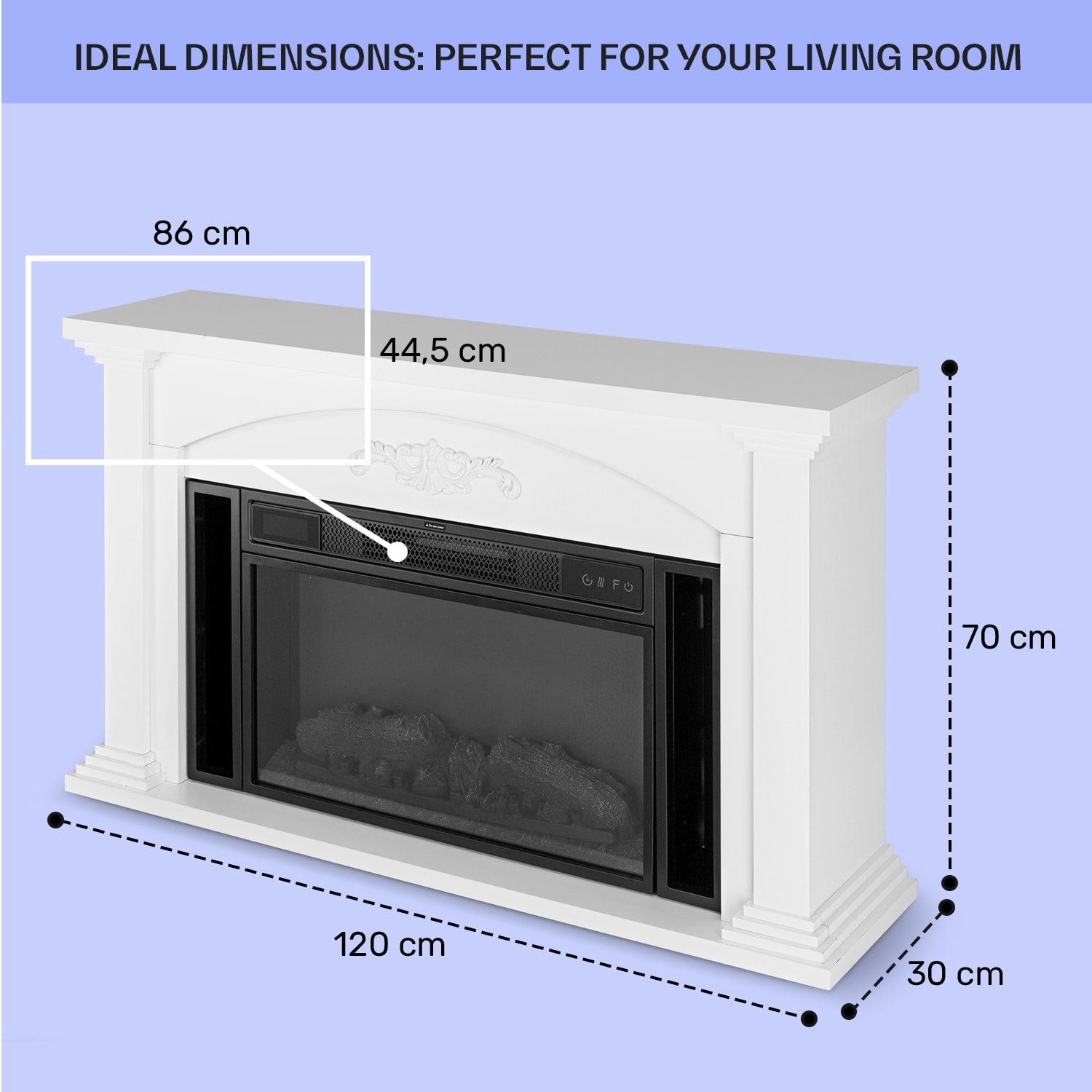 Horúci a fascinujúci ako vulkán: užívajte si romantickú hru plameňov s elektrickým krbom Saint Helens od Klarstein a to úplne bez skutočného ohňa, dymu a sadzí. Fascinujúcu ilúziu krbového ohňa z LED svetiel môžete nastaviť na 4 rôzne úrovne jasu a voliteľne zapnúť funkciu vykurovania s výkonom 950 alebo 1900 wattov. Všetko sa dá ľahko urobiť pomocou diaľkového ovládania alebo automaticky vďaka integrovanej funkcii časovača a programovateľnému týždennému časovaču. S elektrickým krbom Klarstein Saint Helens sa do vašej obývačky presťahuje antický šarm s romantickou tvárou: zažite útulnú atmosféru ako pri skutočnom, praskajúcom krbovom ohni. Tento výrobok je vhodný len do dobre izolovaných miestností!