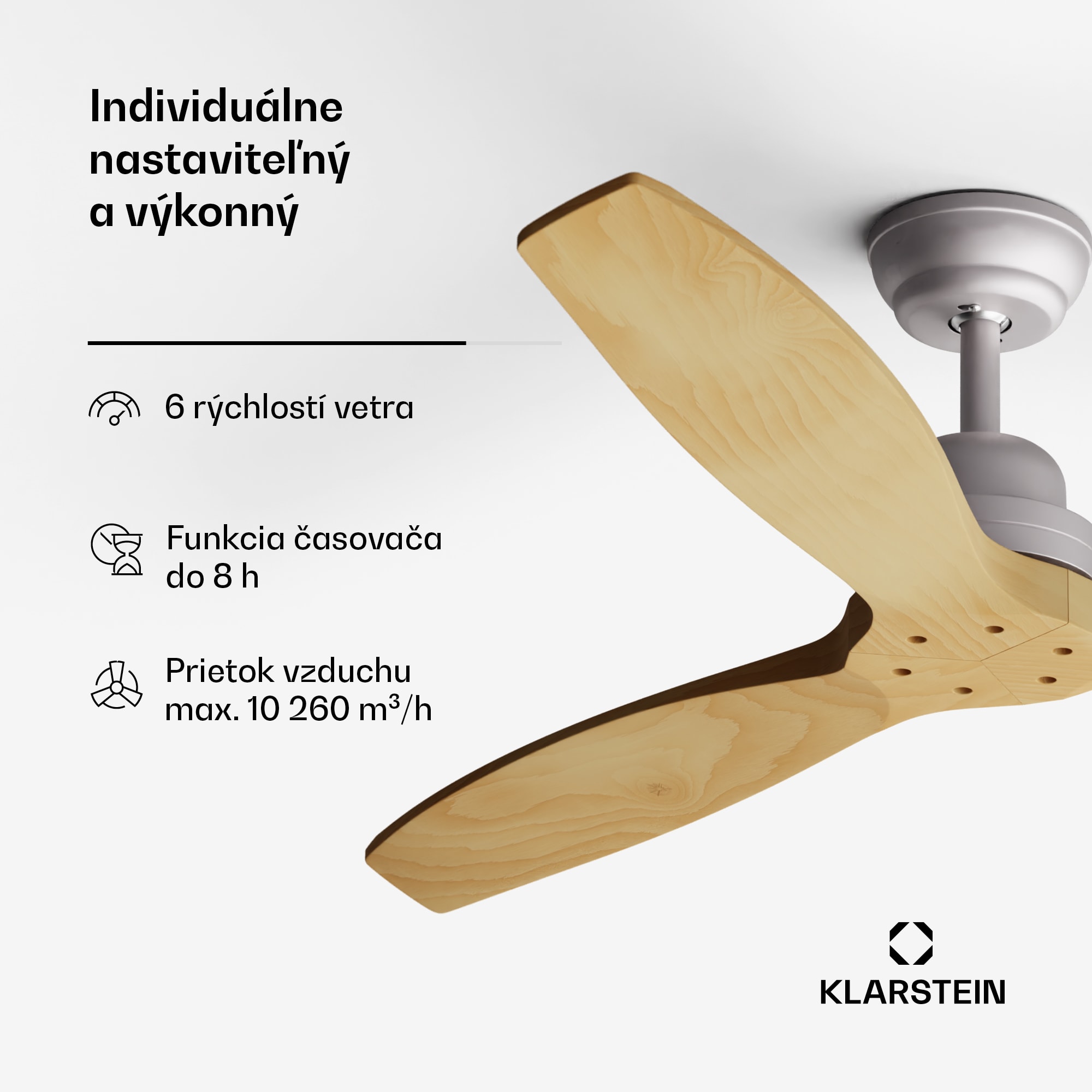 Zažite maximálny komfort a moderný dizajn so stropným smart ventilátorom Klarstein Santa Elena. Jednosmerný motor s nízkohlučným medeným guľôčkovým ložiskom umožňuje presné a tiché ovládanie, vďaka čomu je o pôsobivých 80 % energeticky efektívnejší ako bežné stropné ventilátory.Ventilátor so šiestimi úrovňami rýchlosti ponúka všestranný výber prúdenia vzduchu, ktorý možno prispôsobiť individuálnym potrebám. Jeho ultraľahké lopatky z pravého dreva v kombinácii s jednosmerným motorom zaručujú takmer nehlučnú prevádzku a uvoľnenú atmosféru.Vďaka inteligentným funkciám, ako je ovládanie cez aplikáciu Smart APP, diaľkové ovládanie alebo hlasové ovládanie, možno ventilátor ovládať odkiaľkoľvek v dome. Obojsmerná prevádzka umožňuje používanie v letnom a zimnom režime, čím sa šetria náklady na energiu počas celého roka. V lete ventilátor prenáša chladný vzduch smerom nahor a zabezpečuje príjemný chládok, zatiaľ čo v zime rovnomerne rozvádza teplý vzduch smerom nadol.Jednoduchá inštalácia pomocou dodaných spúšťacích tyčí 15 cm/25 cm umožňuje flexibilné umiestnenie ventilátora v miestnostiach s rôznou výškou stropu. Stropný smart ventilátor Klarstein Santa Elena sa dodáva spolu s diaľkovým ovládačom a je dokonalým doplnkom do každej domácnosti, ktorá oceňuje moderný komfort a atraktívny dizajn.