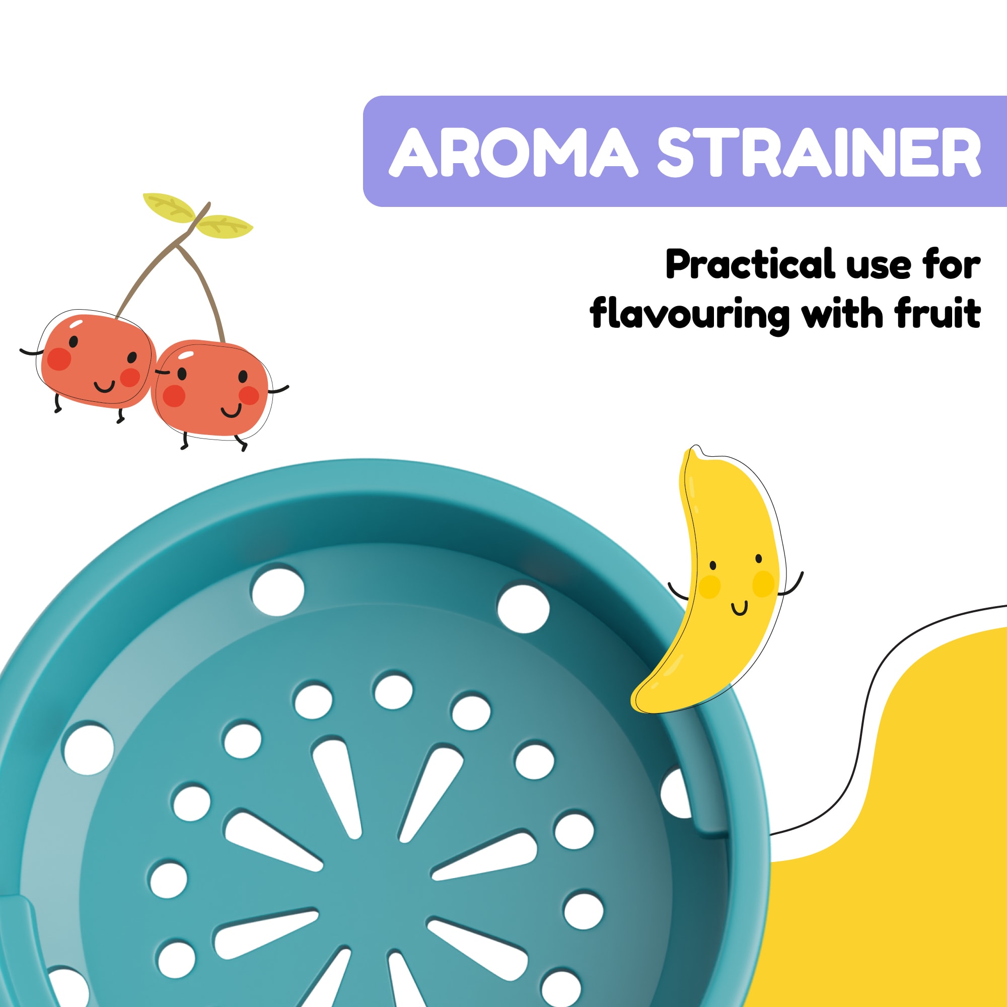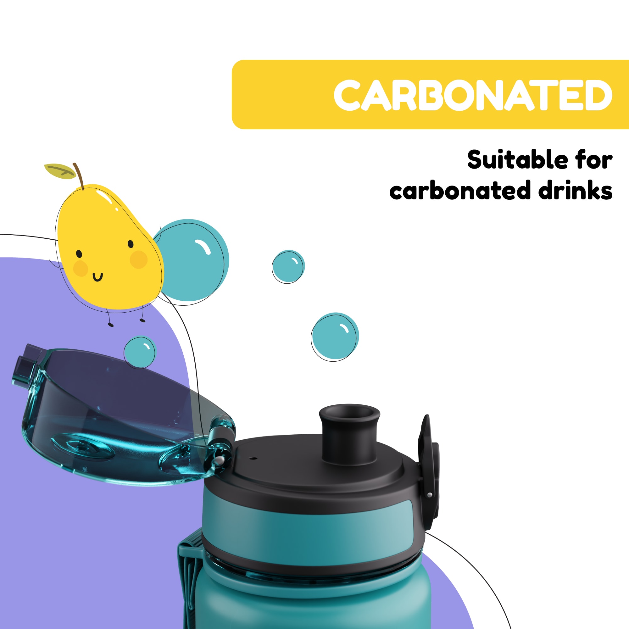 Fľaša na vodu pre deti Klarstein schmatzfatz je ideálnym spoločníkom na každý deň. Či už ste malý alebo veľký: vždy máte k dispozícii svoj obľúbený nápoj. A pritom vždy cestujete naľahko. Vďaka plastovému materiálu nemá fľaša na pitie takmer žiadnu hmotnosť navyše, hoci pojme pol litra tekutiny. Či už v školskej taške, batohu alebo dokonca v držiaku na bicykli: nič nevyteká, pretože táto komfortná fľaša na pitie má 100% nepriepustný uzáver.Prednosťou fľaše na pitie Klarstein schmatzfatz je jej športový dizajn. Zažijete jedinečný komfort pitia, pretože uzáver na 1 klik vám umožní otvoriť fľašu len jednou rukou. Na bočnej strane sa nachádza aj rukoväť na prenášanie, ktorú si môžete napríklad pri športe jednoducho obopnúť okolo zápästia. Takto máte dôležité tekutiny okamžite po ruke.Táto fľaša na vodu pre deti je vyrobená z Tritanu bez obsahu BPA a je ideálna ako fľaša na vodu, pretože materiál neovplyvňuje chuť nápoja a je absolútne neškodný pre vás alebo vaše deti. Chytrý doplnok: ovocný nástavec umožňuje osládiť vodu lahodným ovocím. Dužina zostáva pri pití vo fľaši, takže sa vo vode vytvára jemná aróma.Či už v škole, škôlke, pri športe alebo na výletoch: fľaša na pitie Klarstein schmatzfatz vám ponúka mnoho výhod vo všetkých každodenných situáciách. Presvedčí vás svojím športovým dizajnom vo výraznej farbe s roztomilým logom.