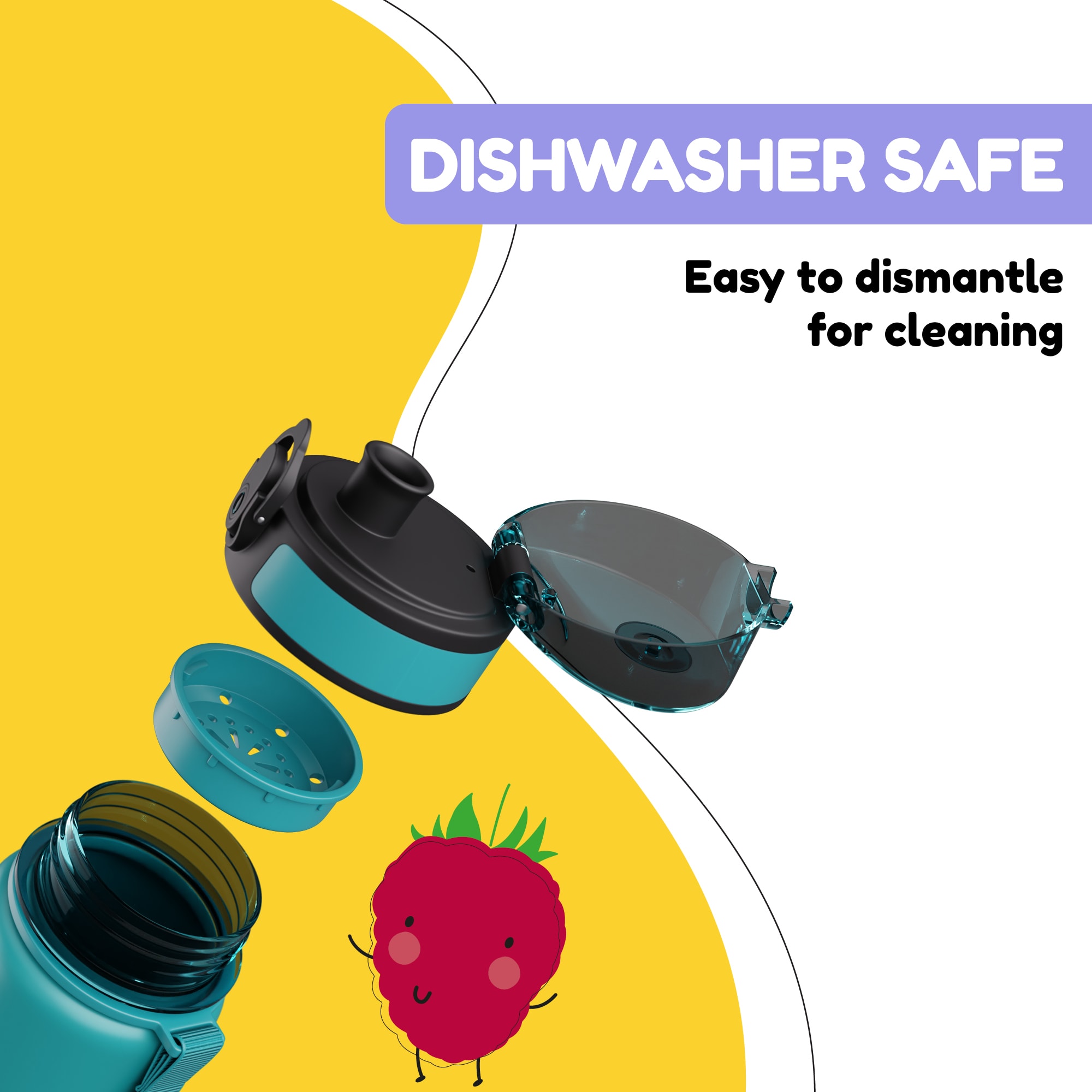 Fľaša na vodu pre deti Klarstein schmatzfatz je ideálnym spoločníkom na každý deň. Či už ste malý alebo veľký: vždy máte k dispozícii svoj obľúbený nápoj. A pritom vždy cestujete naľahko. Vďaka plastovému materiálu nemá fľaša na pitie takmer žiadnu hmotnosť navyše, hoci pojme pol litra tekutiny. Či už v školskej taške, batohu alebo dokonca v držiaku na bicykli: nič nevyteká, pretože táto komfortná fľaša na pitie má 100% nepriepustný uzáver.Prednosťou fľaše na pitie Klarstein schmatzfatz je jej športový dizajn. Zažijete jedinečný komfort pitia, pretože uzáver na 1 klik vám umožní otvoriť fľašu len jednou rukou. Na bočnej strane sa nachádza aj rukoväť na prenášanie, ktorú si môžete napríklad pri športe jednoducho obopnúť okolo zápästia. Takto máte dôležité tekutiny okamžite po ruke.Táto fľaša na vodu pre deti je vyrobená z Tritanu bez obsahu BPA a je ideálna ako fľaša na vodu, pretože materiál neovplyvňuje chuť nápoja a je absolútne neškodný pre vás alebo vaše deti. Chytrý doplnok: ovocný nástavec umožňuje osládiť vodu lahodným ovocím. Dužina zostáva pri pití vo fľaši, takže sa vo vode vytvára jemná aróma.Či už v škole, škôlke, pri športe alebo na výletoch: fľaša na pitie Klarstein schmatzfatz vám ponúka mnoho výhod vo všetkých každodenných situáciách. Presvedčí vás svojím športovým dizajnom vo výraznej farbe s roztomilým logom.Hlavným rozdielom oproti produktu 10045971 je odlišné balenie.