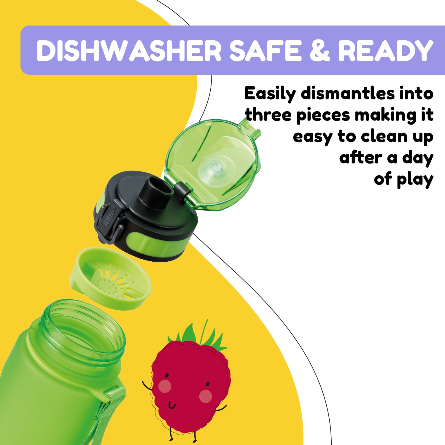 Fľaše Klarstein Schmatzfatz sú ideálnym spoločníkom pre všetky deti, ktoré sú neustále v pohybe. Či už idú do školy, na krúžky, výlety, športové tréningy alebo len tak von s kamarátmi, tieto fľaše im pomôžu dodržiavať pitný režim zábavným a praktickým spôsobom. Vďaka ľahkej konštrukcii sa pohodlne nosia, nezaberajú veľa miesta v taške a nezaťažia ani tie najmenšie ruky. Sú vybavené praktickou šnúrkou, ktorú si deti môžu jednoducho zavesiť na zápästie.Fľaše sú vyrobené z kvalitného plastu Tritan bez obsahu BPA, čo znamená, že nezapáchajú a nemenia chuť nápoja. Voda chutí sviežo a čisto – presne tak, ako má. Navyše, uzáver na jedno kliknutie umožňuje jednoduché otváranie jednou rukou, čo je perfektné aj pre menšie deti. A čo je najdôležitejšie – fľaše perfektne tesnia, takže v taške nič nevytečie. Bonusom je možnosť dochutiť vodu ovocím – vďaka špeciálnemu sitku zostanú kúsky ovocia vo vnútri, no ich aróma sa prirodzene uvoľní do nápoja. Klarstein Schmatzfatz ponúkajú nielen praktické riešenie, ale aj hravý dizajn a žiarivé farby, ktoré si deti rýchlo obľúbia. Skrátka – fľaše, ktoré sú také šikovné, že sa stanú každodennou súčasťou detského dňa.