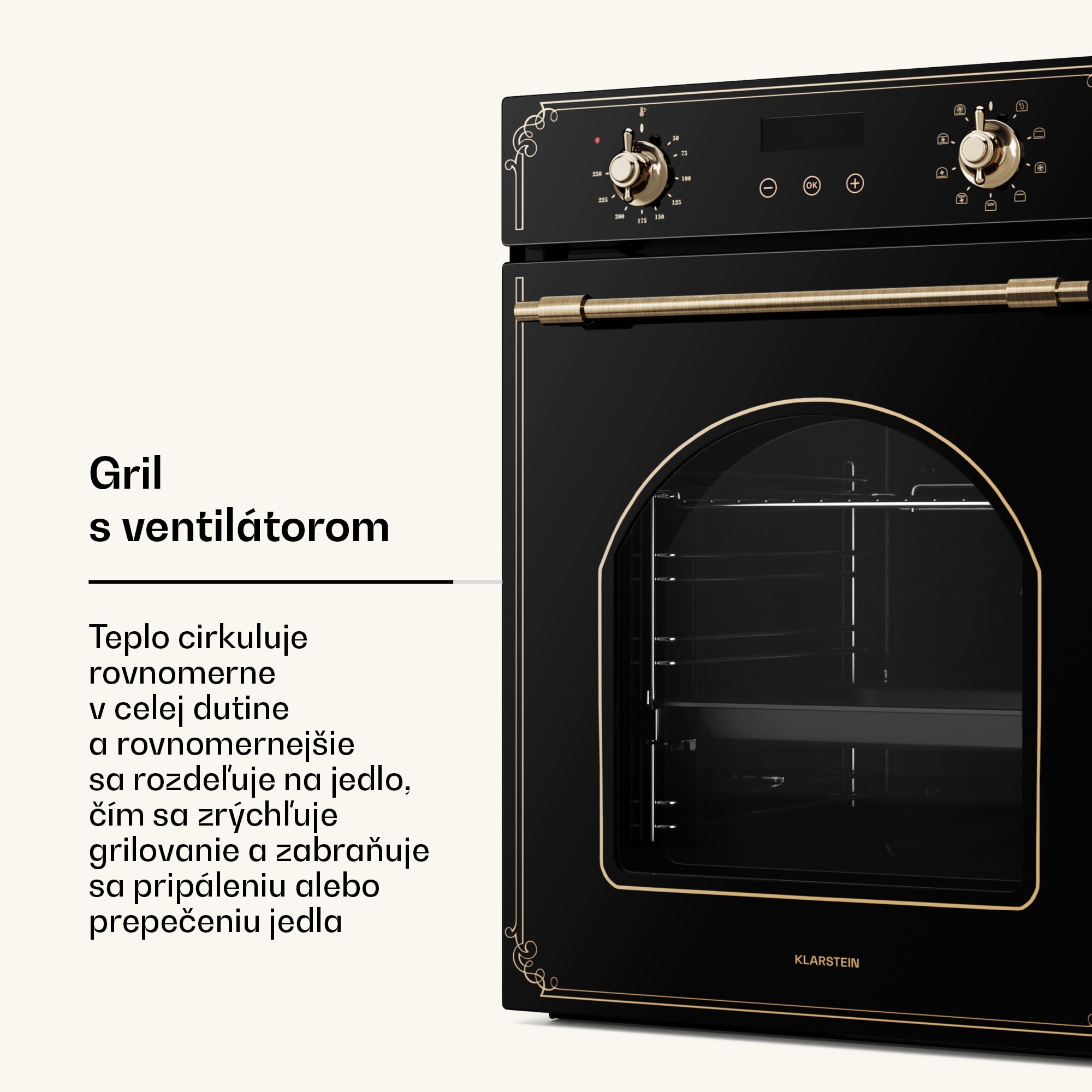 Sklokeramická varná doska a úzka rúra Klarstein Victoria kombinujú retro dizajn s vysokým výkonom a modernou technológiou. So svojimi zlatými, viktoriánsky inšpirovanými detailmi prinášajú do vašej kuchyne vintage nádych. Ako súčasť dizajnovej série Victoria stelesňuje táto varná doska a rúra nadčasové čaro, vďaka čomu sú prirodzenými stredobodmi každej kuchyne. Tri výkonné, vysokokvalitné varné zóny s celkovým výkonom 5000 W zaručujú plynulé varenie. Vďaka dotykovému posuvníku sa varná doska ľahko a intuitívne obsluhuje a jej bezpečnú prevádzku zaručuje detská poistka a ukazovateľ zvyškového tepla. Štíhla rúra bez kompromisov vo výkone a funkciách má 49-litrovú smaltovanú varnú komoru s pochrómovanými policami a vodidlami, ktoré zaručujú dlhodobú účinnosť. Čistenie je mimoriadne jednoduché vďaka odnímateľným skleneným dvierkam a funkcii čistenia parou. Digitálny časovač a 10 funkcií vrátane grilovania zhora, turbo grilovania a grilovania s ventilátorom zabezpečujú presnosť prípravy pokrmov. Chceli by ste si zariadiť celú kuchyňu s eleganciou inšpirovanou viktoriánskym štýlom? Objavte všetky naše spotrebiče Victoria a vytvorte si nadčasovú, harmonickú kuchyňu!
