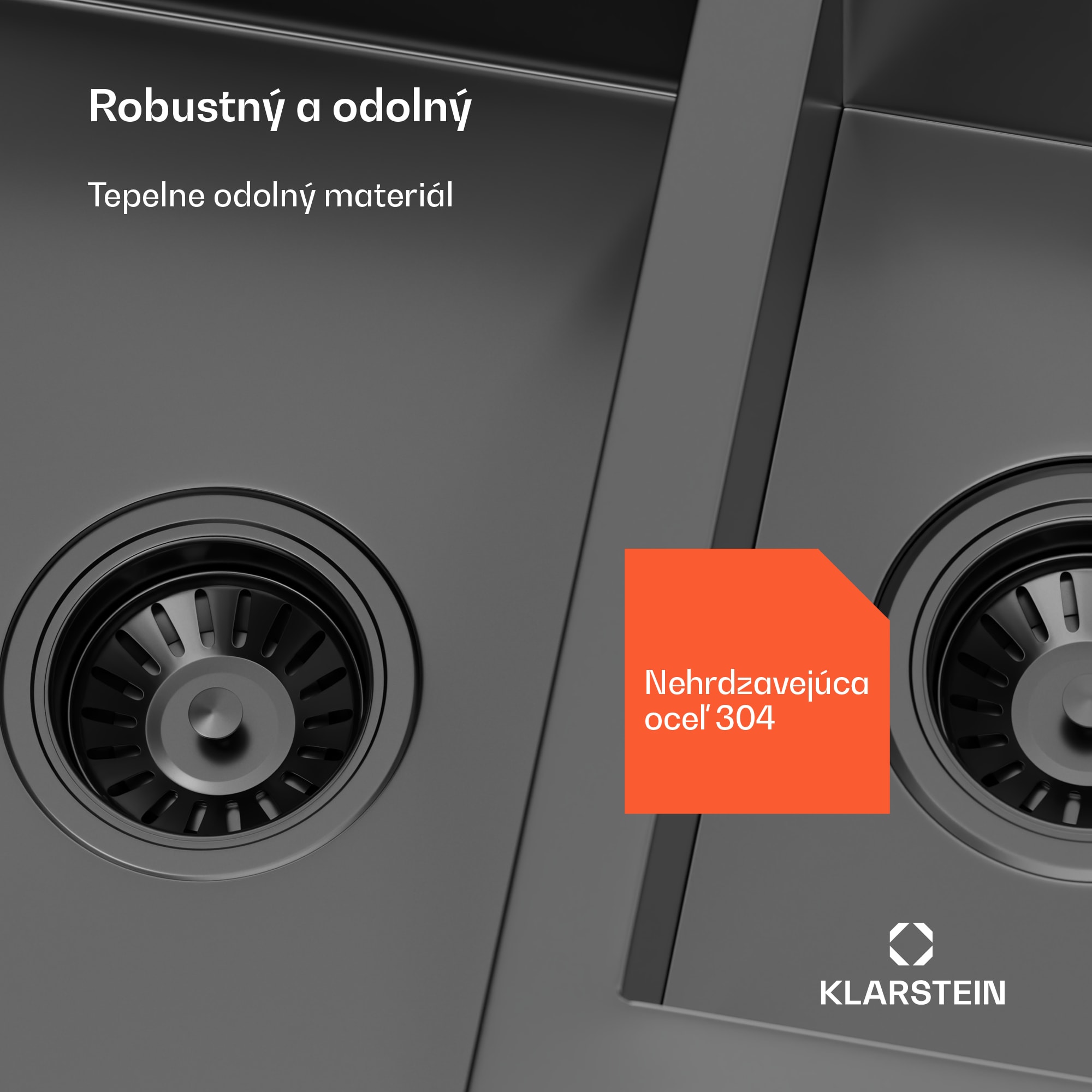Klarstein TitanSteel kuchynský drez s odkvapkávačom, 100 x 45 cm, 2 umývadlá, nehrdzavejúca oceľ, odolný voči teplu