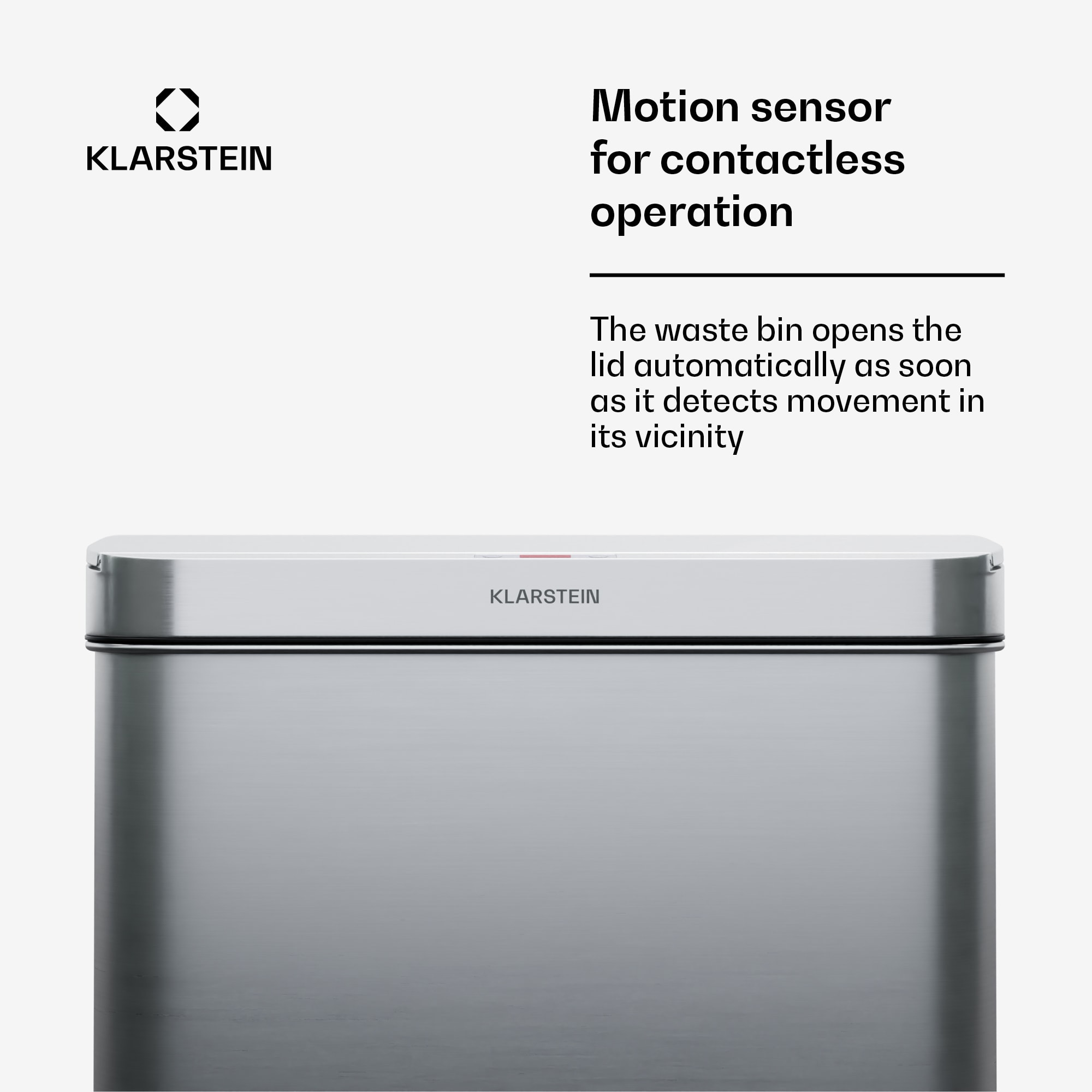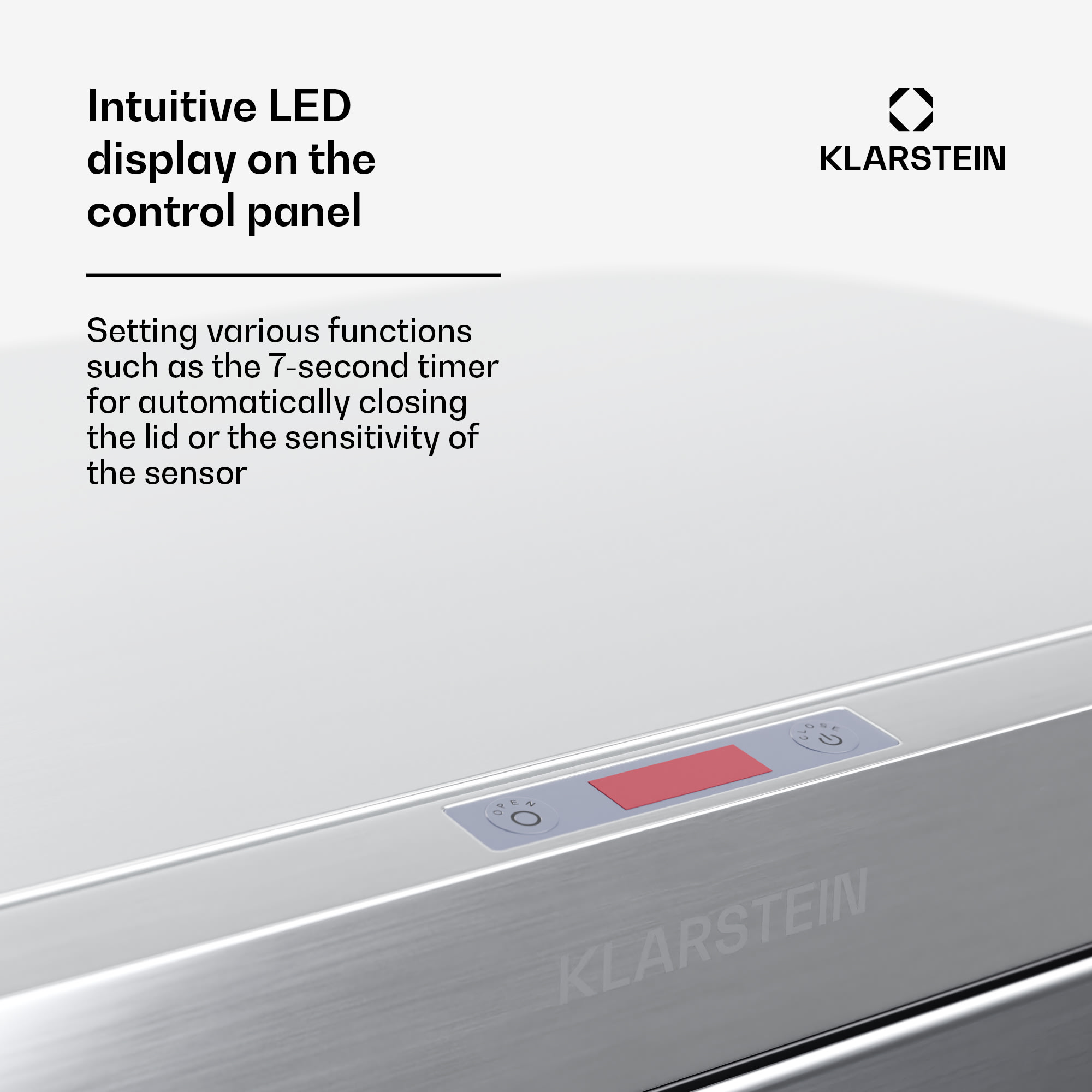 Senzorový odpadkový kôš Klarstein Touchless 60 l nie je len obyčajný odpadkový kôš, ale inteligentné riešenie na čistú a hygienickú likvidáciu odpadu. Vďaka elegantnému dizajnu a množstvu inovatívnych funkcií je obohatením pre vašu domácnosť, kanceláriu alebo verejné priestory.Tento kôš je vybavený snímačom pohybu a umožňuje bezdotykové ovládanie, čo je praktické najmä vtedy, keď máte plné ruky odpadu alebo jednoducho chcete dosiahnuť maximálnu hygienu. Vďaka veľkorysému objemu 60 litrov je senzorový odpadkový kôš Klarstein Touchless ideálny na každodenné použitie, či už v kuchyni, pracovni alebo vo verejných priestoroch s veľkým množstvom odpadu.Vysokokvalitný kryt z nehrdzavejúcej ocele nielenže dodáva estetický vzhľad, ale je aj mimoriadne robustný a odolný voči odtlačkom prstov, takže sa ľahko čistí a udržiava. Možnosť manuálneho aj automatického otvárania a zatvárania veka prostredníctvom intuitívneho ovládacieho panela ponúka flexibilné používanie podľa potreby.Vďaka systému zatvárania Soft-Close sa veko zatvára ticho a jemne bez nepríjemných zvukov.Senzorový odpadkový kôš Klarstein Touchless 60 l je nielen praktickým nástrojom na likvidáciu odpadu, ale aj štýlovým doplnkom, ktorý skrášli vaše prostredie a uľahčí vám každodenný život.