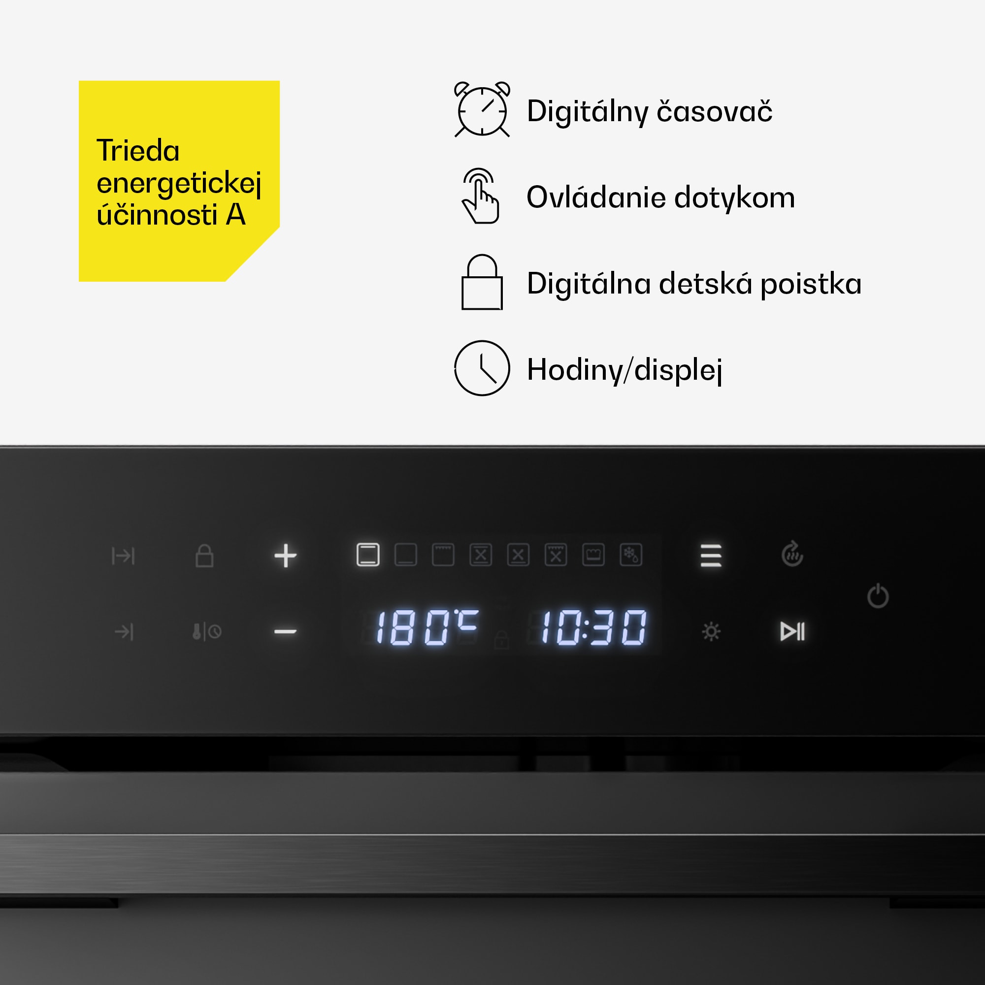 Vstavaná rúra Klarstein Velaire kombinuje minimalistický dizajn s vysokým výkonom a energeticky úspornou technológiou. Vďaka harmonickej kombinácii matných a lesklých povrchov sa bez problémov hodí do moderných priestorov. Ako súčasť dizajnovej série Velaire stelesňuje táto rúra minimalizmus, pokoj a čistú geometriu, vďaka čomu sa stáva prirodzeným stredobodom každej kuchyne.S objemom 49 litrov je vhodná predovšetkým pre jednočlenné a dvojčlenné domácnosti. Smaltovaný povrch interiéru uľahčuje čistenie. Univerzálny plech a rošt sú súčasťou balenia. Spolu s desiatimi rôznymi prevádzkovými režimami táto rúra umožňuje všestranné metódy varenia.Chceli by ste si zariadiť celú kuchyňu jednotným spôsobom s jednoduchou eleganciou? Objavte všetky naše spotrebiče Velaire a vytvorte si sofistikovaný a harmonický kuchynský zážitok!