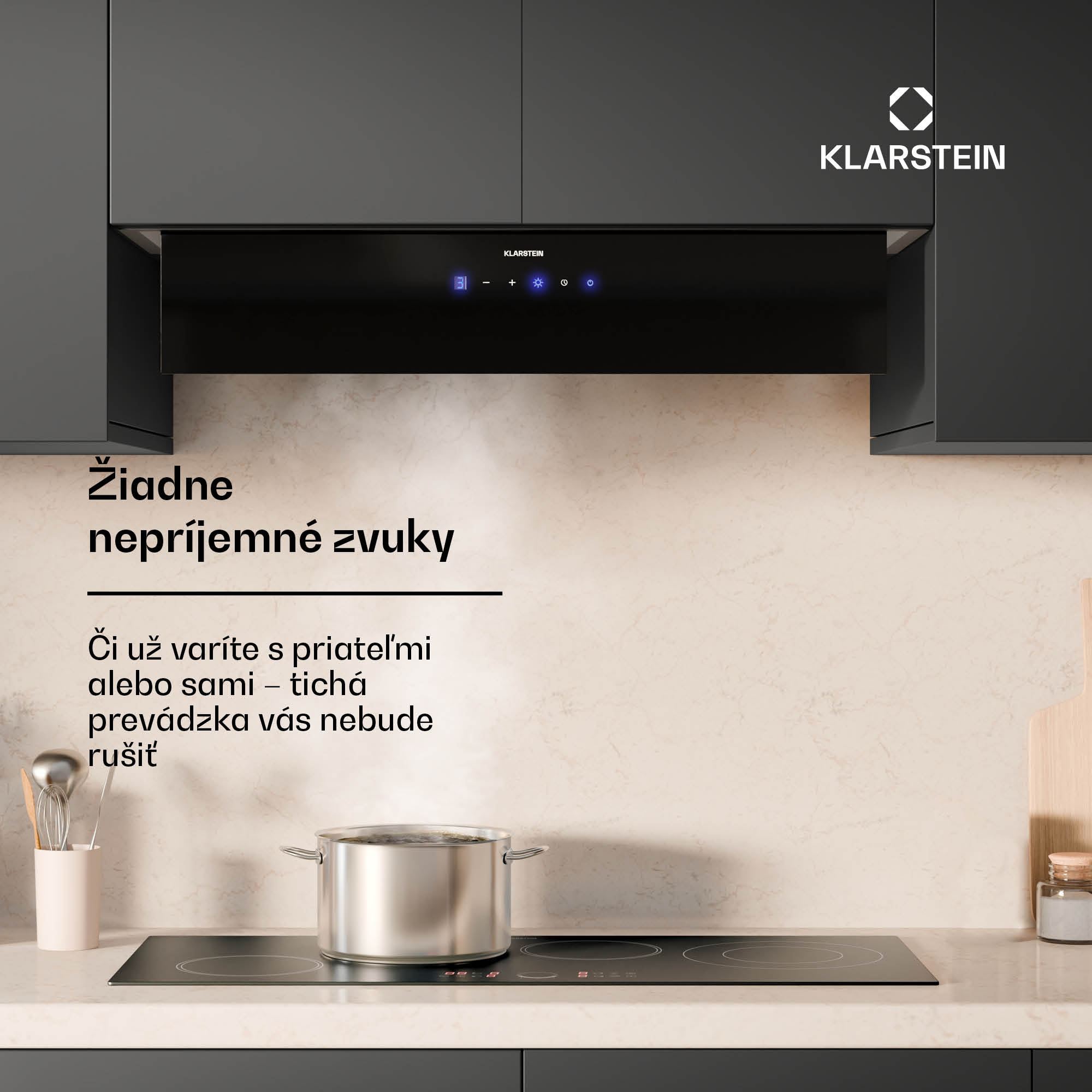 Digestor Klarstein Ventimate prináša do vašej kuchyne výkonné čistenie vzduchu a štýlový dizajn. Je ideálny do každej kuchyne a zaručuje čistý vzduch a energeticky úspornú prevádzku.Moderný digestor Ventimate od spoločnosti Klarstein zaujme novým dotykovým ovládacím panelom, ktorý sa nachádza na praktickom krídle, ktoré sa dá podľa potreby otvárať a zatvárať. S výkonným jednosmerným motorom dosahuje prietok vzduchu 390 m³/h s minimálnou hlučnosťou. Digestor ponúka tri stupne výkonu a môže sa používať v režime odsávania vzduchu aj v režime recirkulácie – dodávaný uhlíkový filter poskytuje dodatočnú flexibilitu. Vďaka triede energetickej účinnosti A+ čistí digestor Ventimate vzduch efektívne a úsporne.Digestor sa ľahko ovláda a čistí. Odnímateľná klapka a filtre vhodné do umývačky riadu značne uľahčujú údržbu.Vychutnajte si čistý vzduch a štýlový dizajn s digestorom Klarstein Ventimate – kúpte si ho teraz a vylepšite svoju kuchyňu!