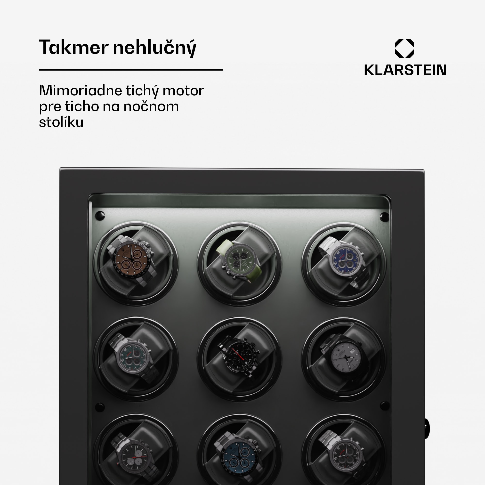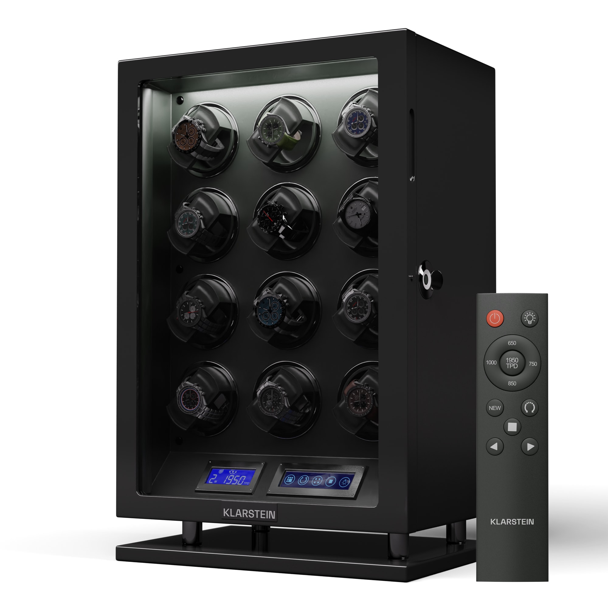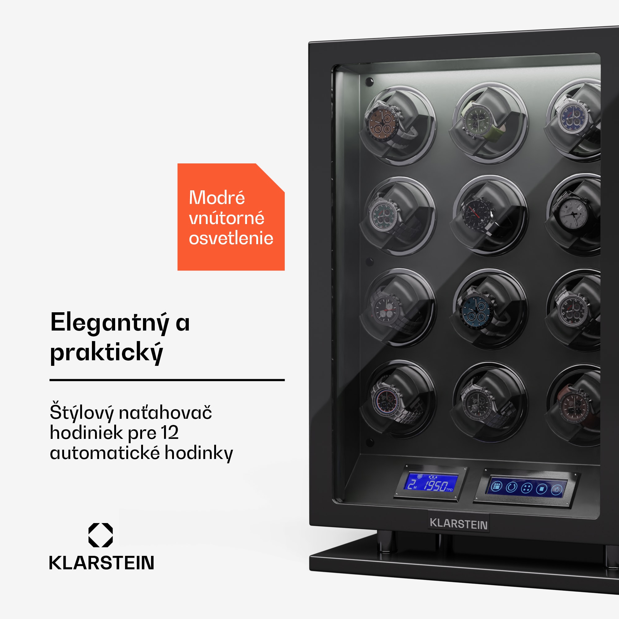 Naťahovač hodiniek a stojan na hodinky Klarstein Verdon 12 kombinuje bezpečné uloženie so štýlovým dizajnom a inovatívnou technológiou. Skriňa z robustnej MDF v kombinácii s elegantným vnútorným vybavením vytvára vkusnú kompozíciu luxusu a elegancie. Vysokolesklý klavírny povrch dodáva naťahovaču Verdon nielen nádherný lesk, ale zároveň z neho robí estetický stredobod každej miestnosti.Medzi špičkové funkcie patria uzamykateľné dvierka s akrylovým okienkom, integrované LED osvetlenie pre umeleckú prezentáciu hodín, tichý chod motora s hlučnosťou menej ako 5 dB a LCD dotykový displej s diaľkovým ovládaním pre maximálne jednoduché používanie. Naťahovač hodiniek ponúka priestor až pre 12 hodiniek a má flexibilné vankúše na hodinky rôznych veľkostí. Naťahovač hodiniek Klarstein Verdon 12 sa zameriava nielen na bezpečné uloženie, ale aj na štýlový vzhľad vašej zbierky. Zámok, ktorý sa otvára len pomocou odtlačku prsta, poskytuje dodatočnú ochranu.