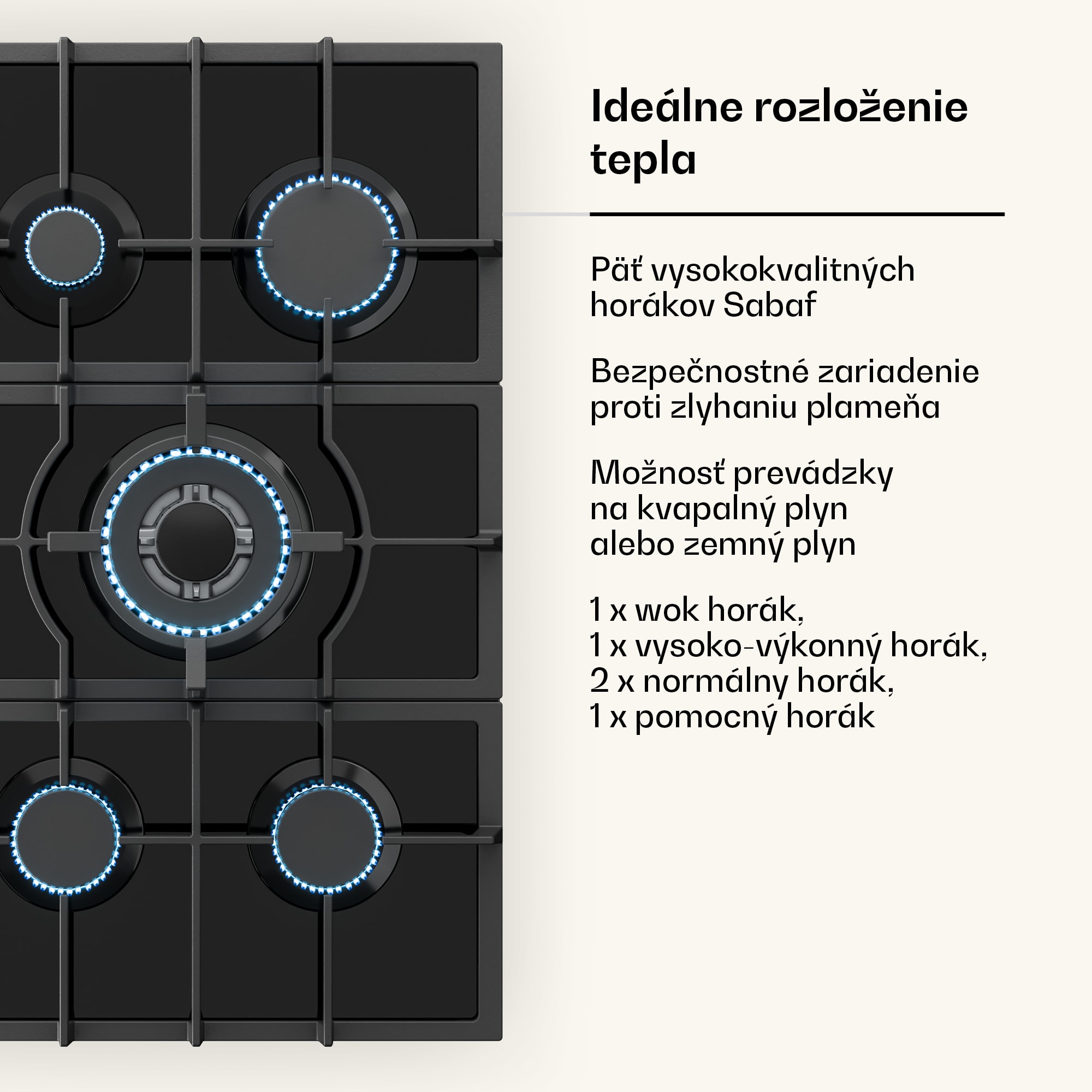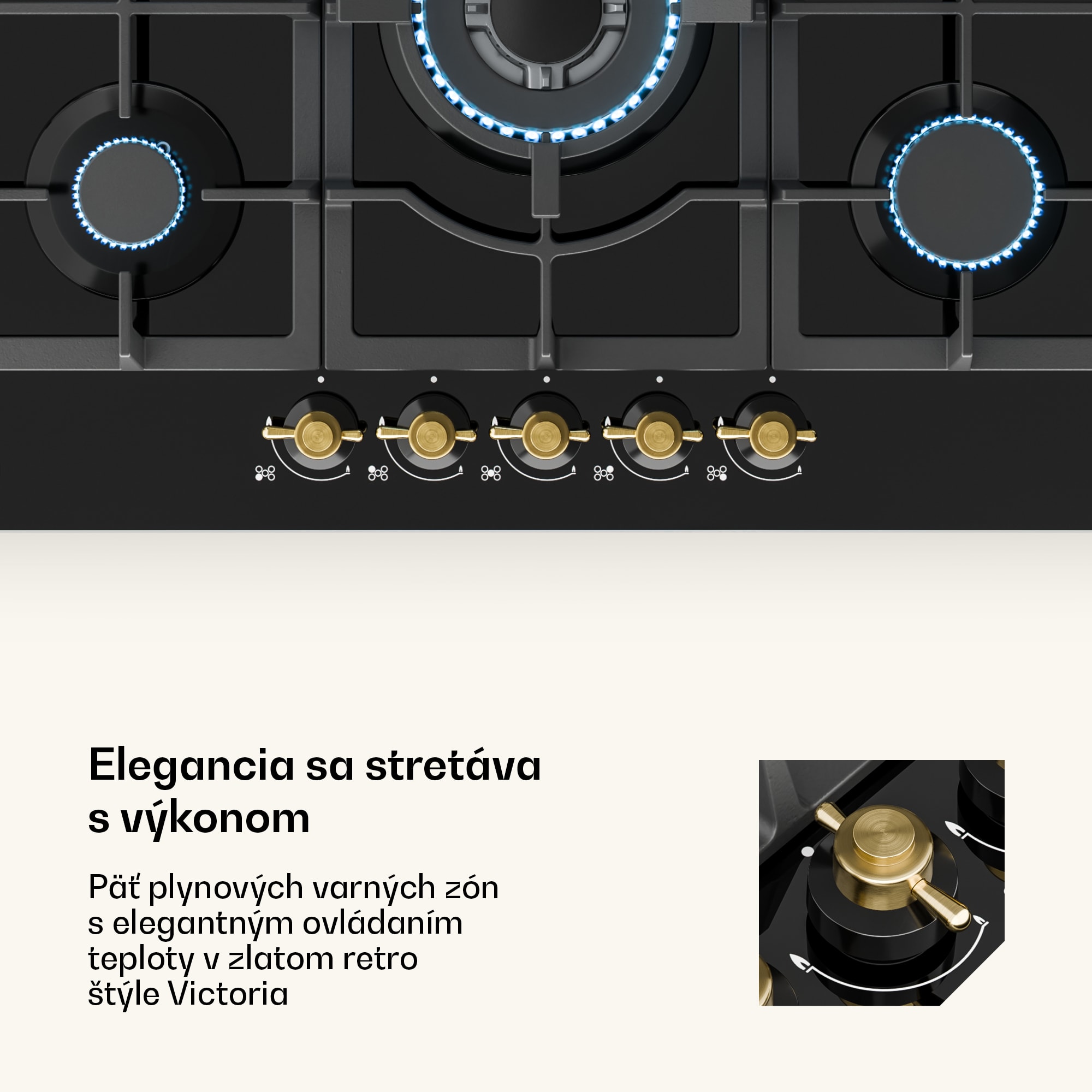 Klarstein Victoria 5, plynová varná doska, 5 Sabaf horákov, sklokeramika, retro vzhľad – Kúpiť