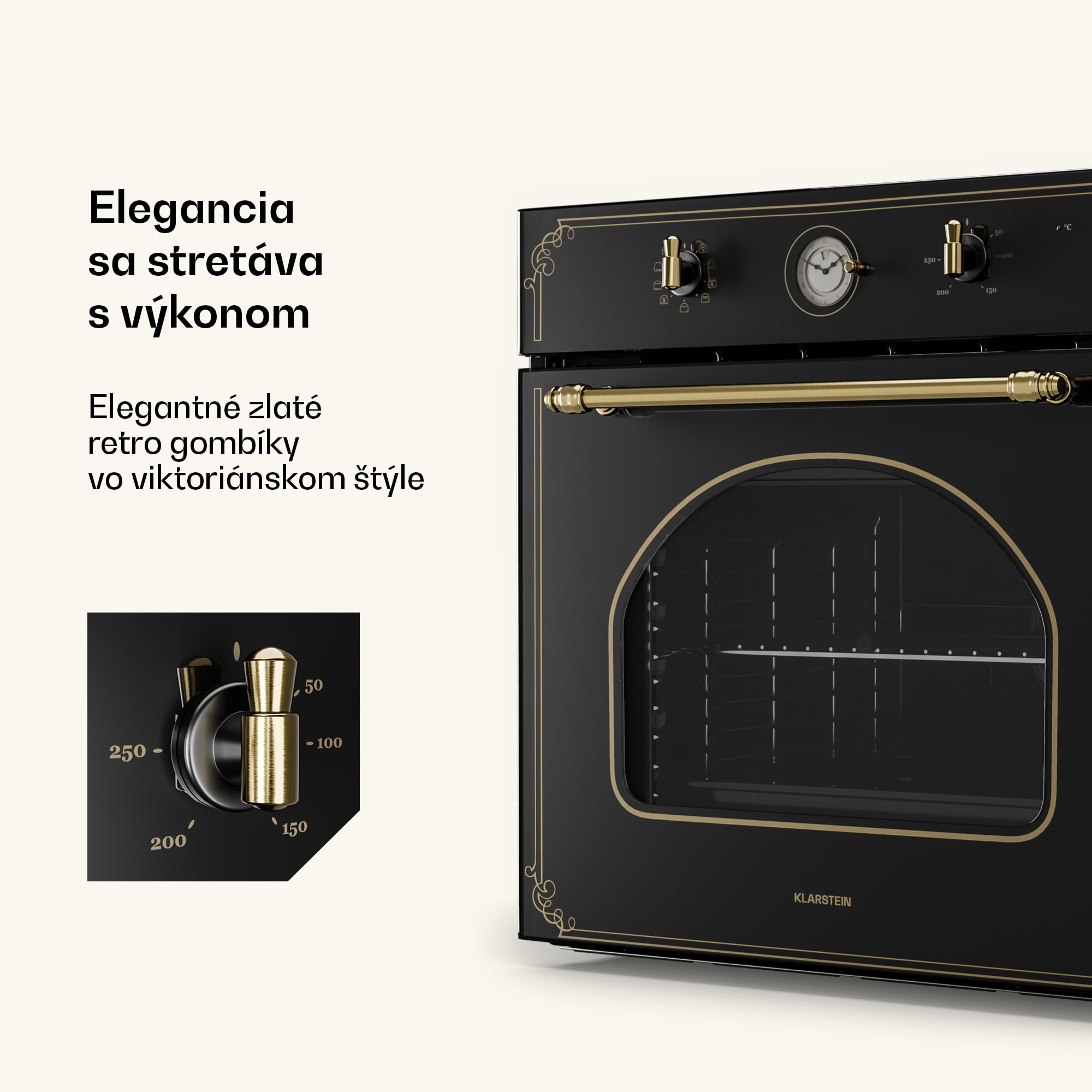 Popis produktu:Vneste do svojej kuchyne nádych luxusu s Klarstein Victoria sériou. Tento štýlový set z vstavaného rúry, plynového varného panela a digestora kombinuje eleganciu minulých čias s moderným výkonom a energetickou efektívnosťou.Vstavaná rúra: Klarstein Victoria 60 rúra presviedča 9 všestrannými funkciami, vrátane horného a dolného ohrevu, grilovania a cirkulácie vzduchu. Jej priestranný 70-litrový objem a energetická trieda A z nej robia ideálneho spoločníka pre všetky kulinárske a pekárske kreácie. Bronzové otočné ovládače a zakrivené okno jej dodávajú jedinečný retro vzhľad.Plynový varný panel: Klarstein Victoria 60 4-zónový plynový varný panel prináša výhody výkonného plynového sporáka, vybaveného horákmi Sabaf pre presné rozloženie tepla. Jednoduché zapálenie SnapJetIgnition umožňuje rýchle a bezpečné používanie, zatiaľ čo kvalitné keramické sklo zaisťuje elegantný vzhľad a jednoduché čistenie.Digestor: Klarstein Victoria 60 digestor spoľahlivo odstraňuje zápachy s tromi úrovňami výkonu a maximálnym prietokom vzduchu 644,5 m³/h. Praktické bočné lišty poskytujú dodatočný úložný priestor pre kuchynské náradie, zatiaľ čo dekoratívne retro prvky zabezpečujú dokonalý vintage vzhľad.S Klarstein Victoria sériou si do svojho domova prinesiete štýlovú estetiku a výkonné kuchynské spotrebiče. Ideálne pre tých, ktorí chcú spojiť klasický šarm s moderným komfortom! Užívajte si svoju novú kuchyňu!