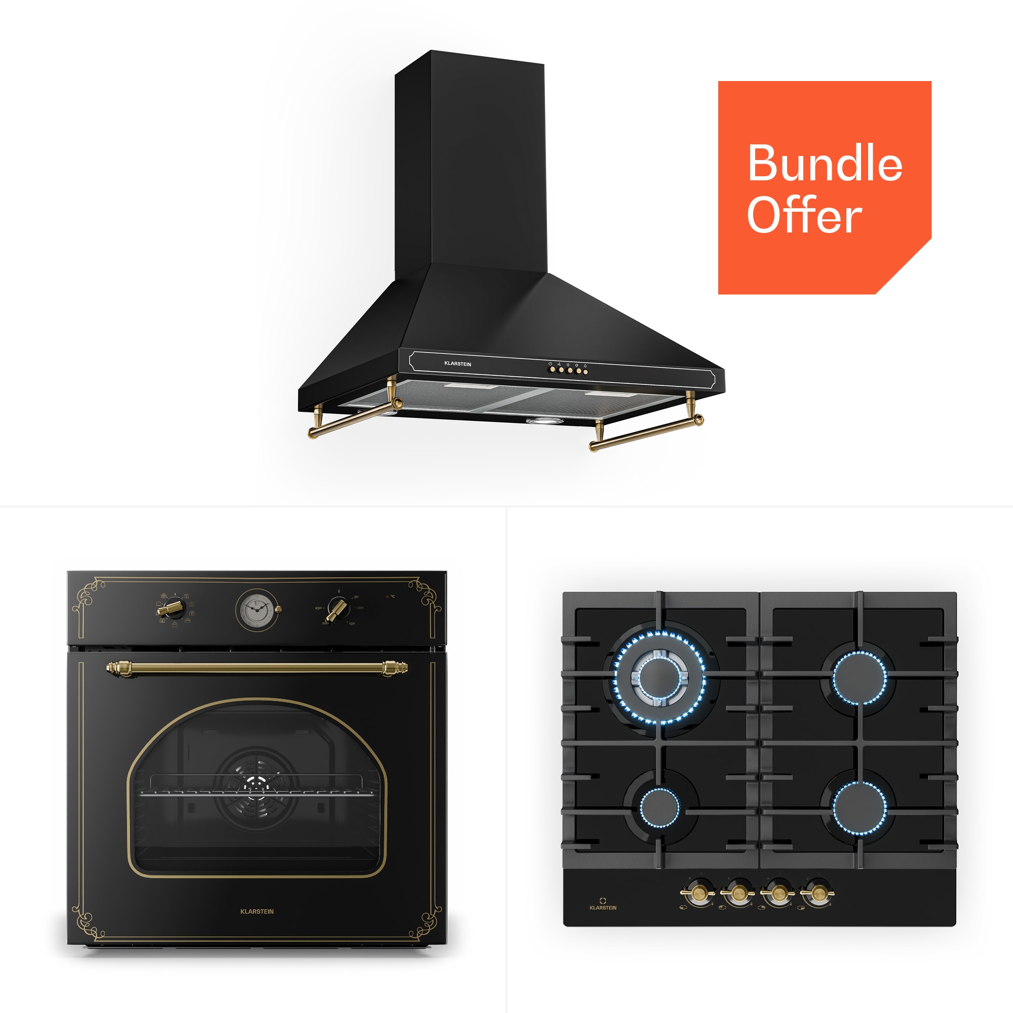 Klarstein Victoria 60 Triple Set plyn, Plynné varné dosky, Rúra, Digestor – Kúpiť