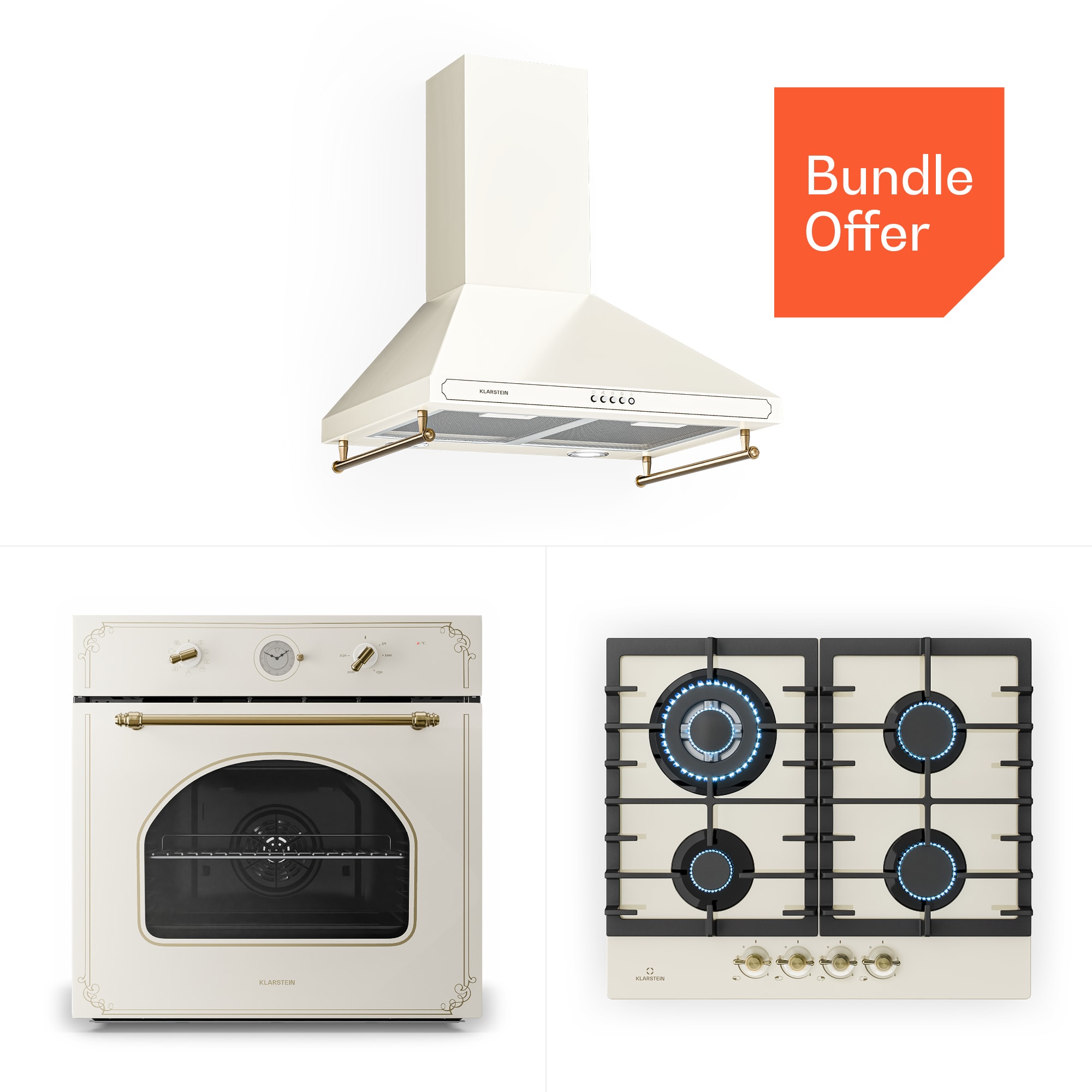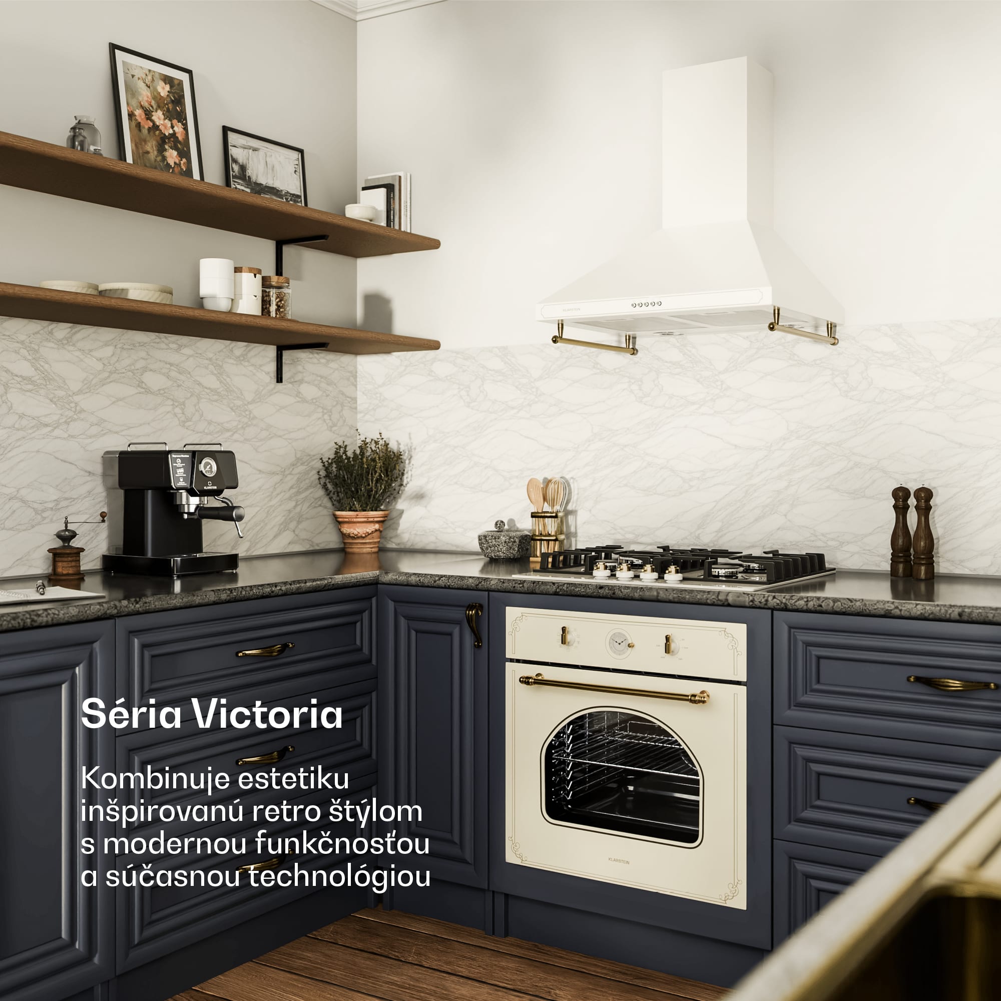 Popis produktu:Vneste do svojej kuchyne nádych luxusu s Klarstein Victoria sériou. Tento štýlový set z vstavaného rúry, plynového varného panela a digestora kombinuje eleganciu minulých čias s moderným výkonom a energetickou účinnosťou.Vstavaná rúra: Klarstein Victoria 60 rúra presviedča 9 rôznymi funkciami, vrátane horného a dolného ohrevu, grilovania a ventilátorového režimu. Jej priestranný 70-litrový objem a energetická trieda A z nej robia ideálneho spoločníka pre všetky kulinárske a pekárske výtvory. Bronzové otočné ovládače a zakrivené okno jej dodávajú jedinečný retro vzhľad.Plynový varný panel: Klarstein Victoria 60 4-zónový plynový varný panel prináša výhody výkonného plynového sporáka, vybaveného horákmi Sabaf pre presné rozloženie tepla. Jednoduché zapálenie SnapJetIgnition umožňuje rýchle a bezpečné používanie, zatiaľ čo kvalitné keramické sklo zabezpečuje elegantný vzhľad a jednoduché čistenie.Digestor: Klarstein Victoria 60 digestor spoľahlivo odstraňuje zápachy s tromi výkonovými stupňami a maximálnym prietokom vzduchu 644,5 m³/h. Praktické bočné lišty poskytujú ďalší úložný priestor pre kuchynské náčinie, zatiaľ čo dekoratívne retro prvky zabezpečujú dokonalý vintage vzhľad.So sériou Klarstein Victoria si do svojho domova prinesiete štýlovú estetiku a výkonné kuchynské spotrebiče. Ideálne pre všetkých, ktorí chcú spojiť klasický pôvab s moderným komfortom!