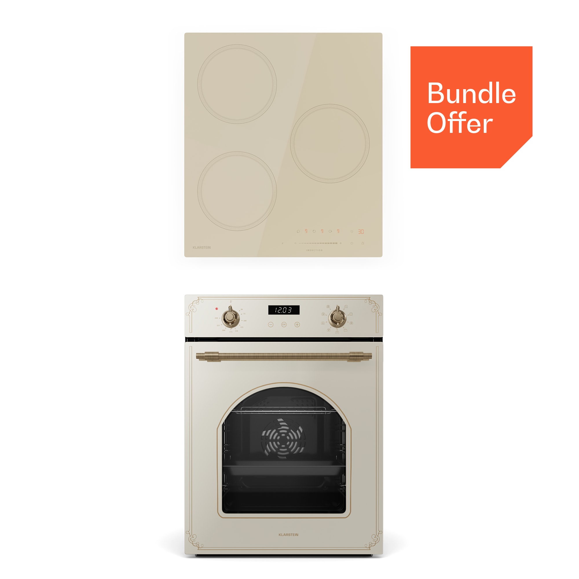 Klarstein Victoria indukčná varná doska a vstavaná rúra spájajú dizajn inšpirovaný retro štýlmi s výkonným výkonom a modernou technológiou. So svojimi zlatými, viktoriánsky inšpirovanými detailmi prinášajú do vašej kuchyne istý vintage nádych. Ako súčasť dizajnovej série Victoria tieto varná doska a rúra stelesňujú nadčasové kúzlo a sú tak prirodzeným srdcom každej kuchyne. Klarstein Victoria indukčná varná doska ponúka užívateľsky prívetivú Slider Touch Control, ktorá umožňuje presné ovládanie varných zón. Každá z 3 varných zón je vybavená výkonným Boosterom, ktorý výrazne skracuje čas varenia. Indikátor zvyškového tepla upozorňuje na horúci povrch a zabezpečuje dodatočnú bezpečnosť po varení, pričom časovač umožňuje individuálne nastavenie doby varenia pre každé jedlo. Bez kompromisov vo výkone a vybavení disponuje štíhla rúra 49-litrovou smaltovanou vnútornou časťou s chrómovanými roštami a vodičmi, ktoré zaručujú dlhodobú efektivitu. Čistenie je mimoriadne jednoduché vďaka vyberateľným skleneným dverám a funkcii parného čistenia. Digitálny časovač a 10 funkcií, vrátane horného grilu, cirkulačného pečenia a grilovania s cirkuláciou vzduchu, zabezpečujú presnosť pri príprave vašich jedál. Chcete zariadiť celú kuchyňu jednotne s viktoriánsky inšpirovanou eleganciou? Objavte teraz všetky naše Victoria spotrebiče a vytvorte nadčasovo harmonický kuchynský zážitok!