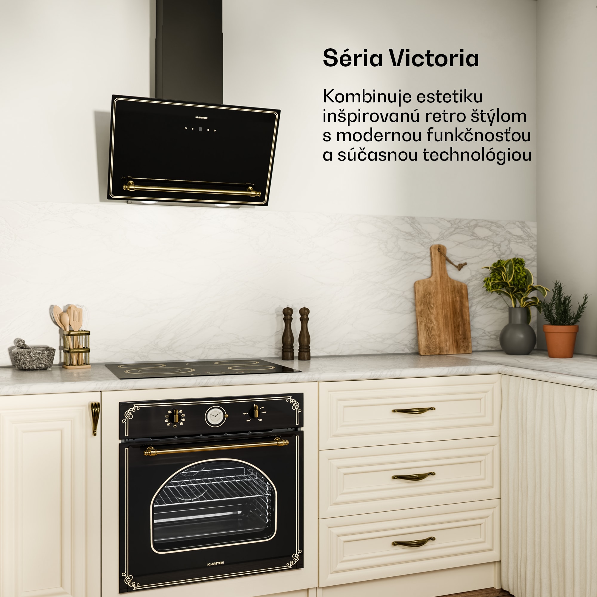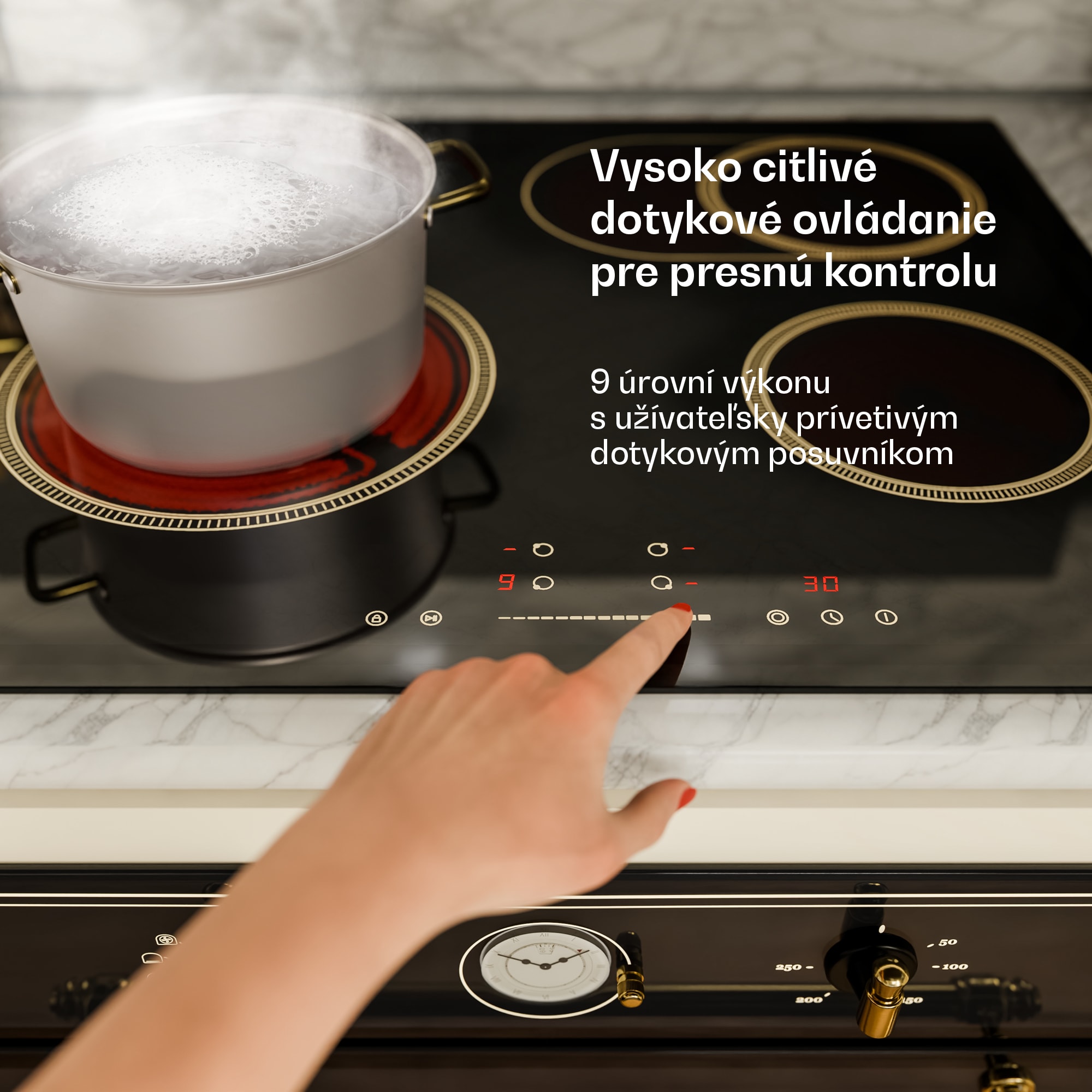 Sklokeramická varná doska Klarstein Victoria kombinuje dizajn inšpirovaný retro štýlom s vysokým výkonom a modernou technológiou. Vďaka zlatým detailom inšpirovaným viktoriánskym štýlom vnesie do vašej kuchyne istú vintage atmosféru. Táto varná doska, ktorá je súčasťou dizajnového radu Victoria, stelesňuje nadčasový šarm a je prirodzeným stredobodom každej kuchyne. Štyri výkonné, vysokokvalitné varné zóny s celkovým výkonom 6600 W zaručujú plynulé varenie. Vďaka dotykovému posuvníku sa varná doska ľahko a intuitívne obsluhuje a jej bezpečné používanie zaručuje detská poistka a ukazovateľ zvyškového tepla. Chceli by ste si zariadiť celú kuchyňu s eleganciou inšpirovanou viktoriánskym štýlom? Objavte všetky naše spotrebiče Victoria a vytvorte si nadčasovú, harmonickú kuchyňu!