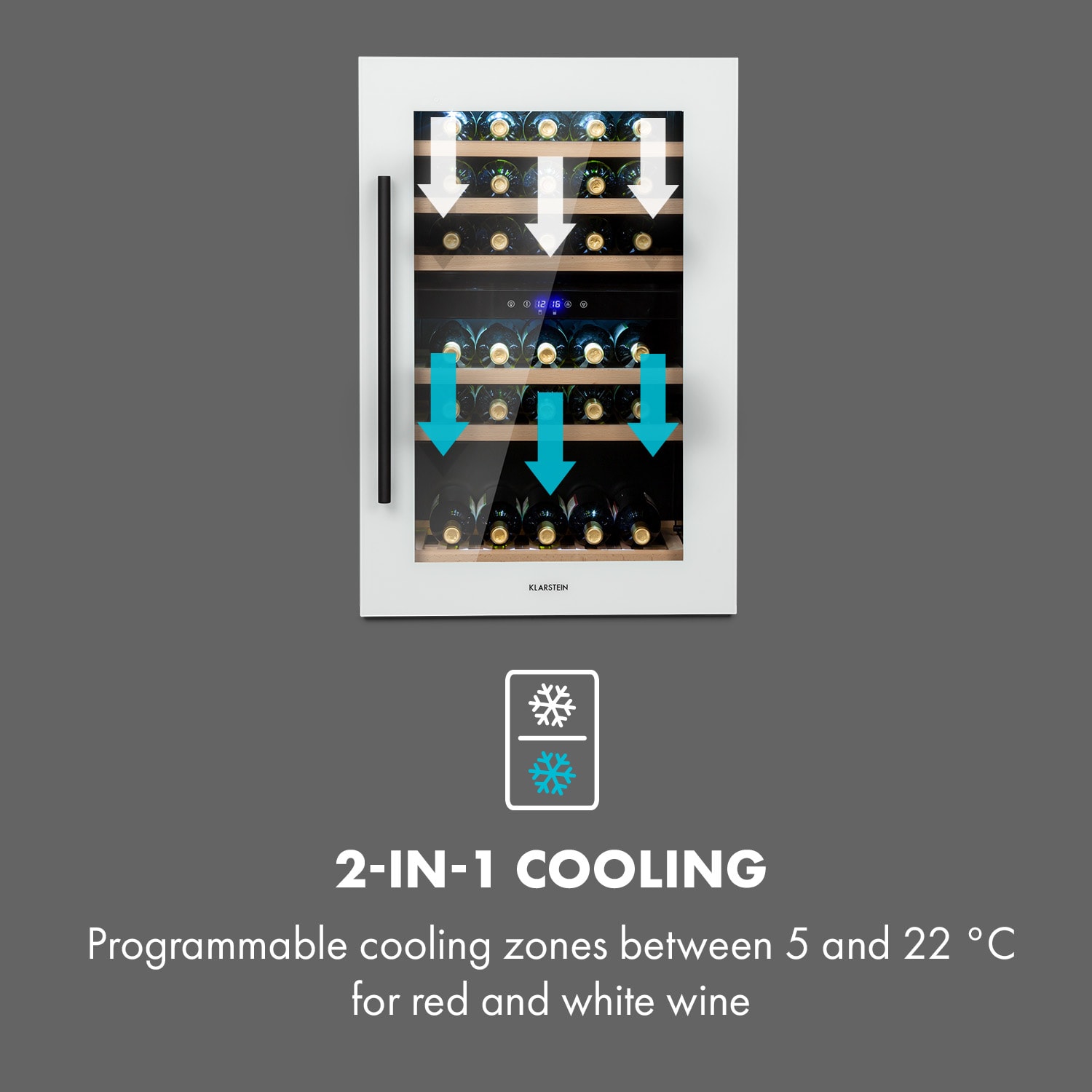 Dvojzónová Vinotéka Vinsider 41D Built-In Duo od spoločnosti Klarstein: s veľkým objemom, 2 teplotnými zónami a optimálnym skladovaním pre ten najlepší pôžitok z pitia vína.Vinotéka Klarstein Vinsider 41D Built-In Duo s objemom 41 litrov poskytne každému vínu ideálne podmienky na zachovanie jeho optimálnej teploty pre konzumáciu a plnú arómu. Stačí otvoriť elegantné predné dvere s rámom v štýlovom QuartzCrystal vzhľade a umiestniť víno na jednu z 3 drevených políc. Potom treba vybrať požadovanú teplotu chladenia a vinotéka od spoločnosti Klarstein sa postará o ideálne podmienky pre víno. Víno bude nielen perfektne vychladené, ale tiež štýlovo uskladnené.Večer s rozlične temperovanými druhmi vína? Žiaden problém! Vďaka digitálnemu ovládaniu interiéru je možné vo vinotéke vytvoriť 2 rôzne teplotné zóny. Tak bude ideálne postarané o biele aj červené druhy vína – či už čoskoro v čase večere, alebo počas ďalších mesiacov. Víno bude počas uskladnenia chránené pred vibráciami alebo dopadom svetla.Vinotéka Vinsider 41D Built-In Duo od spoločnosti Klarstein nanovo interpretuje klasickú vínnu pivnicu: v pôsobivom elegantnom dizajne z ocele, skla a dreva. Vďaka prepínateľnému LED osvetleniu interiéru bude tvoje víno kedykoľvek decentne viditeľné. Vďaka svojim praktickým rozmerom je vinotéka ideálna na nekomplikovanú montáž do kuchynskej linky alebo pod skrinky v kuchynskej linke. Zmestí sa takmer do akejkoľvek medzery.Dokonale temperované víno na každú príležitosť: s Dvojzónovou vinotékou Klarstein Vinsider 41D Built-In Duo v štýlovej edícii Quartz Edition!