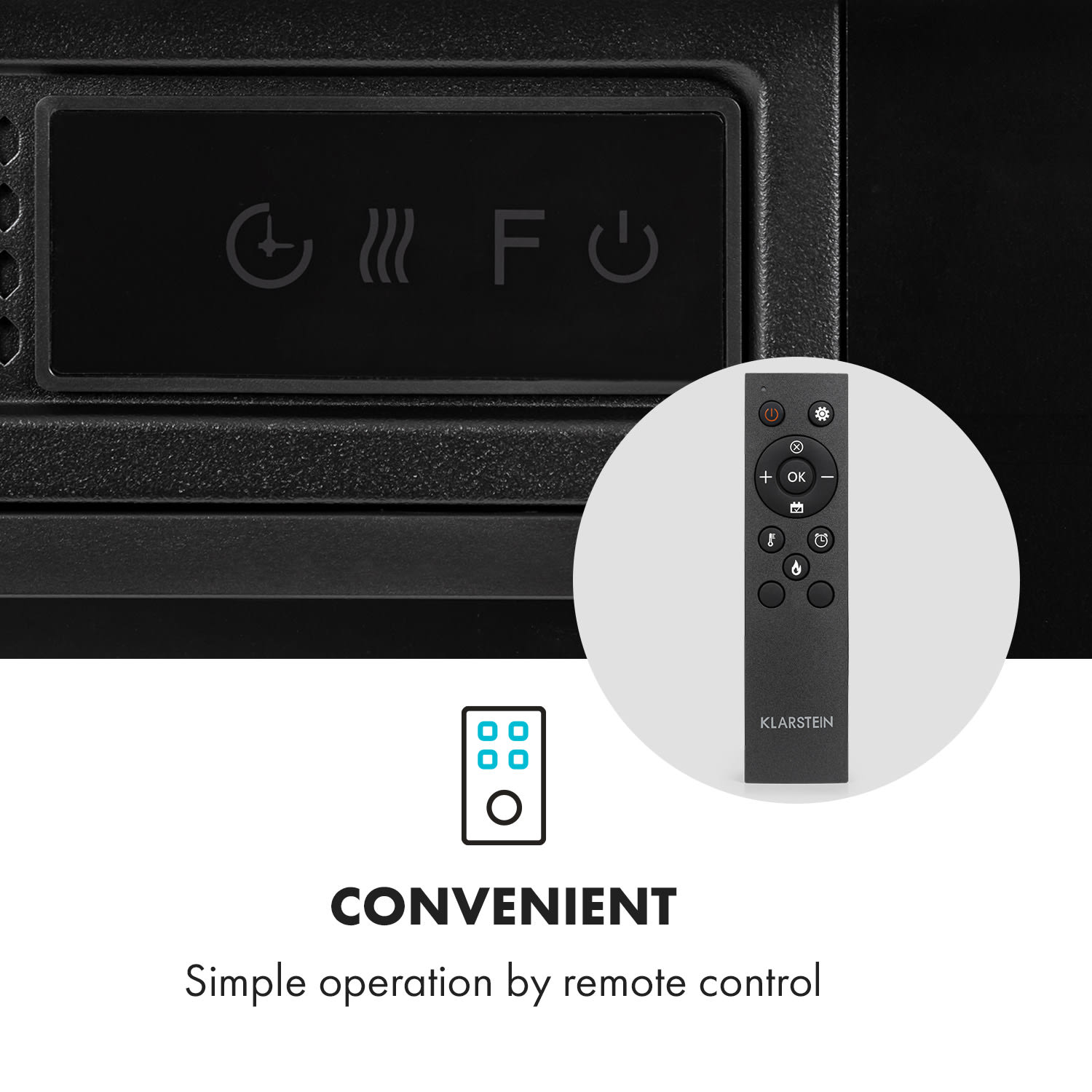 Útulná atmosféra krbu v každom ročnom období: s elektrickým krbom Klarstein Vulsini Hideaway si môžeš užívať plamene bez tvorby dymu a tepla. Nechaj sa očariť realistickým vzhľadom ohňa a relaxuj so svojím partnerom alebo svojou rodinou na novom obľúbenom mieste.LED plamene sa dajú nastaviť v 4 úrovniach jasu úplne nezávisle od funkcie kúrenia. V chladnejších dňoch sa postará o teplý domov prepínateľná funkcia vykurovania s 1700 alebo 1900 W. Zariadenie Vulsini Hideaway môžeš ovládať veľmi pohodlne pomocou diaľkového ovládača alebo pomocou ovládacieho panela na zariadení. Pomocou integrovanej funkcie časovača môžeš nastaviť automatické vypnutie od 30 minút až do 9 hodín. Okrem toho sa dá naprogramovať aj týždenný časovač. Časy vykurovania tak môžeš nastaviť individuálne a podľa svojich preferencií. Nájdi si najvhodnejšiu teplotu medzi 17 a 27 °C. Okrem toho má elektrický krb Vulsini Hideaway integrovanú ochranu pred prehriatím. Displej na prednej strane poskytne potrebný prehľad. Výkon 1900 W bez problémov vyhreje miestnosť až do veľkosti 38 m². Vulsini Hideaway zaujme aj svojou modernou konštrukciou z pevných MDF dosiek. Pre ešte dokonalejšiu atmosféru krbu v miestnosti: umiestni niekoľko polienok do priestoru pod ohniskom.Tento produkt je vhodný iba do dobre izolovaných miestností!Nechaj sa uniesť do ríše plameňov a vychutnaj si príjemnú atmosféru kozubu s elektrickým krbom Klarstein Vulsini Hideaway kedykoľvek budeš chcieť.