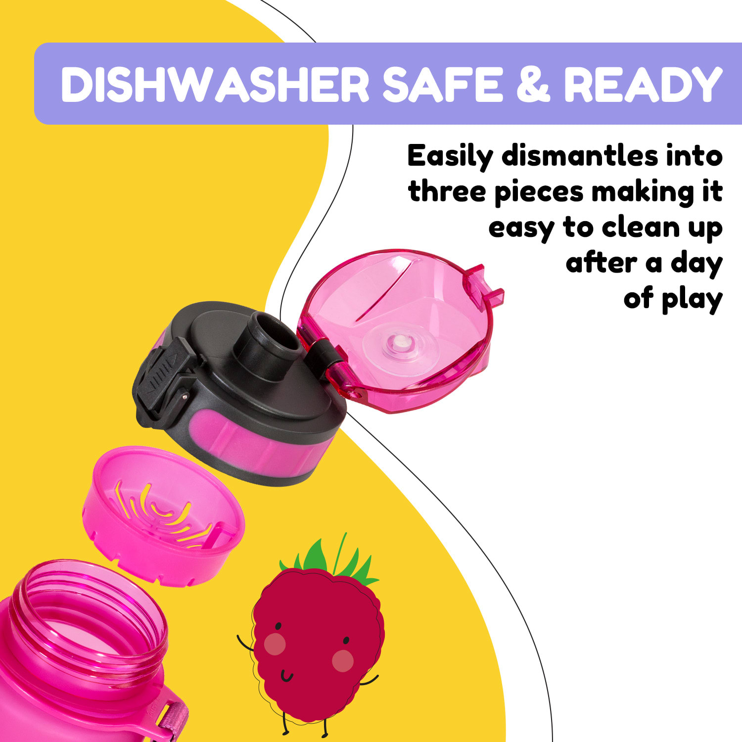 Fľaša na pitie Klarstein Schmatzfatz Wakaba je ideálnym spoločníkom do školy, na šport, výlety aj každodenné dobrodružstvá. Vďaka ľahkému plastovému materiálu nezaťaží batoh ani školskú tašku, no zároveň spoľahlivo udrží váš obľúbený nápoj po ruke. Vďaka nepriepustnému uzáveru sa nemusíte báť, že by niečo vytekalo – či už fľašu vložíte do držiaka na bicykli, do batoha alebo do tašky.Jednou z hlavných predností modelu Wakaba je jeho praktický a športový dizajn. Uzáver so systémom „1 klik“ umožňuje rýchle a jednoduché otváranie jednou rukou, čo oceníte najmä počas pohybu. Bočná šnúrka na prenášanie zas uľahčí manipuláciu – stačí si ju dať okolo zápästia a môžete vyraziť.Fľaša je vyrobená z vysoko kvalitného Tritanu bez obsahu BPA, takže je úplne bezpečná pre každodenné používanie. Bonusom je praktický ovocný nadstavec, vďaka ktorému si môžete vodu osviežiť kúskami ovocia – dužina zostane vo fľaši, no nápoj získa jemnú prírodnú arómu.Wakaba vás presvedčí nielen funkčnosťou, ale aj veselým farebným dizajnom a hravým logom, ktoré si deti zamilujú.