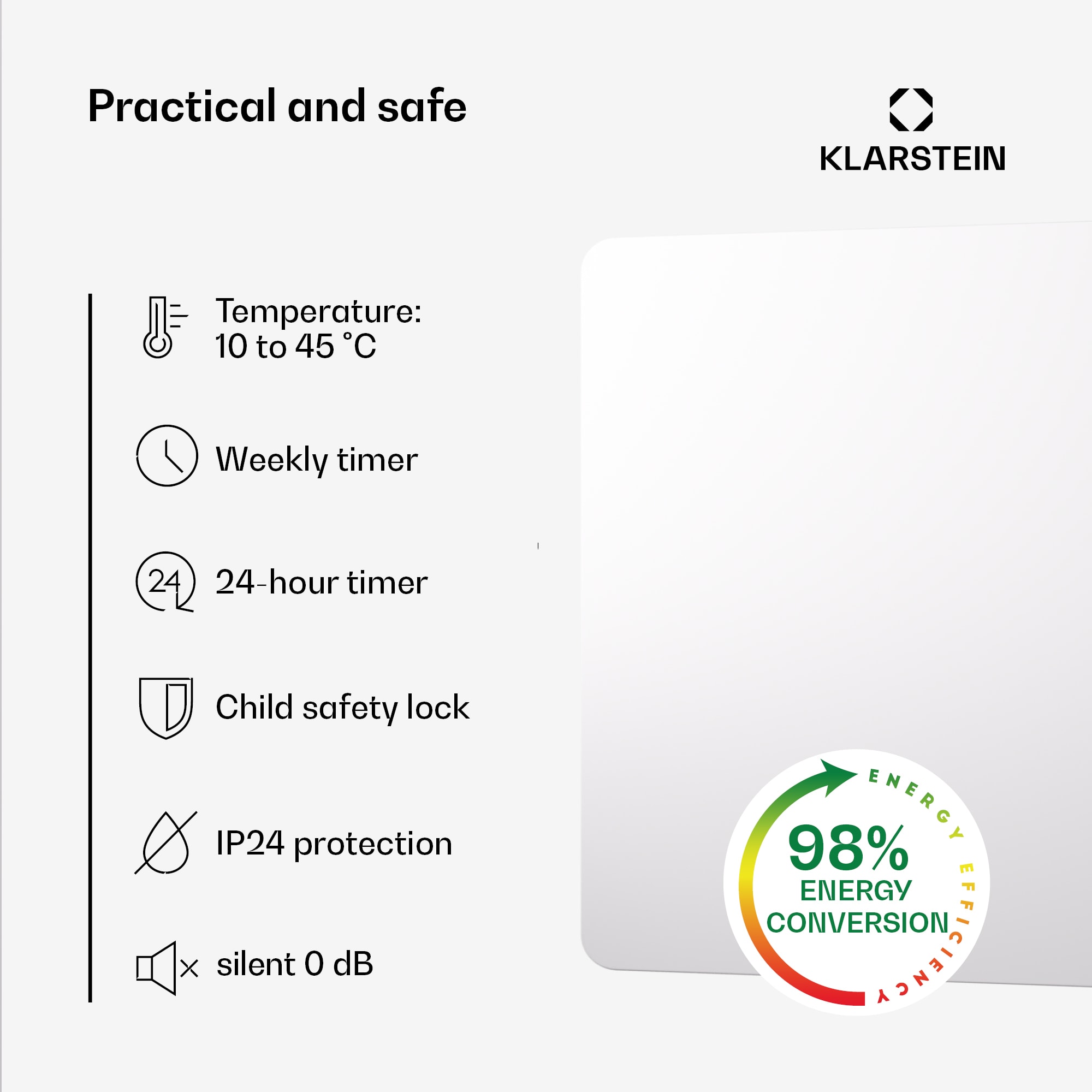 Najnovšia technológia pre príjemné teplo: Infračervený ohrievač Klarstein Wonderbeam 900 prináša príjemné teplo do každej miestnosti vysoko efektívnym a priestorovo úsporným spôsobom. Infračervený ohrievač Wonderbeam prináša revolúciu vo vykurovaní pomocou moderných technológií. Tento superplochý vyhrievací panel tenký iba 28 mm je možné priamo zavesiť na stenu, kde svoju funkciu plní mimoriadne úsporným spôsobom. Vďaka IR ComfortHeat využíva princíp solárneho tepla: namiesto pomalého ohrevu vzduchu vyžaruje príjemné infračervené tepelné lúče, ktoré priamo cielene ohrievajú ľudí a predmety v dosahu. Váš nový elektrický ohrievač je mimoriadne energeticky účinný: celých 95 % spotrebovanej energie sa premení na tepelné lúče a nedochádza k rozvíreniu prachu ani hluku. Skrytý LED displej umiestnený na boku, je obzvlášť praktický a uľahčuje nastavenie alebo ovládanie všetkých funkcií. Inteligentný vykurovací systém môžete obsluhovať aj pomocou diaľkového ovládania. Tento Infrapanel je ideálnym riešením pre moderné vykurovanie.