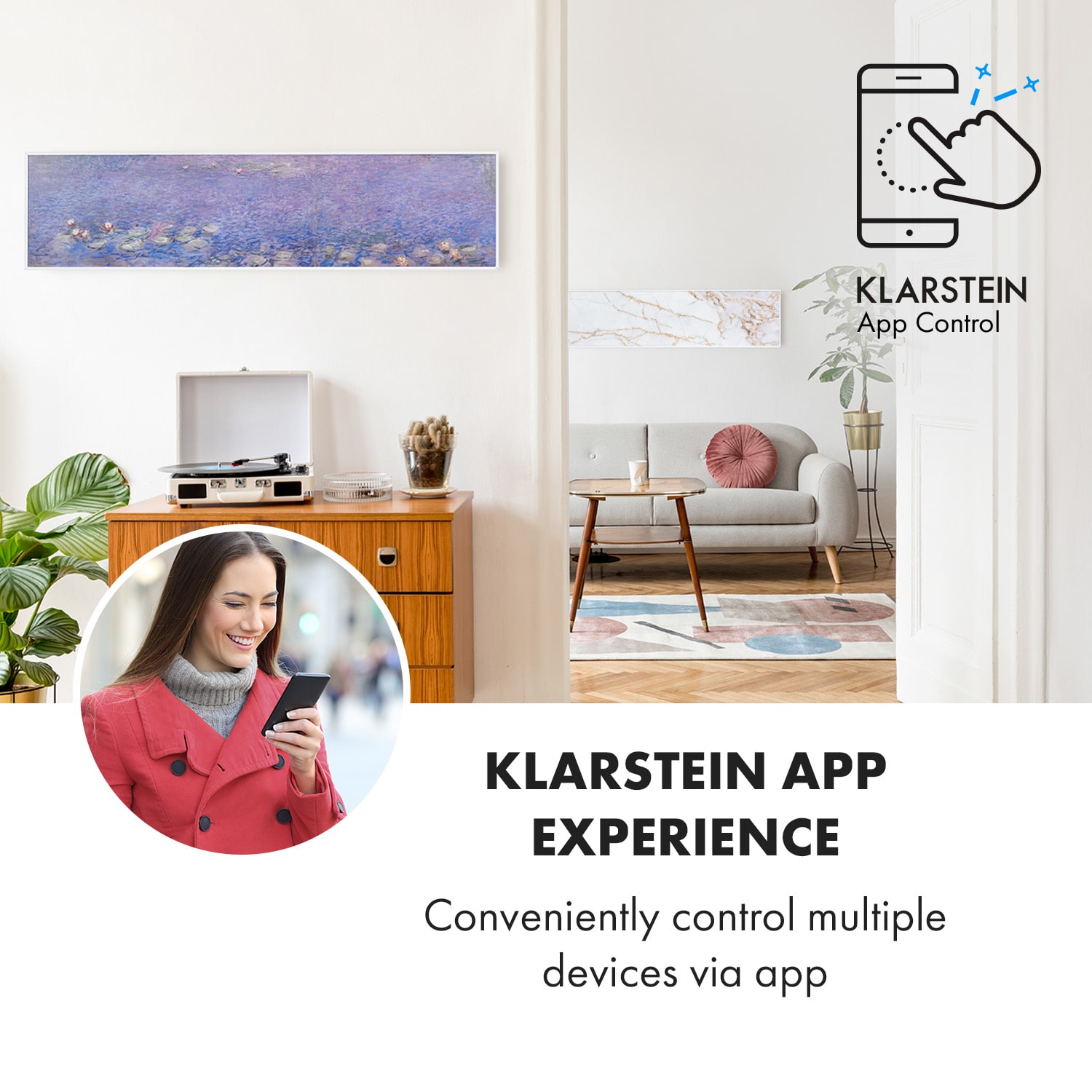 Inteligentná technológia pre príjemné teplo: infračervený ohrievač Klarstein Wonderwall Air Art Smart vás zahreje veľmi účinne príjemným infračerveným teplom a je zároveň dekoratívnym prvkom v každej miestnosti. Tento Infrapanel obraz sa dokonale hodí do každého interiéru. Infračervený ohrievač Klarstein Wonderwall Air Art Smart predstavuje revolúciu vo vykurovaní pomocou modernej technológie. Super plochý vyhrievací panel môžete zavesiť priamo na stenu ako obraz. Ohrievač s menovitým výkonom 350 W využíva princíp slnečného tepla vďaka IR ComfortHeat: namiesto pomalého ohrievania vzduchu vyžaruje infračervené tepelné lúče, ktoré priamo ohrievajú osoby a predmety v účinnom rozsahu 7 m². Váš nový elektrický ohrievač je zároveň mimoriadne energeticky úsporný: Celých 98 % absorbovanej energie sa premení na tepelné žiarenie. Termostat, funkcia automatického vypnutia, týždenný časovač, tichá prevádzka a inteligentné ovládanie cez aplikáciu WiFi dopĺňajú inovatívny ohrievač sofistikovaným spôsobom. Budúcnosť vykurovacej techniky: Dekoratívny a účinný infračervený ohrievač Klarstein Wonderwall Air Art Smart.
