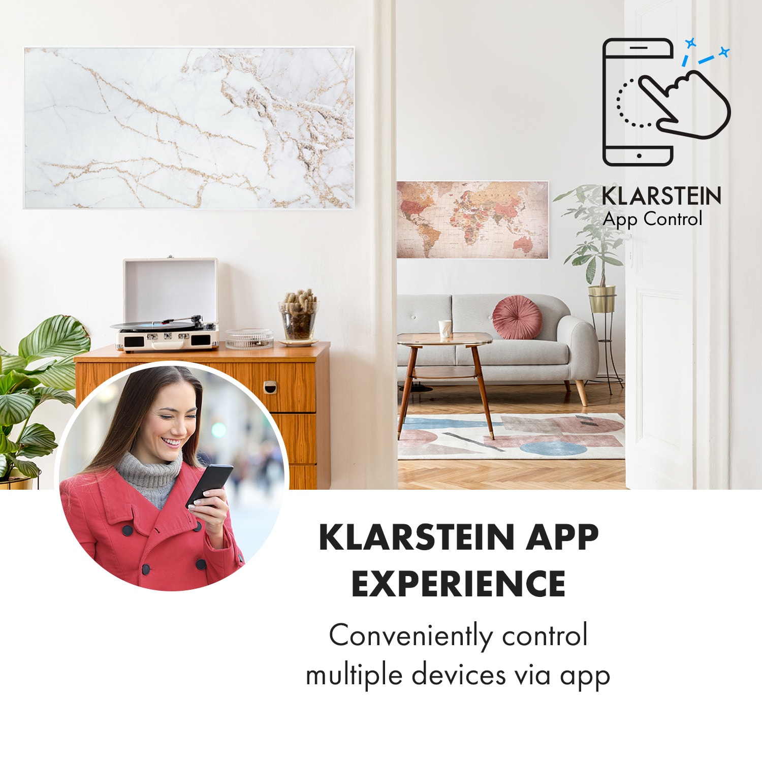 Klarstein Wonderwall Air Art Smart, infračervený ohrievač, 120 x 60 cm, 700 W, aplikácia, mramor I