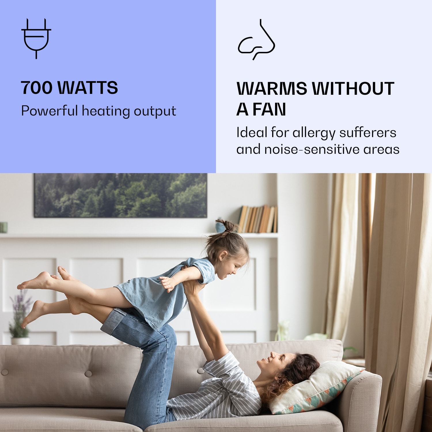 Infračervený ohrievačKlarstein Air Art Smart kombinuje vysoko efektívny vykurovací výkon s pôsobivým dizajnom a najnovšou technológiou. Prináša príjemné teplo a tiež nový lesk a farbu do každej miestnosti a pritom je energeticky veľmi efektívny a ekologický vďaka svojej infračervenej technológii. So svojím silným výkonom 700 W a vďaka technológii IR ComfortHeat šíri k ľudskej pokožke veľmi príjemné teplo, ktoré je vyžarované cielene na osoby v blízkosti ohrievača. Ovládaj veľmi jednoducho pomocou smartfónu, diaľkového ovládača alebo ovládacieho panela jeden ohrievač alebo viacero ohrievacích zariadení. Tento infrapanel obraz sa dokonale hodí do každého interiéru. Vitaj v budúcnosti vykurovacej techniky: infračervený ohrievačKlarstein Air Art Smart.