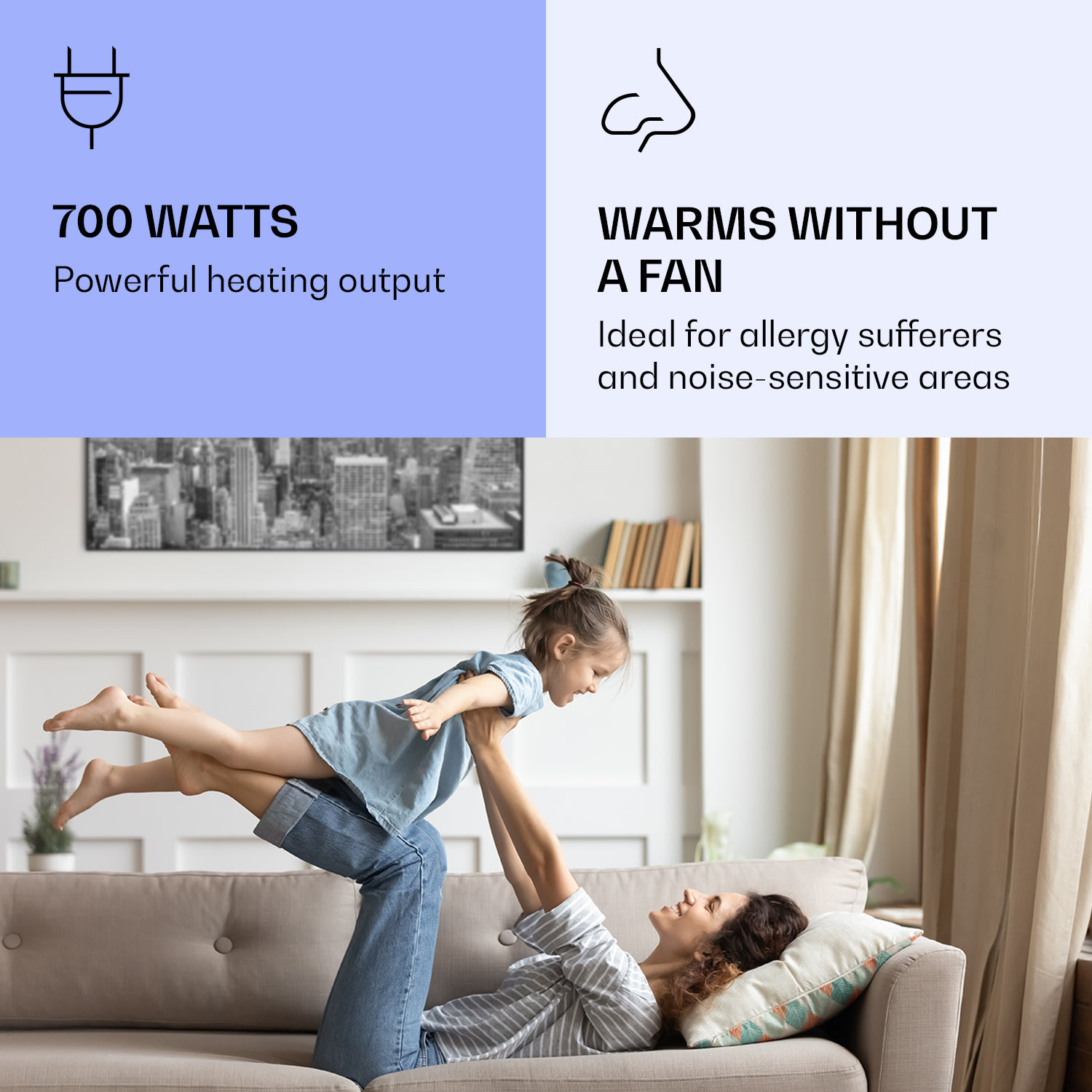 Infračervený ohrievačKlarstein Air Art Smart kombinuje vysoko efektívny vykurovací výkon s pôsobivým dizajnom a najnovšou technológiou. Prináša príjemné teplo a tiež nový lesk a farbu do každej miestnosti a pritom je energeticky veľmi efektívny a ekologický vďaka svojej infračervenej technológii. So svojím silným výkonom 700 W a vďaka technológii IR ComfortHeat šíri k ľudskej pokožke veľmi príjemné teplo, ktoré je vyžarované cielene na osoby v blízkosti ohrievača. Ovládaj veľmi jednoducho pomocou smartfónu, diaľkového ovládača alebo ovládacieho panela jeden ohrievač alebo viacero ohrievacích zariadení. Tento Infrapanel obraz sa dokonale hodí do každého interiéru. Vitaj v budúcnosti vykurovacej techniky: infračervený ohrievačKlarstein Air Art Smart.