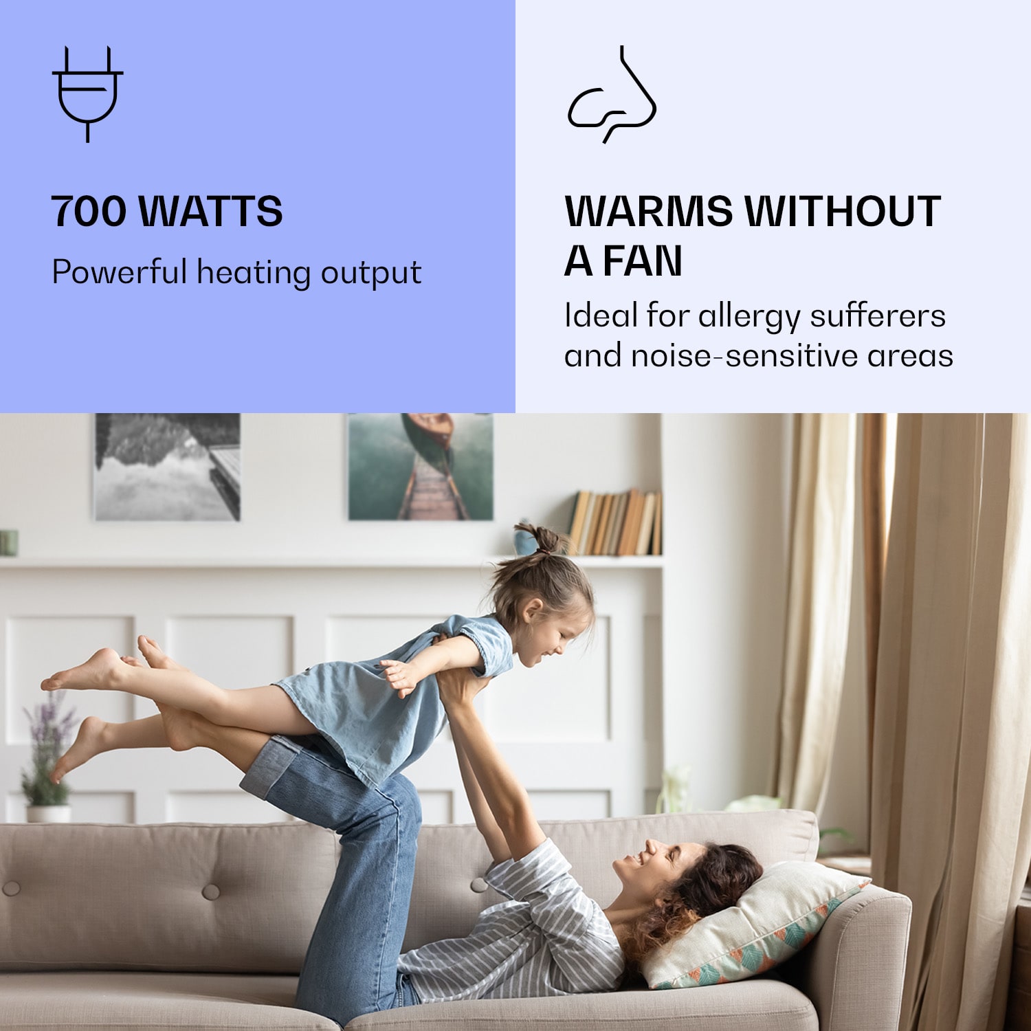 Infračervený ohrievačKlarstein Air Art Smart kombinuje vysoko efektívny vykurovací výkon s pôsobivým dizajnom a najnovšou technológiou. Prináša príjemné teplo a tiež nový lesk a farbu do každej miestnosti a pritom je energeticky veľmi efektívny a ekologický vďaka svojej infračervenej technológii. So svojím silným výkonom 700 W a vďaka technológii IR ComfortHeat šíri k ľudskej pokožke veľmi príjemné teplo, ktoré je vyžarované cielene na osoby v blízkosti ohrievača. Ovládaj veľmi jednoducho pomocou smartfónu, diaľkového ovládača alebo ovládacieho panela jeden ohrievač alebo viacero ohrievacích zariadení. Tento infrapanel obraz sa stane štýlovým doplnkom každej miestnosti. Vitaj v budúcnosti vykurovacej techniky: infračervený ohrievačKlarstein Air Art Smart.