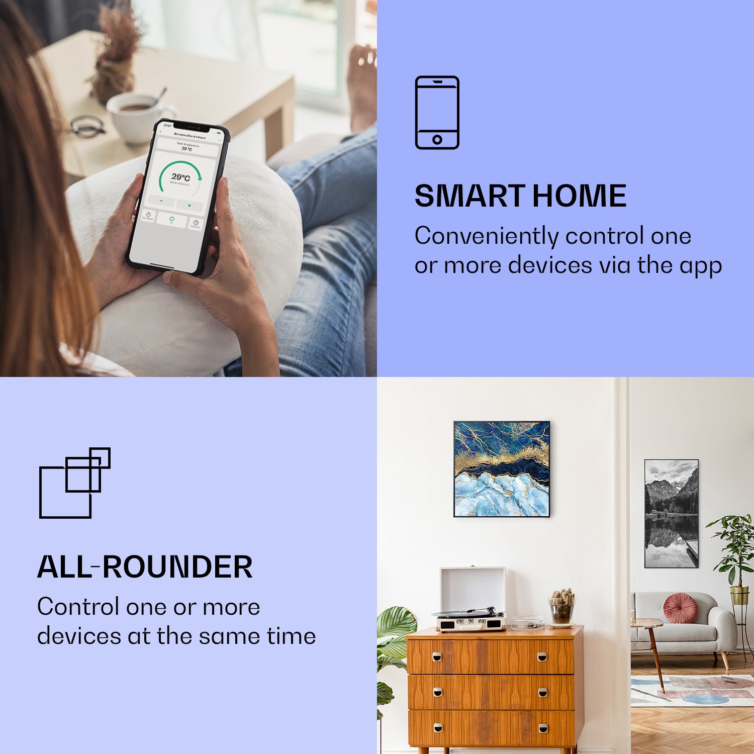 Klarstein Wonderwall Air Art Smart, infračervený ohrievač, 60 x 60 cm, 350 W, modrý mramor – Kúpiť