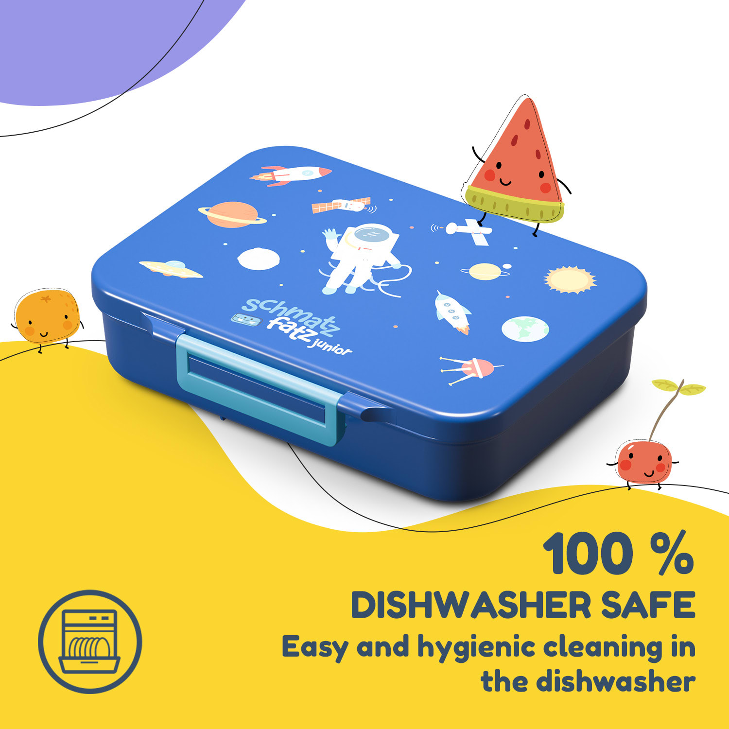 Či už vaše dieťa vyráža do škôlky, školy alebo na výlet, desiatový box Schmatzfatz Lite sa postará o to, aby každé občerstvenie zostalo čerstvé, chutné a prehľadne usporiadané počas celého dňa.Vďaka viacerým oddeleným priehradkám môžete jedlo jednoducho roztriediť – ovocie zostane svieže, syr si zachová svoju chuť a pečivo sa nepremočí. Vnútorný uzáver a vzduchotesné tesnenie zabezpečia, že ani hustejšie potraviny ako jogurt či jablkové pyré sa nevylejú. Box je vyrobený z ľahkého a odolného Tritanu bez BPA, čo zaručuje bezpečné a zdravotne nezávadné používanie. V porovnaní s bežnými desiatovými boxmi váži o tretinu menej, takže nezaťaží školský batoh ani tých najmenších.Údržba je rýchla a jednoduchá – vnútro boxu môžete vyčistiť ručne, vonkajší obal stačí utrieť vlhkou handričkou. Vďaka kvalitnému spracovaniu box vydrží aj pri každodennom používaní.