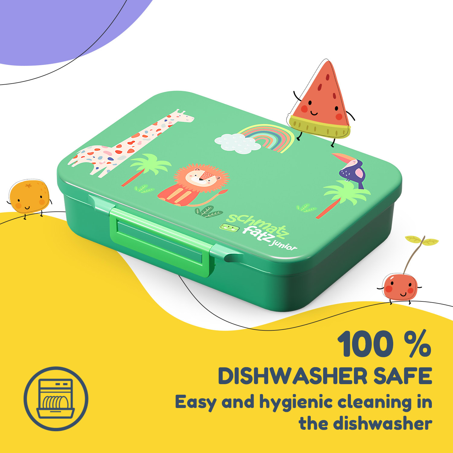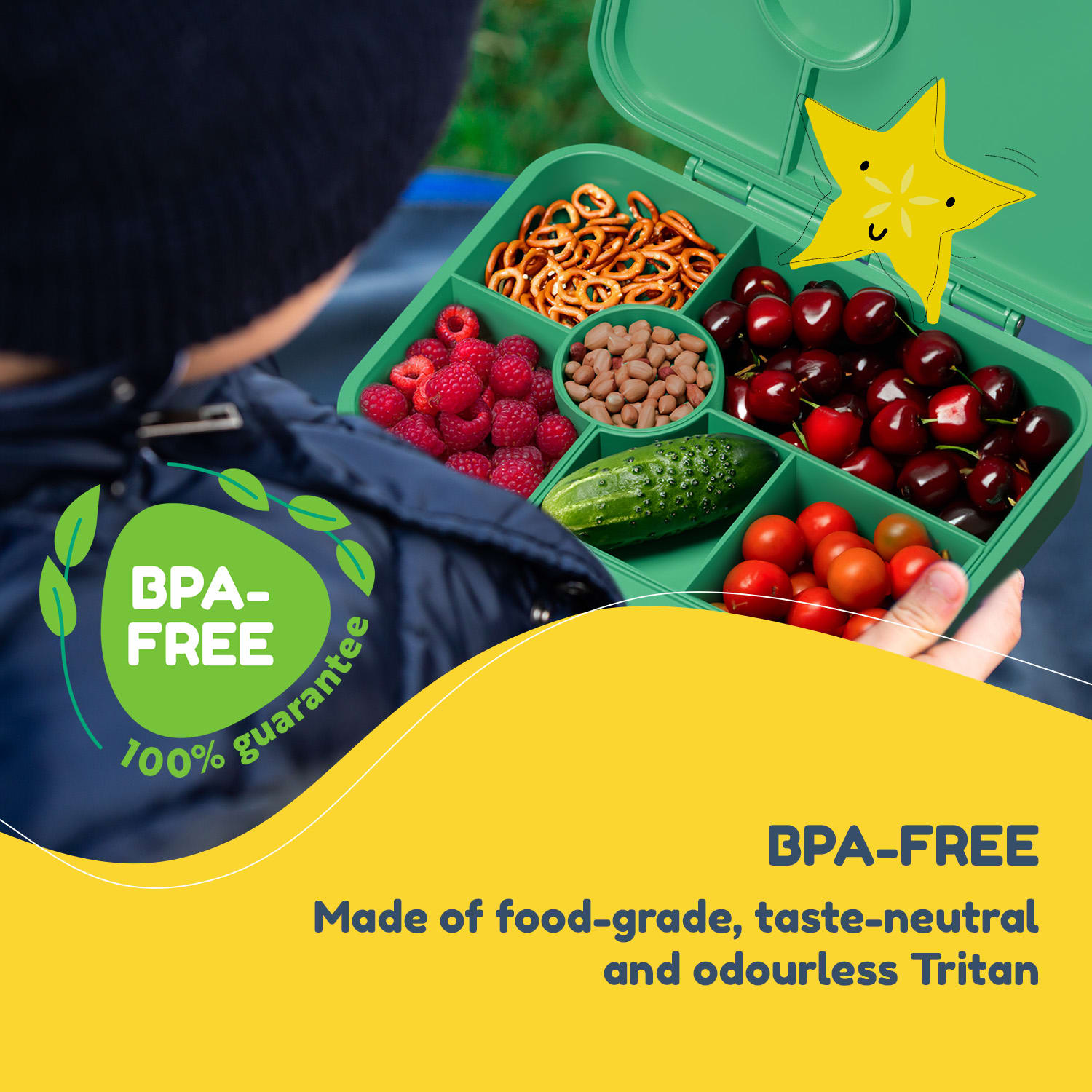 Či už vaše dieťa vyráža do škôlky, školy alebo na výlet, desiatový box Schmatzfatz Lite sa postará o to, aby každé občerstvenie zostalo čerstvé, chutné a prehľadne usporiadané počas celého dňa.Vďaka viacerým oddeleným priehradkám môžete jedlo jednoducho roztriediť – ovocie zostane svieže, syr si zachová svoju chuť a pečivo sa nepremočí. Vnútorný uzáver a vzduchotesné tesnenie zabezpečia, že ani hustejšie potraviny ako jogurt či jablkové pyré sa nevylejú. Box je vyrobený z ľahkého a odolného Tritanu bez BPA, čo zaručuje bezpečné a zdravotne nezávadné používanie. V porovnaní s bežnými desiatovými boxmi váži o tretinu menej, takže nezaťaží školský batoh ani tých najmenších.Údržba je rýchla a jednoduchá – vnútro boxu môžete vyčistiť ručne, vonkajší obal stačí utrieť vlhkou handričkou. Vďaka kvalitnému spracovaniu box vydrží aj pri každodennom používaní.
