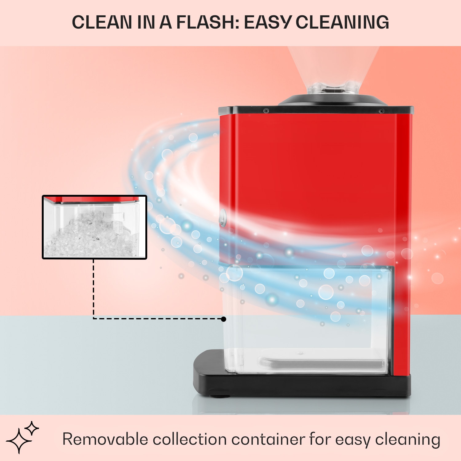 Dni, keď ste manuálne museli lámať ľad, sú už dávno preč. Drvič na ľad oneConcept Icebraker vďaka svojmu automatickému mleciemu telesu to zvládne za skutočne krátky čas – stačí zariadenie naplniť ľadom a zapnúť ho. Zásobník s objemom 3,5l vystačí na prípravu 1,75kg drveného ľadu. S výkonom 15kg ľadu za hodinu je drvič výborným zariadením na ochladenie drinkov na každej párty.Drvič disponuje dvomi bezpečnostnými zarážkami, ktoré zabezpečujú zapnutie prístroja len vtedy, ak je zásobník správne nasadený. Štyri prísavkové nožičky garantujú perfektnú stabilitu počas prevádzky. Umývanie je veľmi jednoduché – stačí naliať do prístroja pri prevádzke trochu teplej vody a je hotovo.Svojou konštrukciou z nerezovej ocele a v červenej farbe predstavuje i moderný dizajnový kúsok.