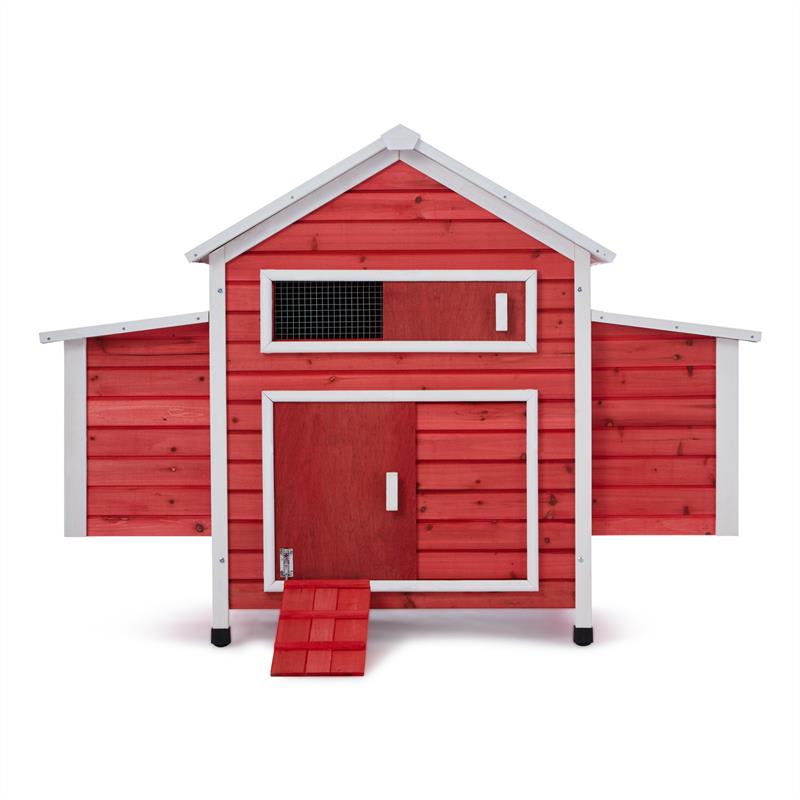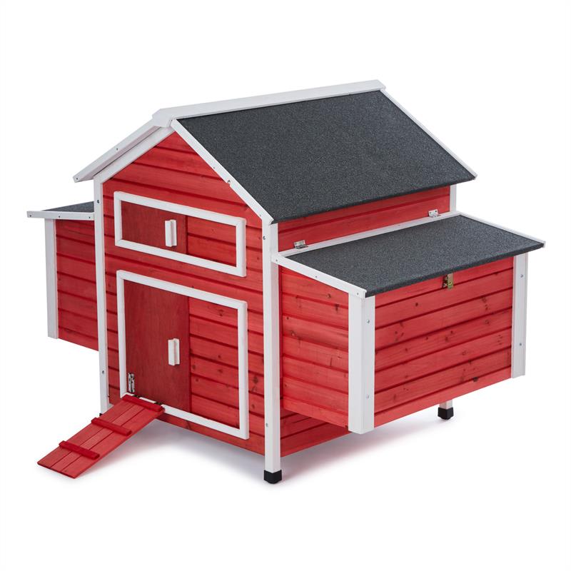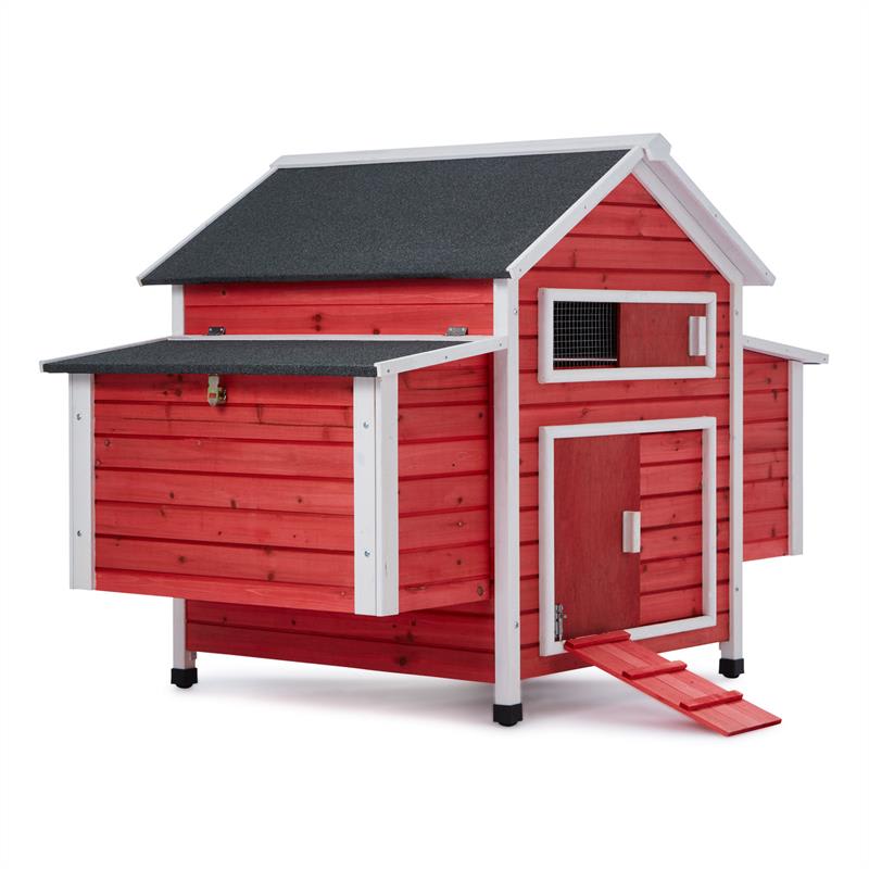Vždy ste si želali, pozbierať si v nedeľu ráno čerstvo znesené vajíčka z hniezd svojich vlastných kurčiat a dať si ich na raňajky? Pochopiteľne, pretože ak vajcia pochádzajú od šťastných zvierat, chutia skutočne o niečo lepšie ako bežný produkt z najbližšieho supermarketu. Okrem toho je tiež príjemné a upokojujúce ako spotrebiteľ vedieť, odkiaľ chutné vajíčka na raňajky pochádzajú. Kurčatá sú skvelé úžitkové zvieratá a ich chov je atraktívne hobby, ktoré je zábavné a vďaka ktorému tiež získate veľký kus kvality života. Vďaka priestorovo úspornému riešeniu je chov operených úžitkových zvierat možný aj na malom priestore. Kto nemôže ponúknuť svojim sliepkam obrovskú ohradenú plochu, má možnosť postaviť si vo svojej záhrade malý kompaktný kurín ako tento od oneConcept. Kurín Villa Hahnenkamm od spoločnosti oneConcept poskytuje sliepkam v dvoch bočne umiestnených, vyvýšených hniezdach až šesť lôžok, ktoré sú od seba oddelené deliacou stenou. Takže v kuríne je poriadok a vajcia zostanú pekne na svojom mieste – aj ak by tam bolo rušnejšie. V strede má kurín veľký hlavný priestor, v ktorom kurčatá nájdu prístrešok, ak sa nechcú prechádzať vonku alebo to počasie nedovoľuje. Strechy miest na znášanie vajec aj veľká hlavná strecha sú výklopné, čím sa uľahčuje zber vajec a tiež čistenie kurína. Vďaka vysúvaciemu dnu v strednej časti kurína je čistenie dodatočne zjednodušené. Cez posuvné dvere sa môžu kurčatá dostať dovnútra aj von, posuvné okno s mriežkou zabezpečuje vetranie. Aby sa dno domu nepoškodilo vlhkosťou, dom je mierne vyvýšený. Nohy sú chránené pred vlhkosťou čiernymi plastovými krytmi. Okrem praktických aspektov je kurín z červeného moreného dreva pestrý pútačom, ktorý prináša do Vašej záhrady nádych švédskeho vidieckeho štýlu. Či už v meste, alebo vo vidieckych regiónoch. Operené úžitkové zvieratá budú milovať svoj nový domov a odvďačia sa Vám veselým kotkodákaním a usilovným znášaním vajec.